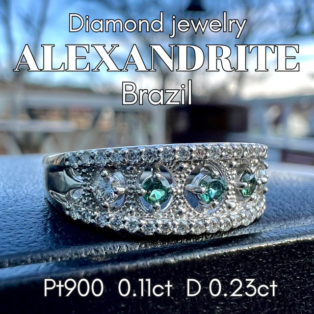 Pt900ブラジル産アレキサンドライトダイヤモンドリング