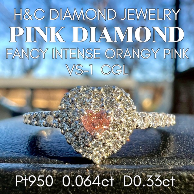 超ギラッギラ!H&Cダイヤ仕様!天然ピンクダイヤモンドリング CGLソーティング・GGSカード鑑別付属 超人気のハートシェイプ! FANCY INTENSE ORANGY PINK (VS-1) 0.064ct D 0.330ct サイズ 約 12号 石サイズ 2.41x2.74mm リング最大幅 7.71㎜ 地金 Pt950 総重量 2.7g 付属品 CGLソーティング・GGSカード鑑別付属 新品 未使用品 今回使用したのは憧れのインテンスピンク! 流石の美しさです。 しかも超人気のハートシェイプ! 実は中々の入手困難商品! 今回のメレダイヤは全てとても綺麗な選び抜かれたH&Cダイヤを使用!輝きが違います! 色も良くテリツヤも抜群なもののみを使用した逸品! とても高級感あふれるリングになりました。 屋外撮影の為ピンクダイヤモンドは撮影が難しく現物の方が可愛いピンクですね。 ピンクダイヤの価格は急高騰し現在とても高額です。 今回のピンクダイヤモンドリングはとてもリーズナブルですので是非ご検討頂ければと思います。 【サイズ直し料金】 サイズお直しをされるお客様は別途サイズごとの『サイズお直し』をご購入下さい。 納期は2〜3週間程かかっております。