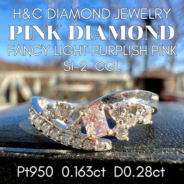 超ギラッギラ!H&Cダイヤ仕様!天然ピンクダイヤモンドリング CGLソーティング・GGSカード鑑別付属 FANCY LIGHT PURPLISH PINK (SI-2) 0.163ct D 0.280ct サイズ 約 15号 石サイズ 3.480x2.46mm リング最大幅 6.8㎜ 地金 Pt950 総重量 3.54g 付属品 CGLソーティング・GGSカード鑑別付属 新品 未使用品 今回使用したピンクダイヤはファンシーライトカラーですが色乗ってます!! 沢山のライトピンクの中から『えっ?これでライトなの???』と思える物だけを選抜したので、想像よりかなり色がのってるピンクです。 今回のメレダイヤは全てとても綺麗な選び抜かれたH&Cダイヤを使用!輝きが違います! 色も良くテリツヤも抜群なもののみを使用した逸品! とても高級感あふれるリングになりました。 屋外撮影の為ピンクダイヤモンドは撮影が難しく現物の方が可愛いピンクですね。 ピンクダイヤの価格は急高騰し現在とても高額です。 今回のピンクダイヤモンドリングはとてもリーズナブルですので是非ご検討頂ければと思います。 【サイズ直し料金】 サイズお直しをされるお客様は別途サイズごとの『サイズお直し』をご購入下さい。 納期は2〜3週間程かかっております。