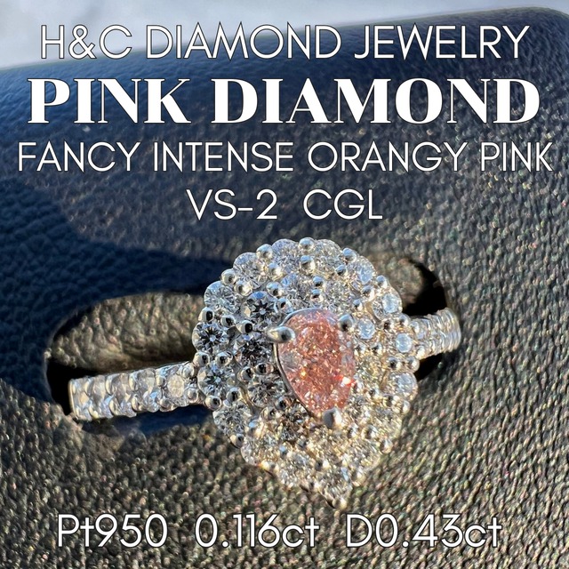 超ギラッギラ!H&Cダイヤ仕様!天然ピンクダイヤモンドリング CGLソーティング・GGSカード鑑別付属 FANCY INTENSE ORANGY PINK (VS-2) 0.116ct D 0.430ct サイズ 約 12号 石サイズ 3.87x2.53mm リング最大幅 9.86㎜ 地金 Pt950 総重量 3.57g 付属品 CGLソーティング・GGSカード鑑別付属 新品 未使用品 今回使用したのは憧れのインテンスピンク! 流石の美しさです。 しかも0.116ctものボリューム感! 今回のメレダイヤは全てとても綺麗な選び抜かれたH&Cダイヤを使用!輝きが違います! 色も良くテリツヤも抜群なもののみを使用した逸品! とても高級感あふれるリングになりました。 屋外撮影の為ピンクダイヤモンドは撮影が難しく現物の方が可愛いピンクですね。 ピンクダイヤの価格は急高騰し現在とても高額です。 今回のピンクダイヤモンドリングはとてもリーズナブルですので是非ご検討頂ければと思います。 【サイズ直し料金】 サイズお直しをされるお客様は別途サイズごとの『サイズお直し』をご購入下さい。 納期は2〜3週間程かかっております。