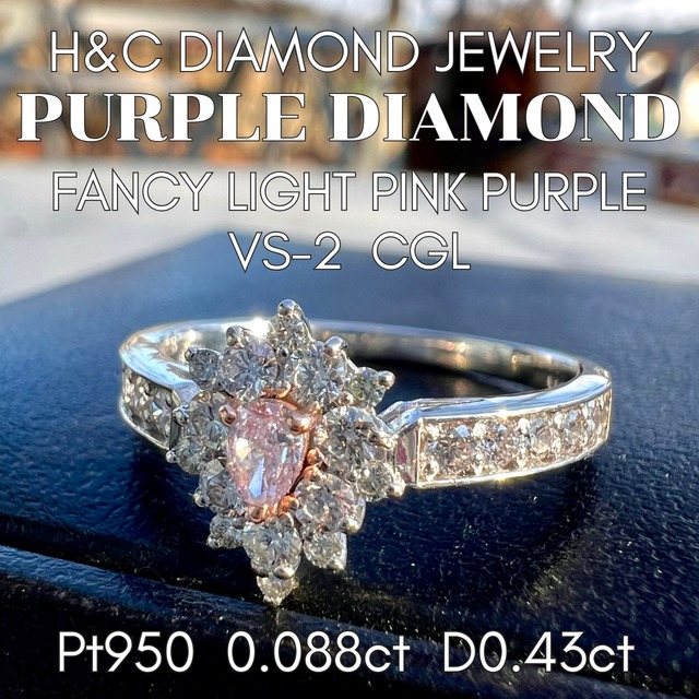超ギラッギラ!H&Cダイヤ仕様!天然ピンクパープルダイヤモンドリング CGLソーティング・GGSカード鑑別付属