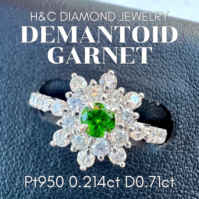 一点もの!TOP!DEMANTOIDデマントイドガーネットPt950 H&Cダイヤモンドリング JGGL鑑別・GGSカード鑑別付属
