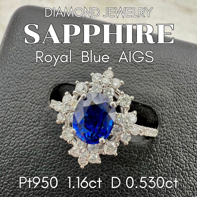 パーフェクトカラー!ロイヤルブルー! Pt950サファイヤダイヤモンドリング AIGS鑑別書付属