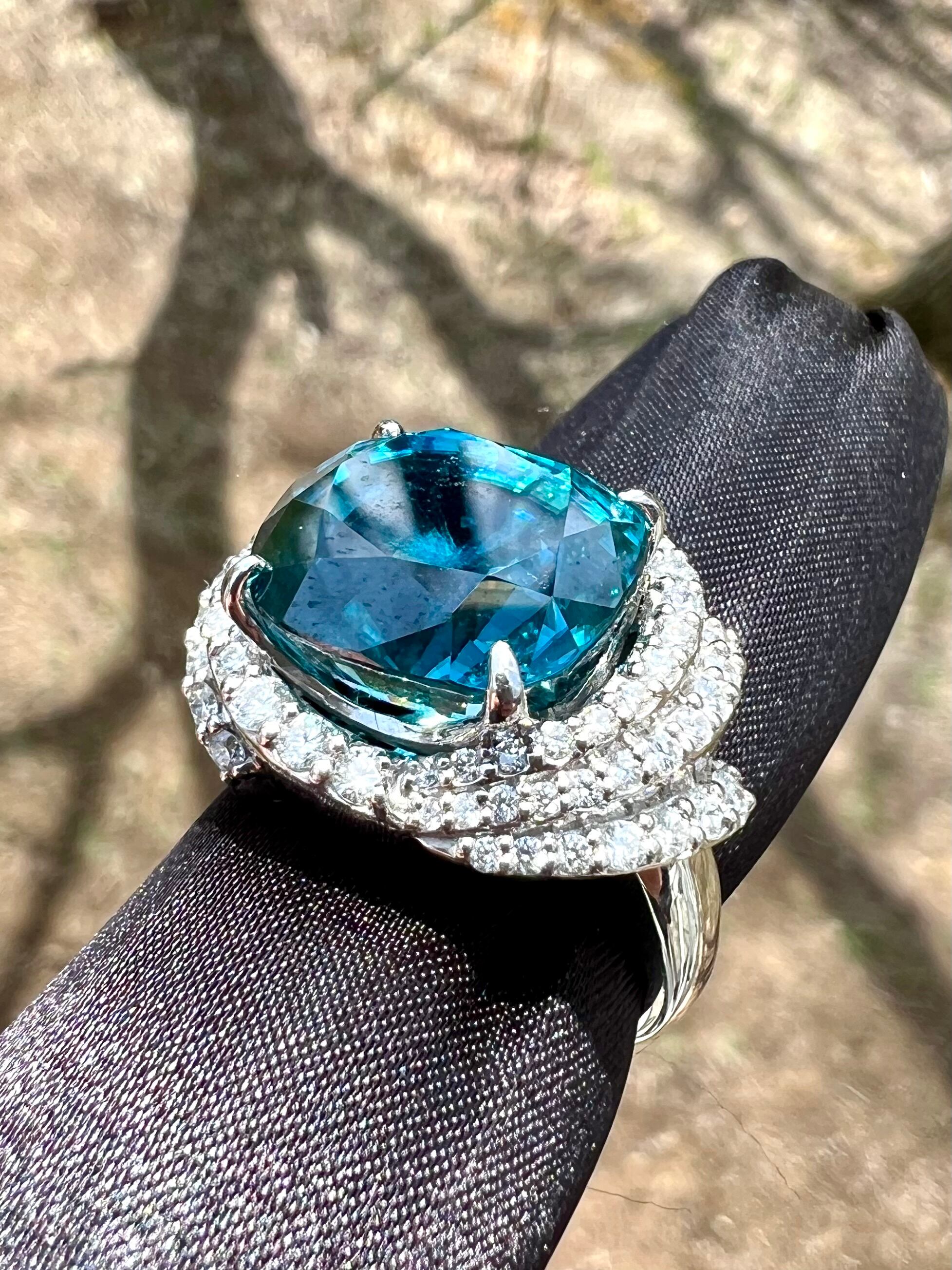 これぞスーパートップ!Pt900 ラタナキリブルージルコンダイヤモンドリング