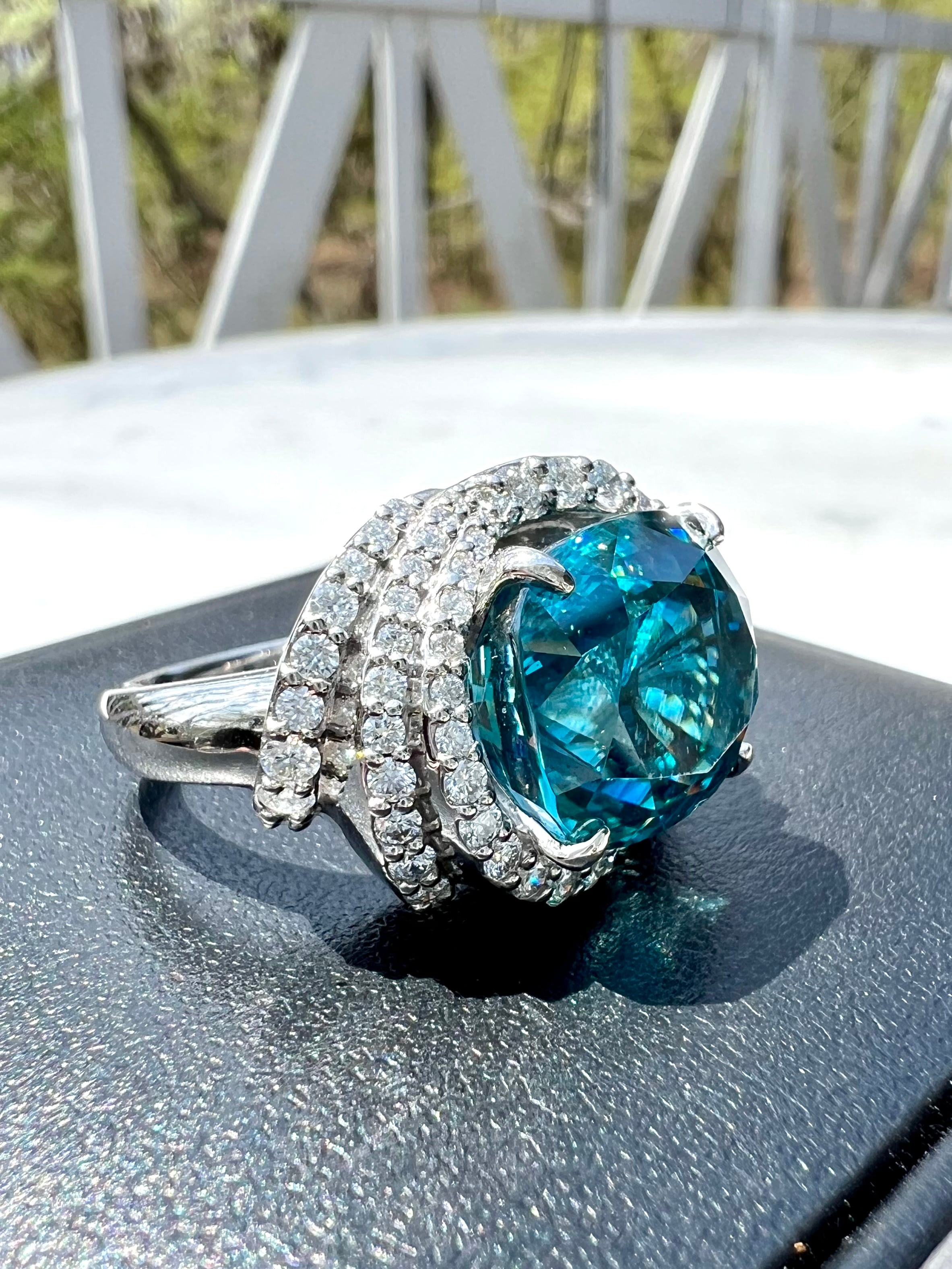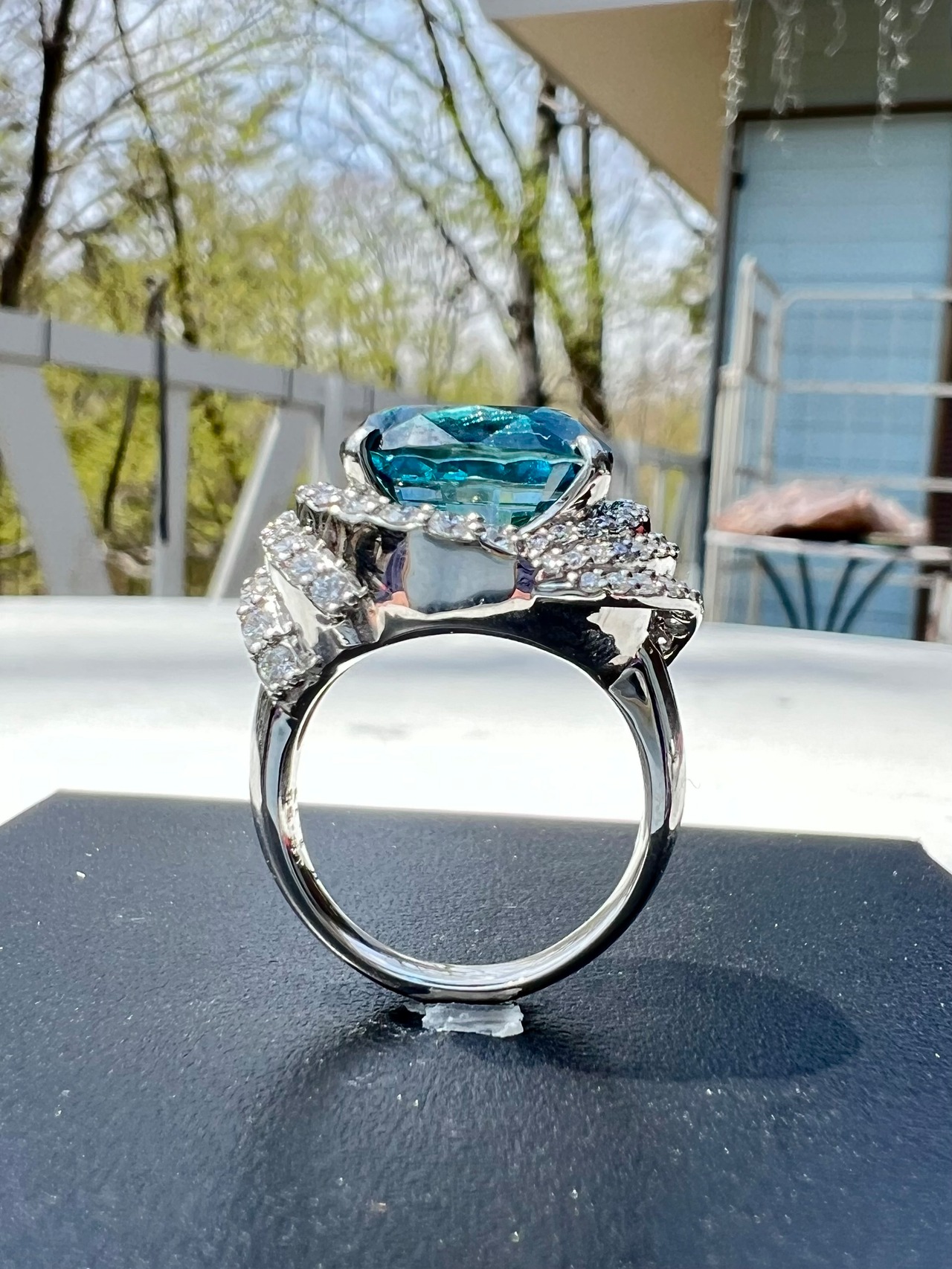 腰が高く最高発色!ダイヤモンドと同じように光を沢山取り込めるようリングより少し高めにセットしました。