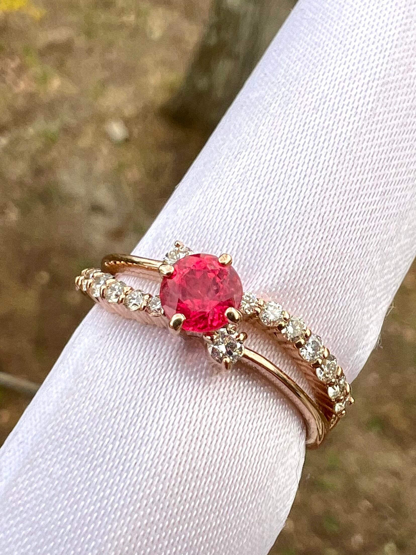 超高発色!AYANA SPINEL 鮮やかアヤナスピネルK18PGダイヤモンドリング