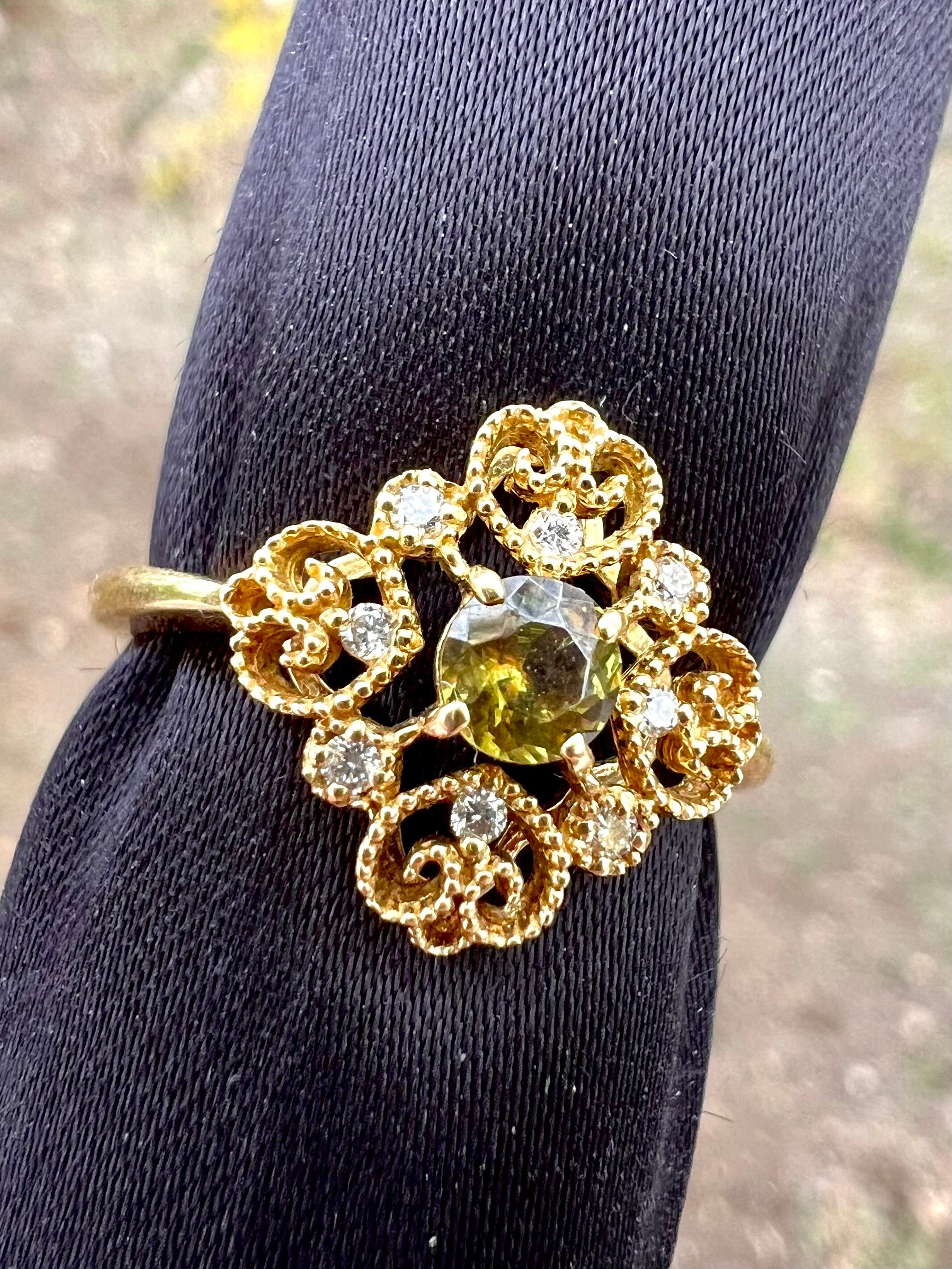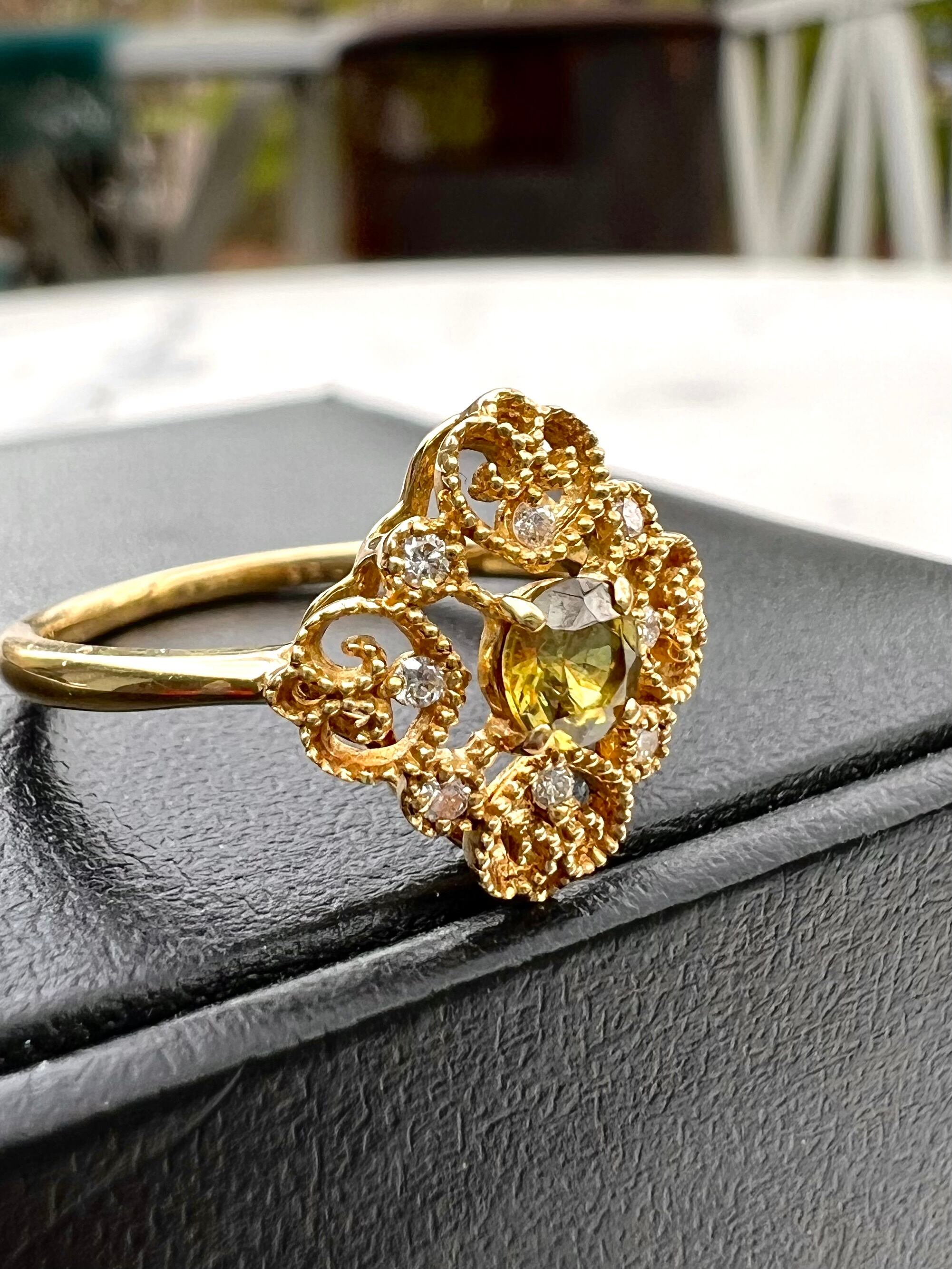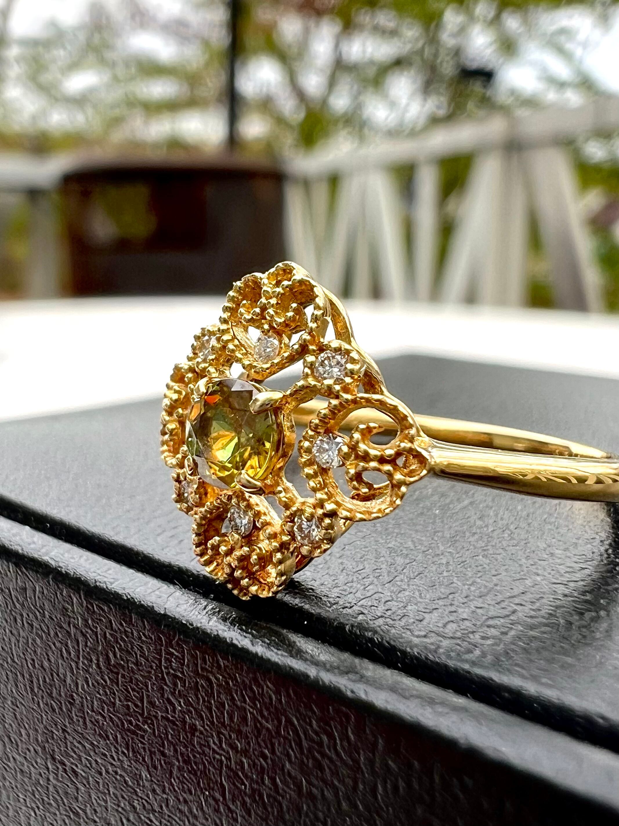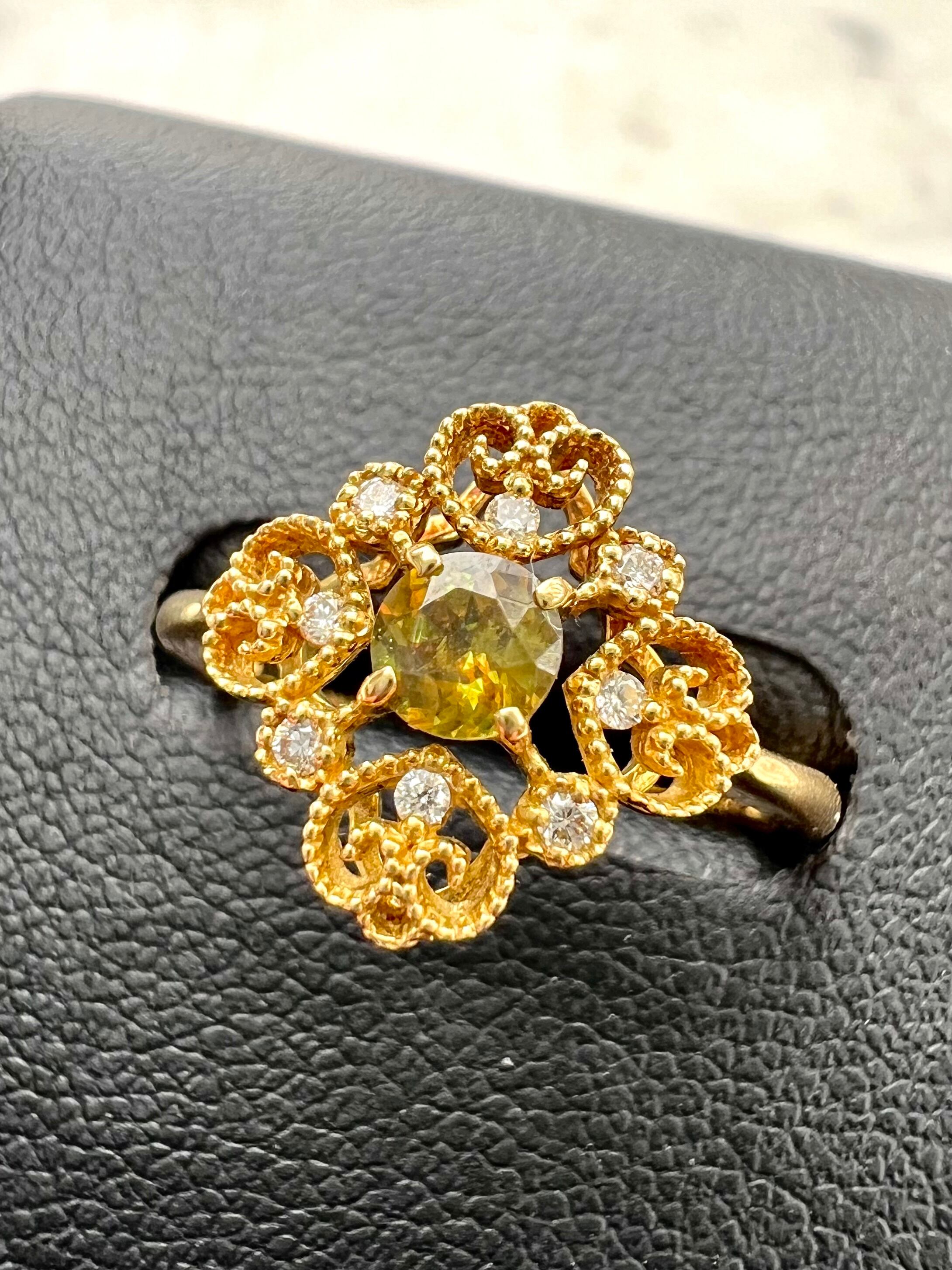 可愛いデザイン!極美スフェーンK18リング 小さいながらもよく光る!