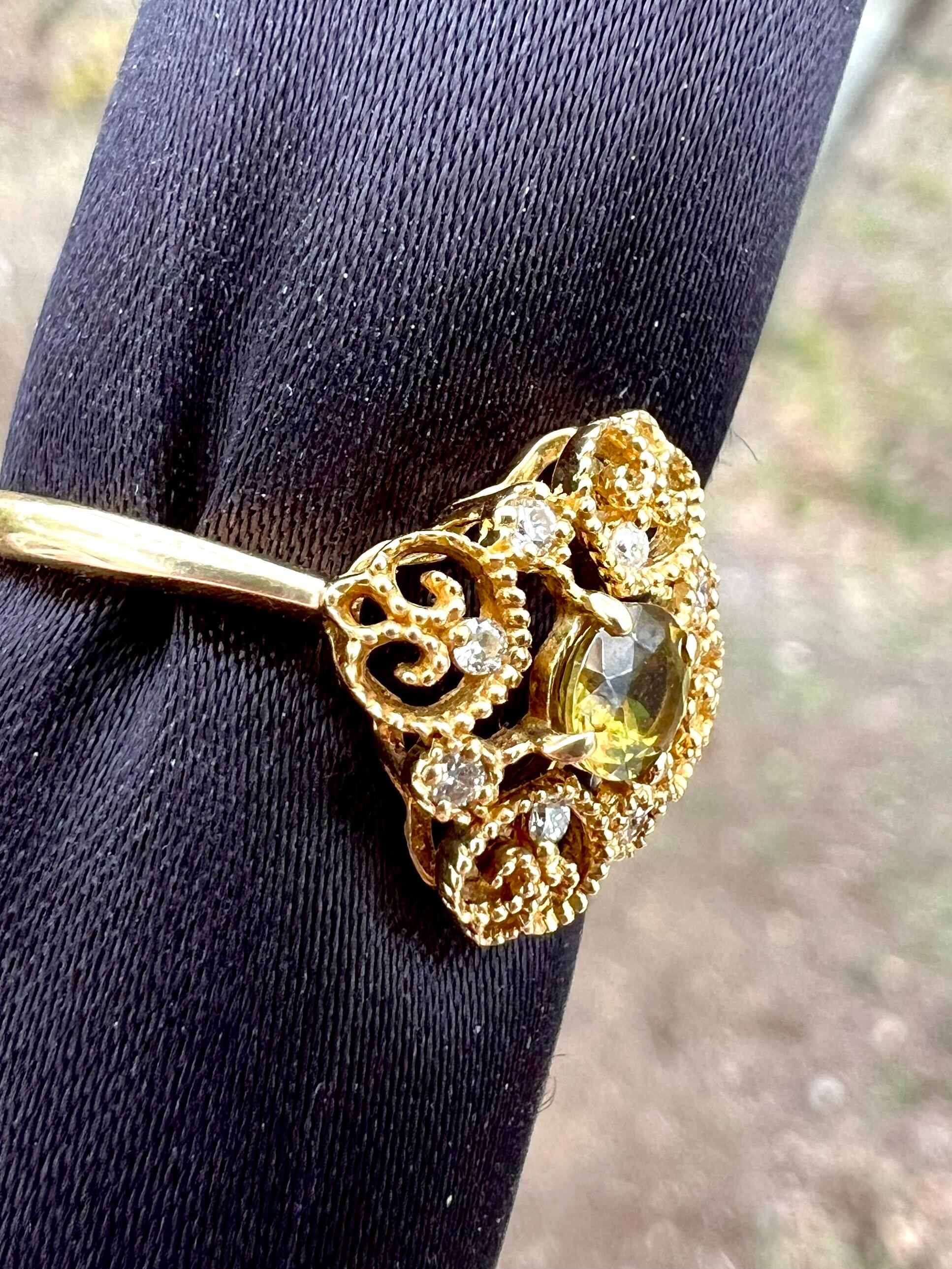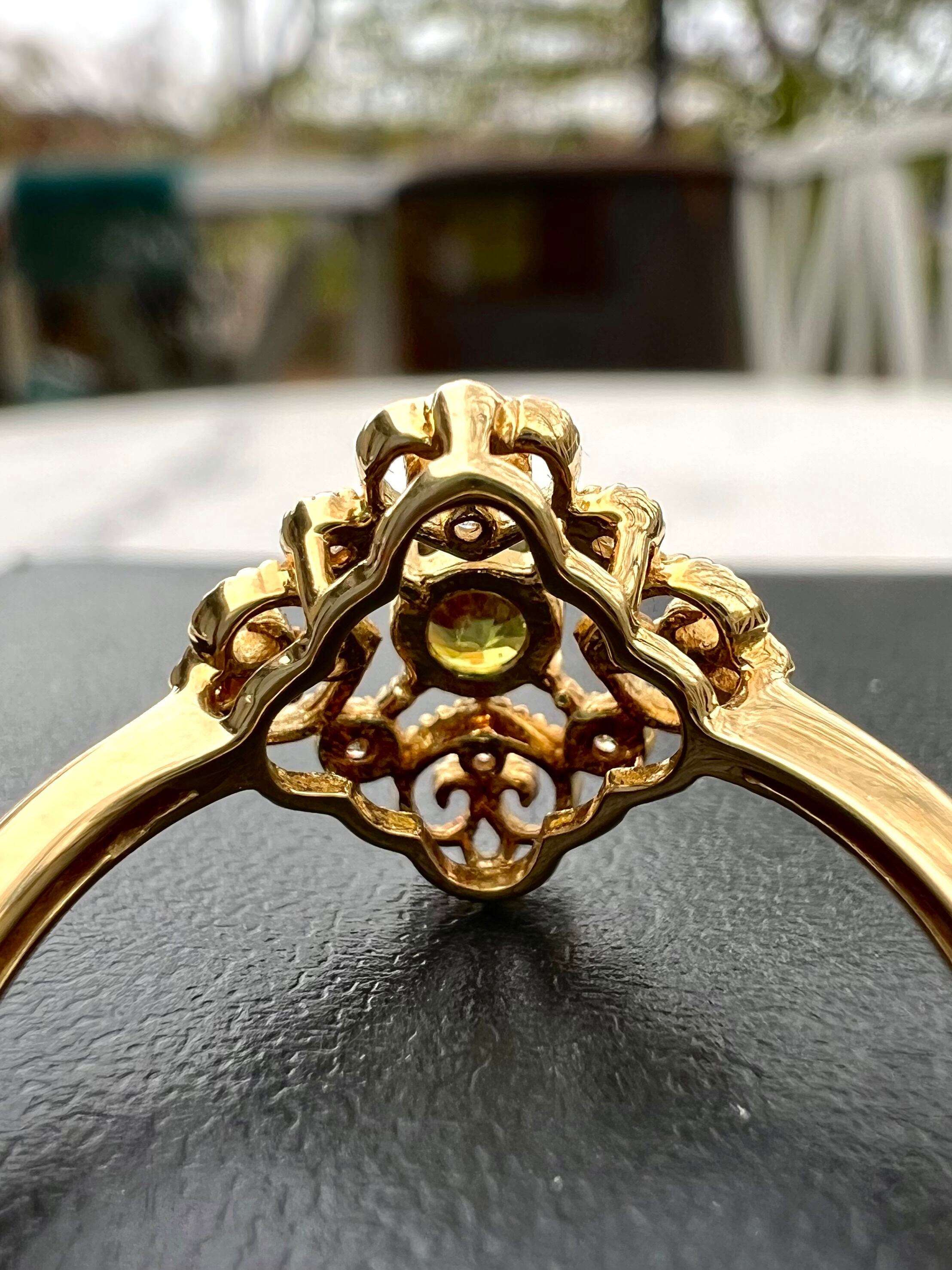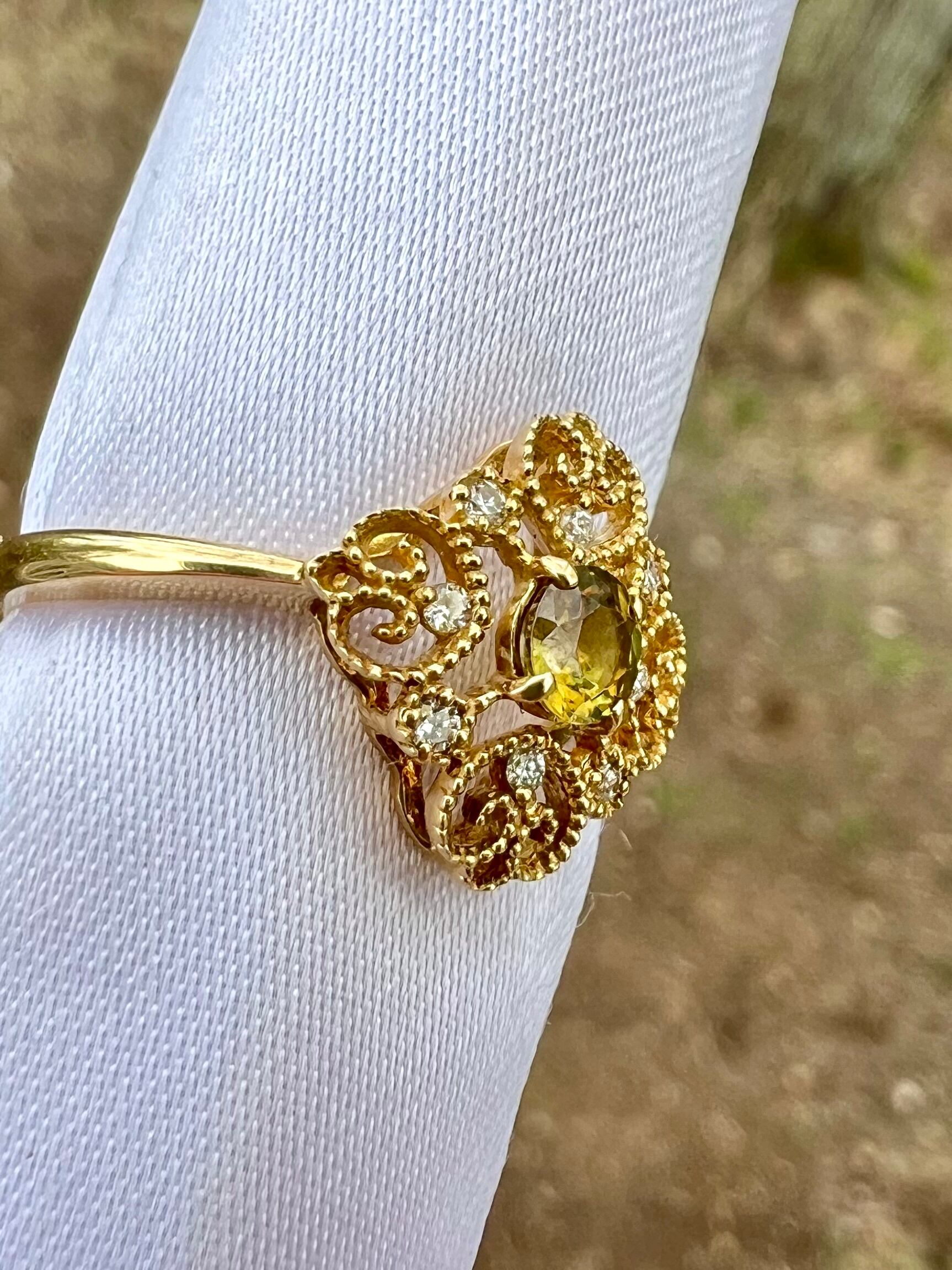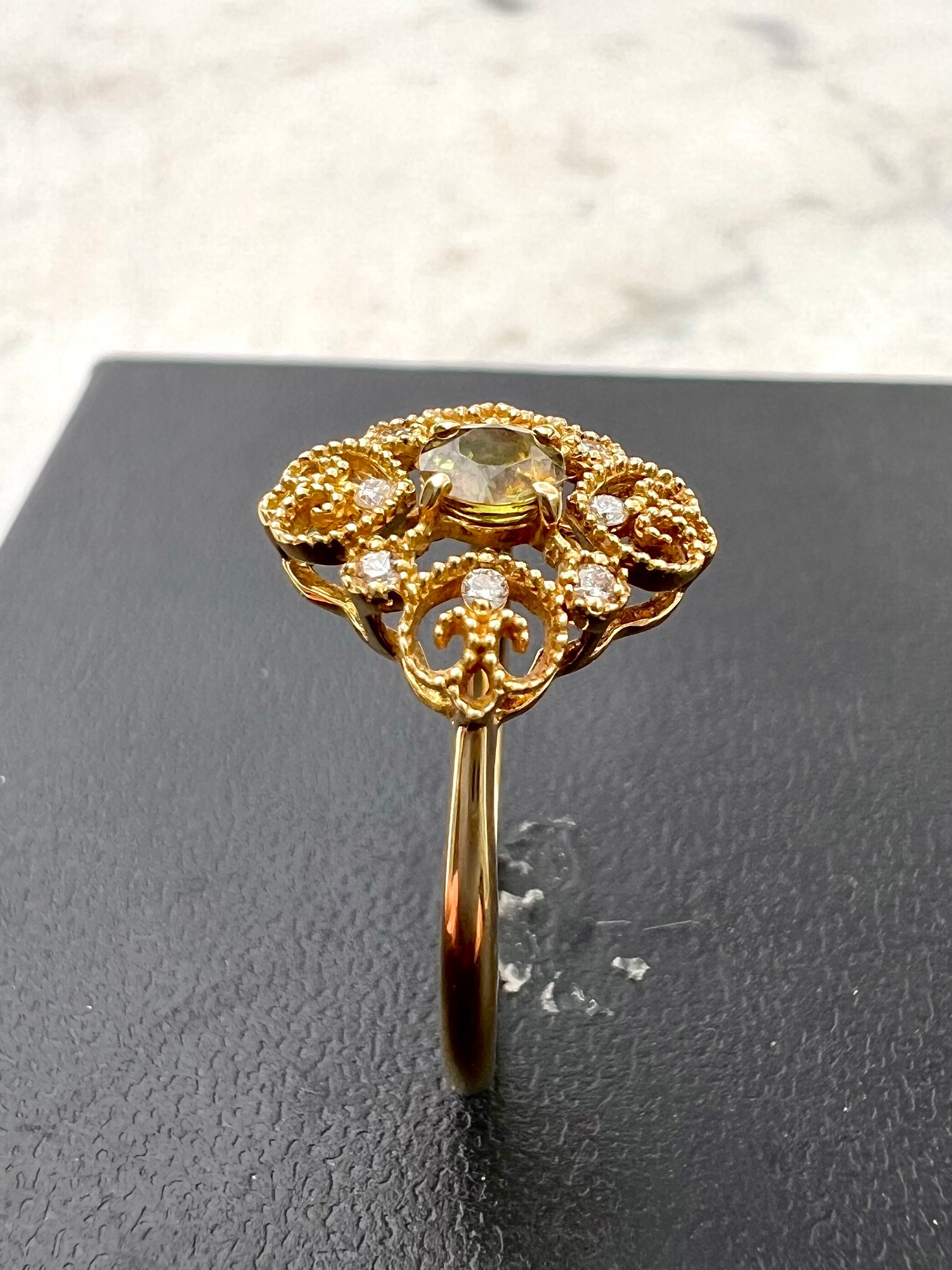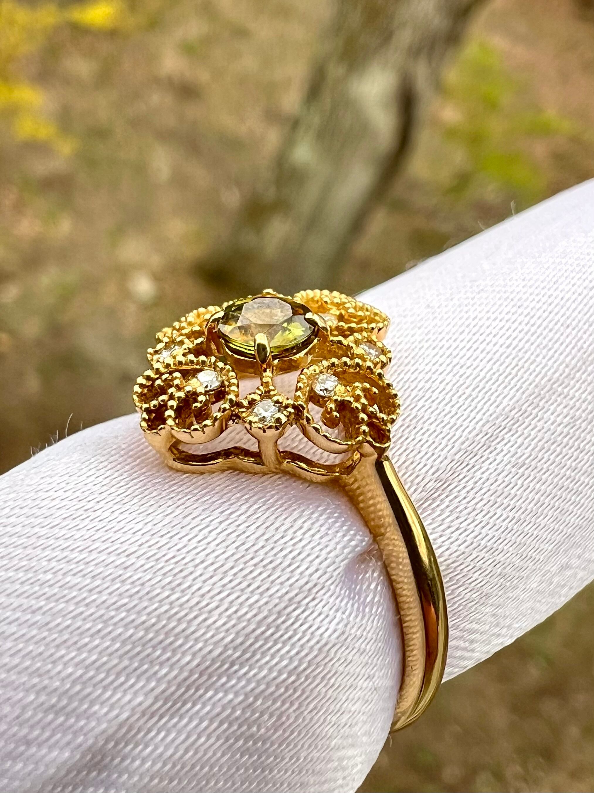可愛いデザイン!極美スフェーンK18リング 小さいながらもよく光る!