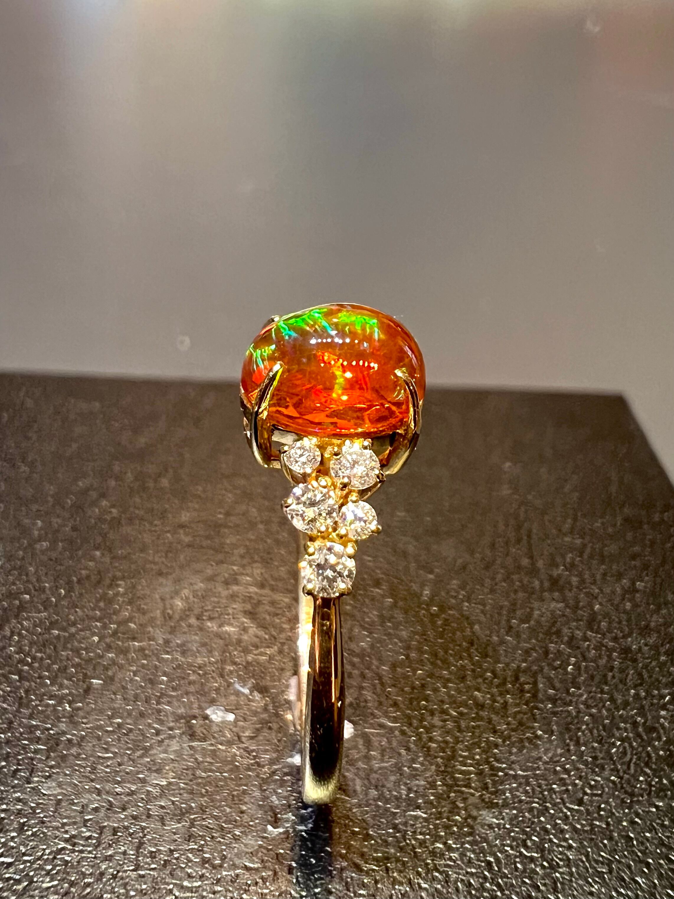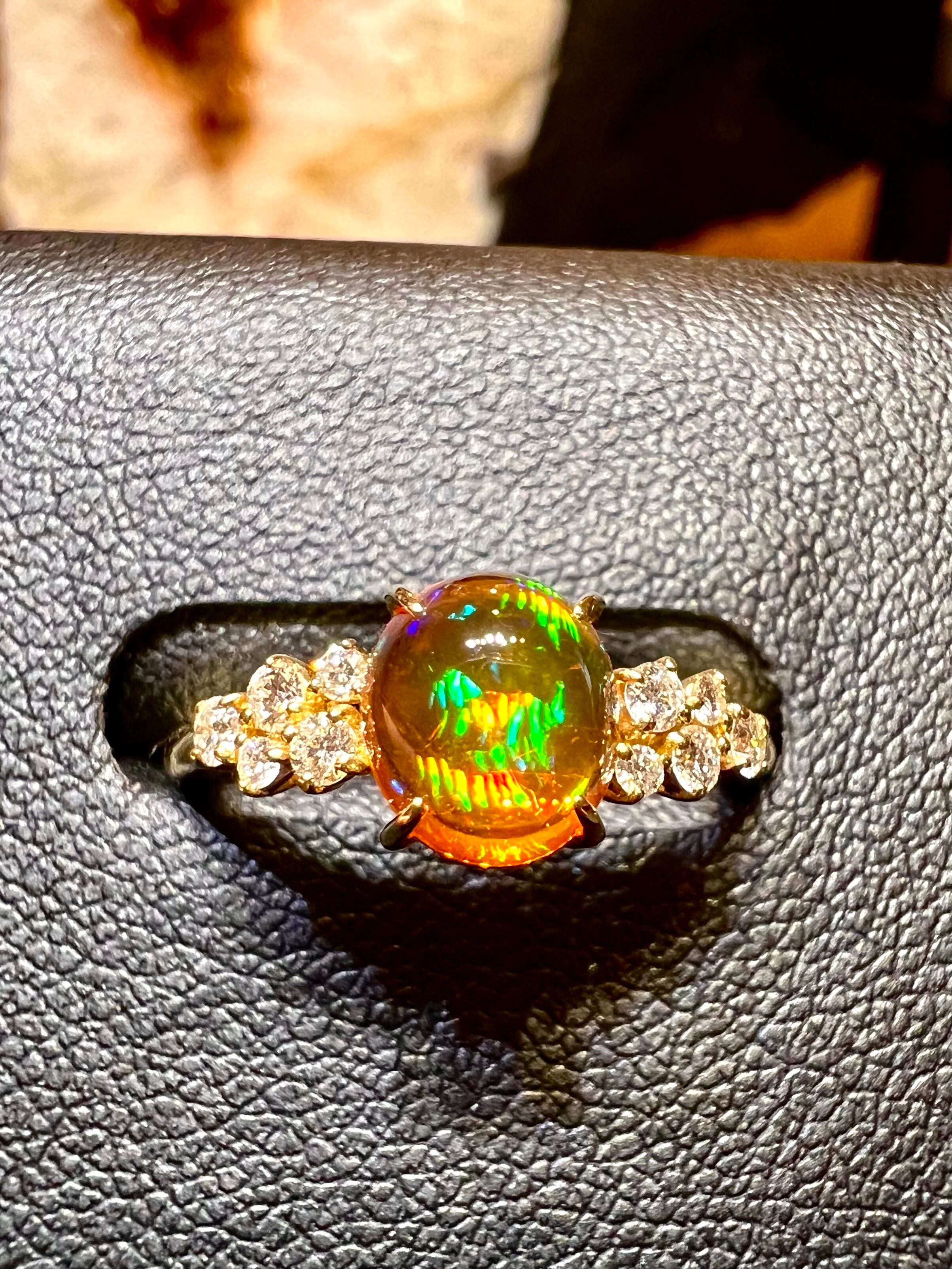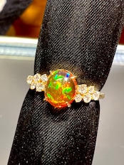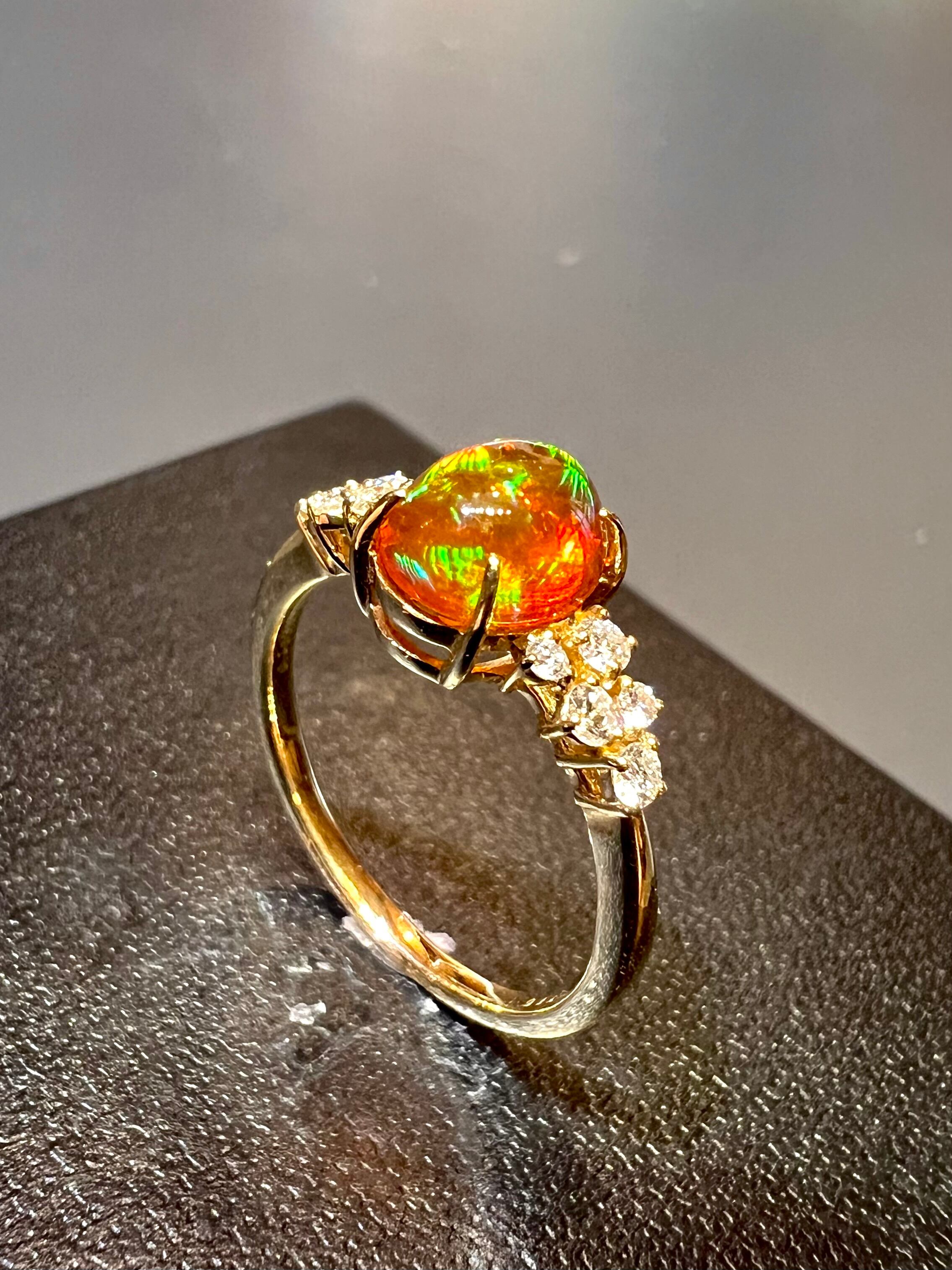 美麗!メキシコ産ファイヤーオパールK18ダイヤモンドリング