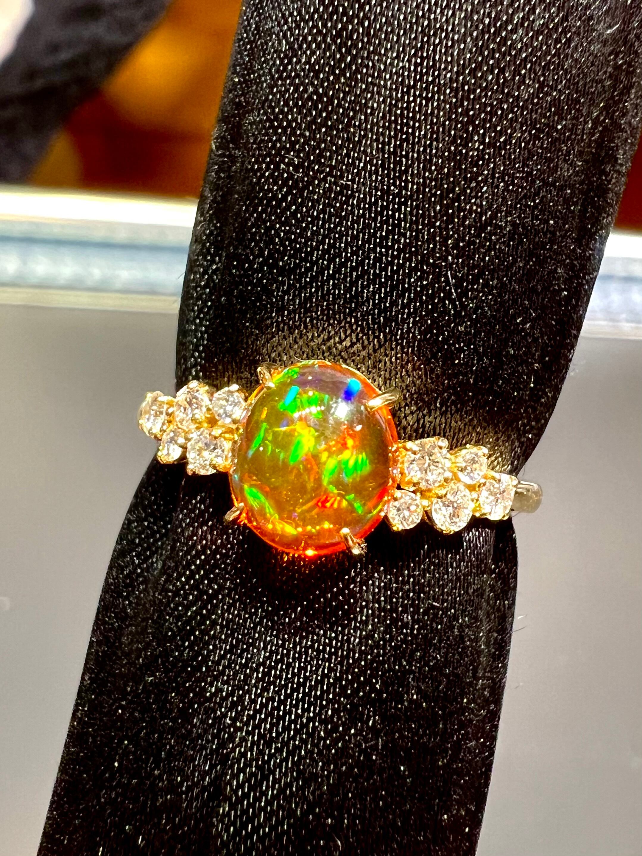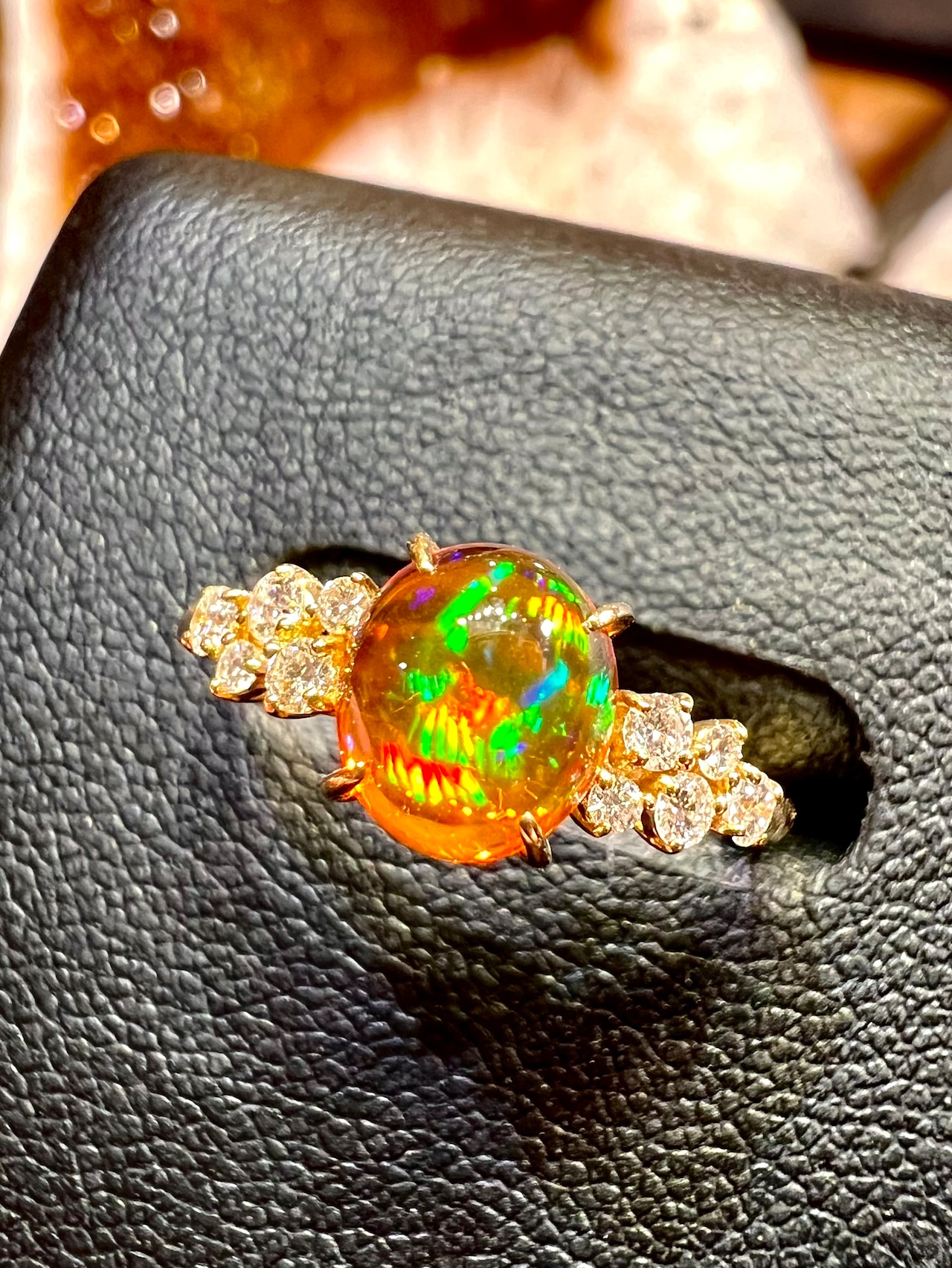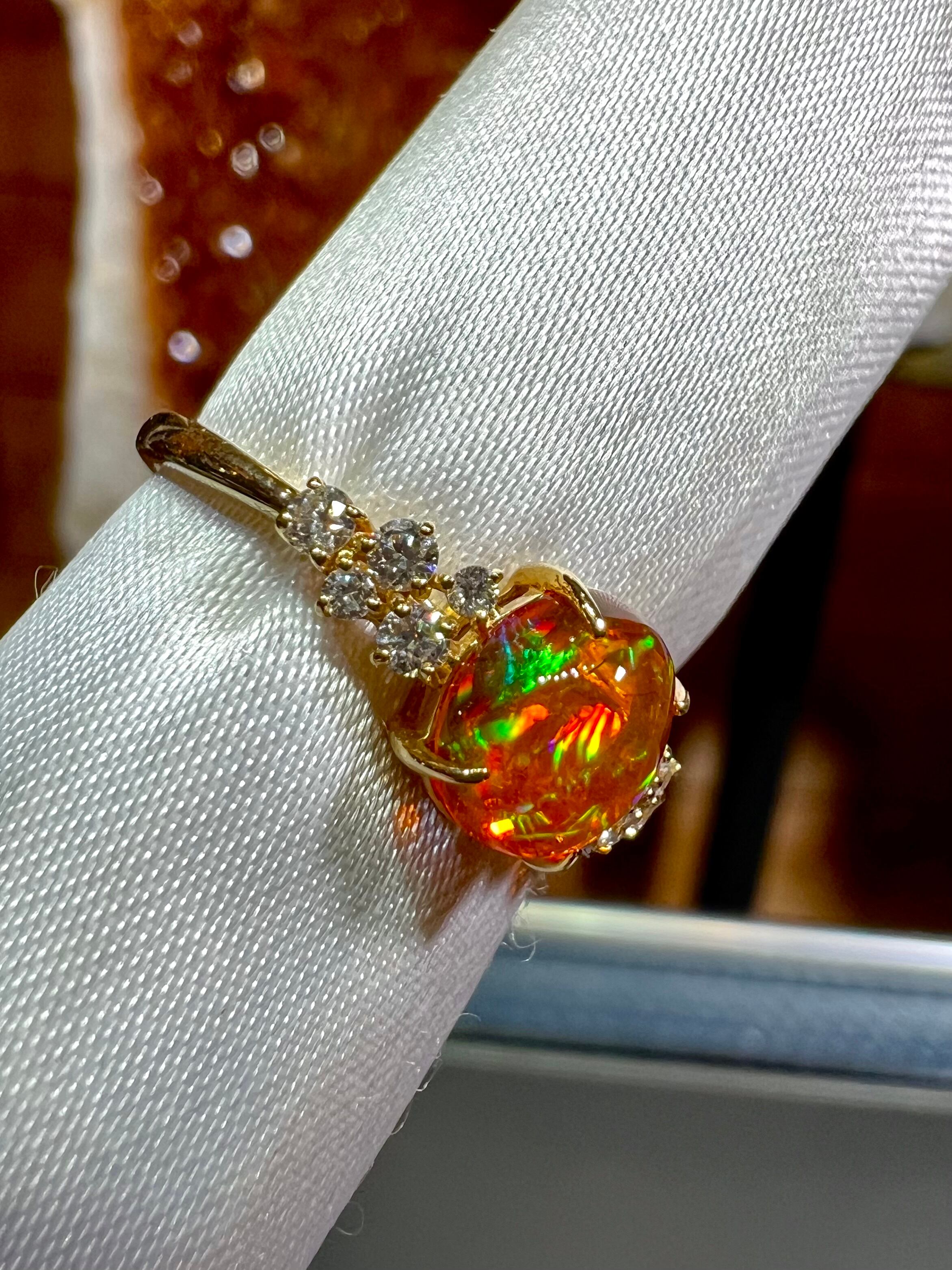 美麗!メキシコ産ファイヤーオパールK18ダイヤモンドリング