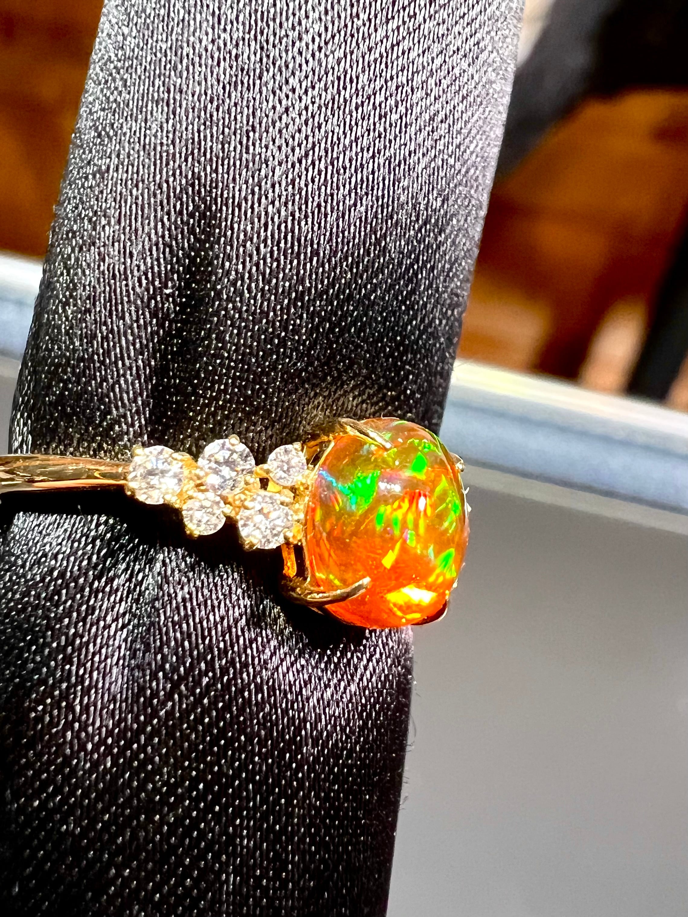 このリングには本当に燃えるような極上のファイヤーオパールをセット致しました。