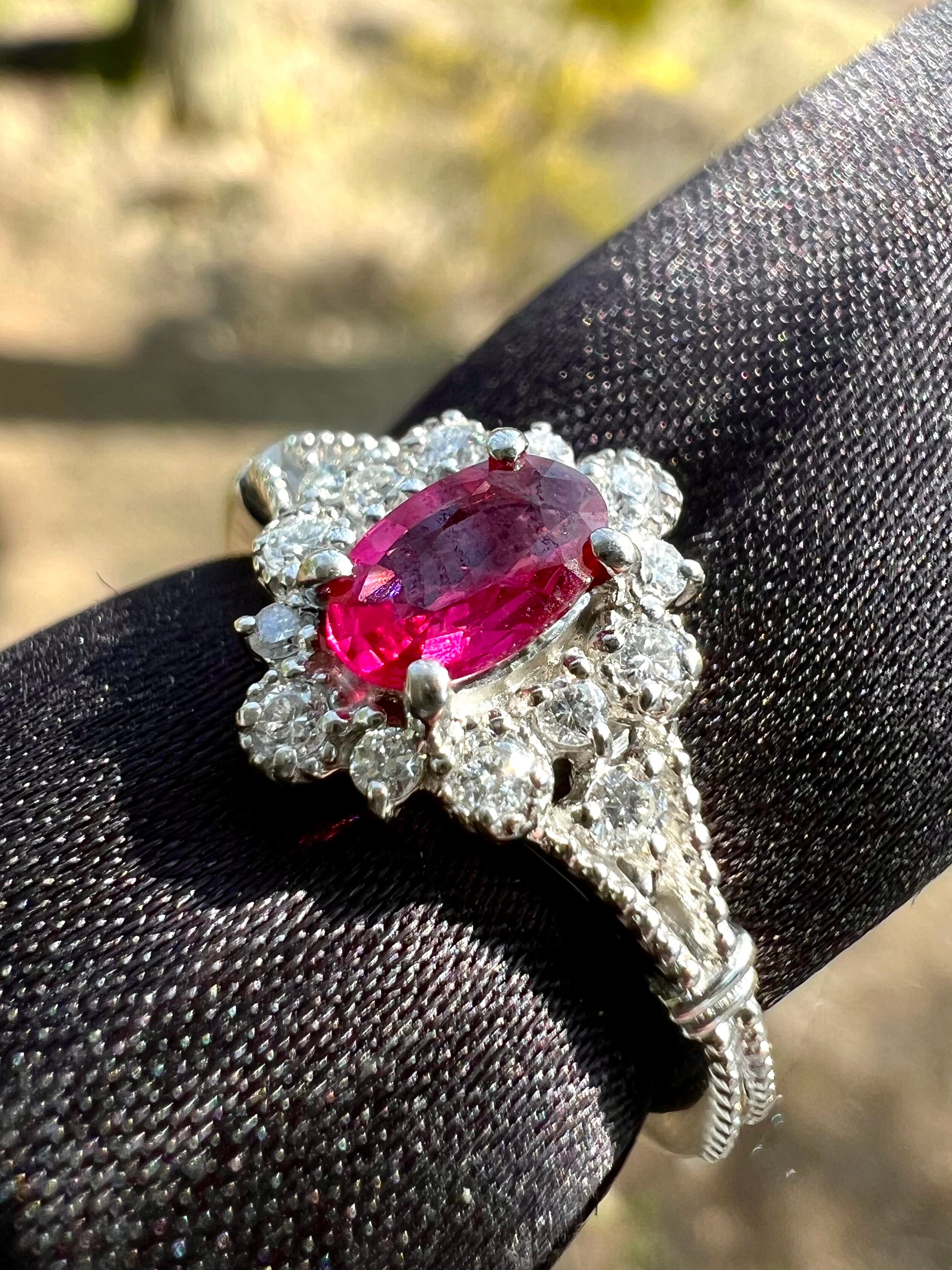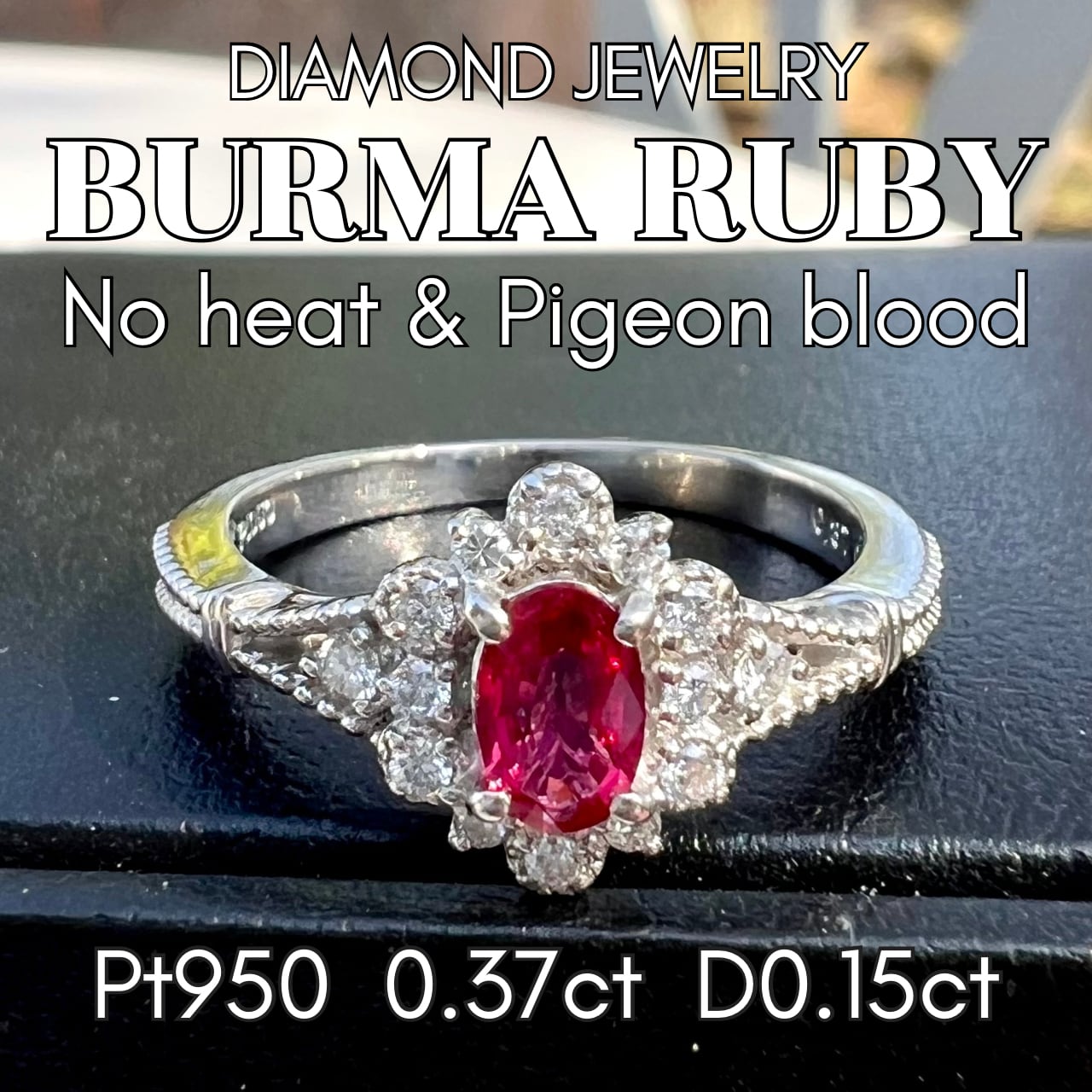 Pt950  Burma産 No heat & Pigeon ルビーダイヤモンドリング AIGS鑑別書付属