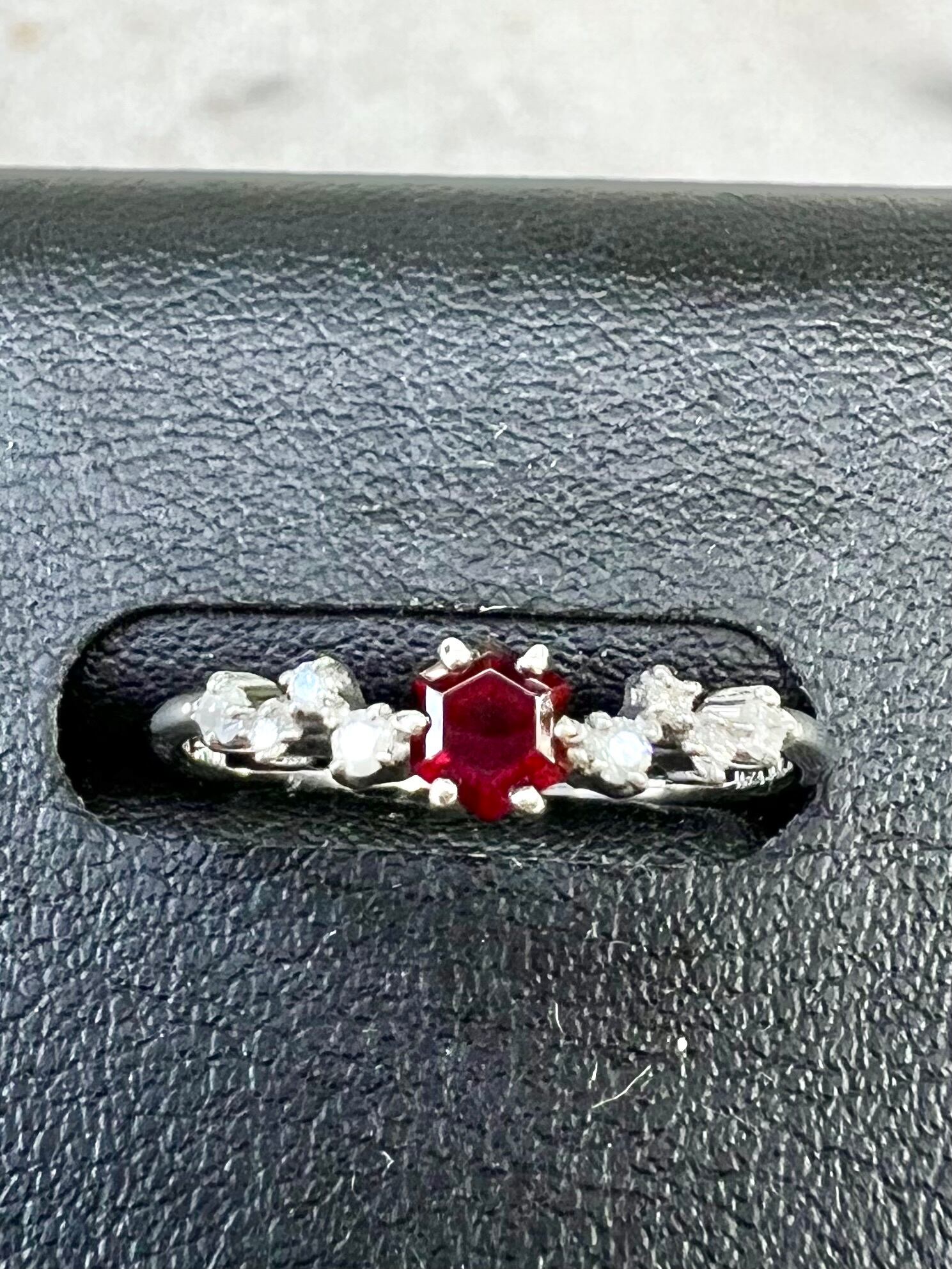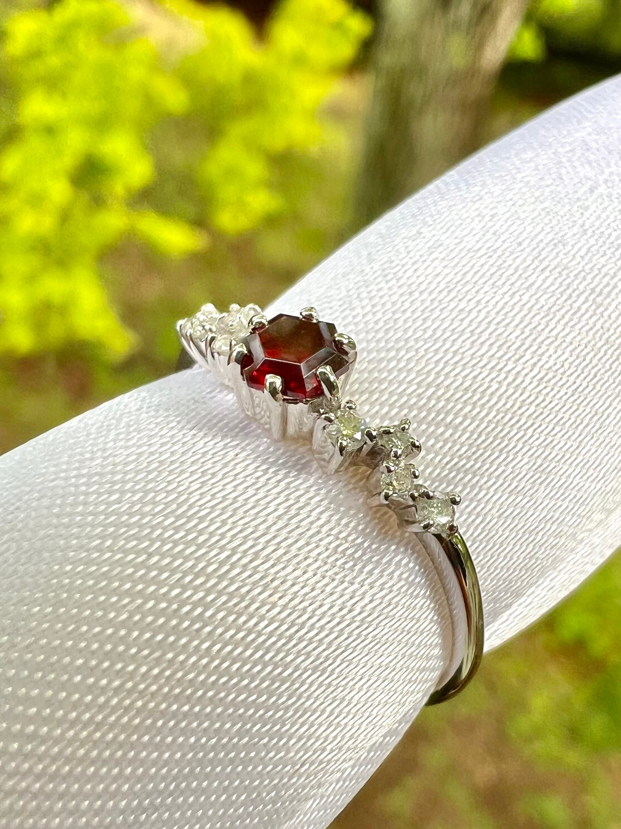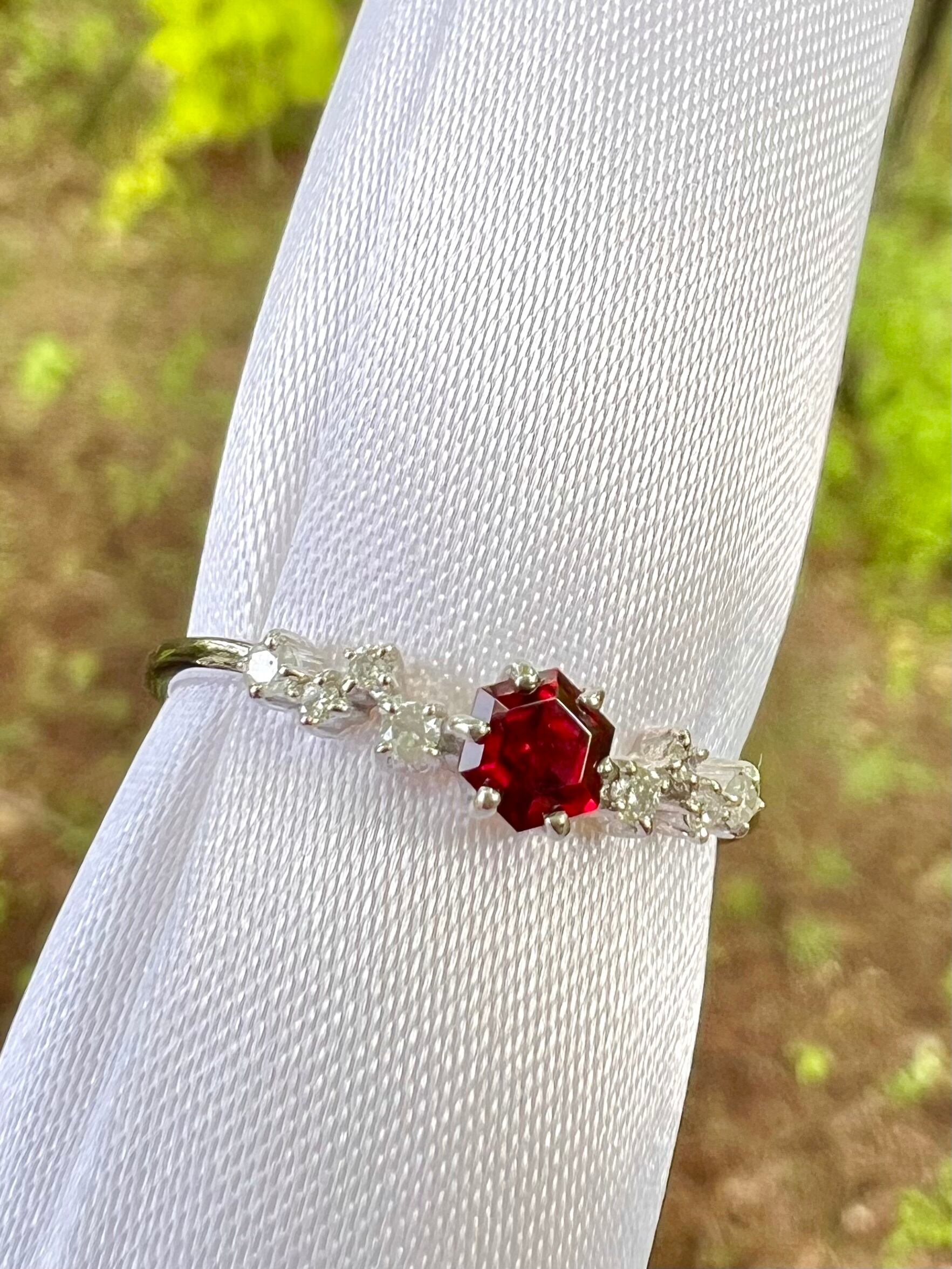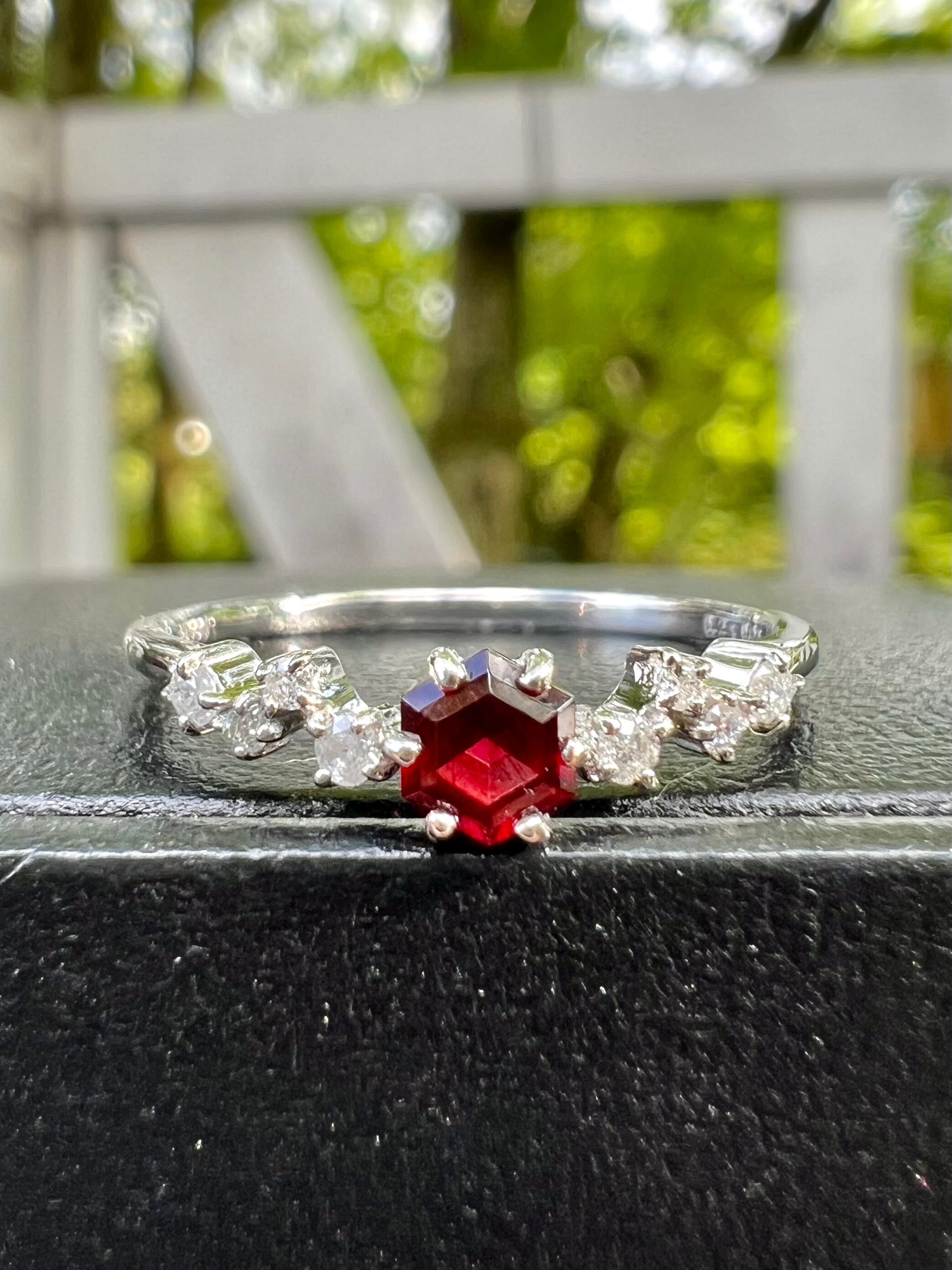 このリングに使用されてる真っ赤な石はアントヒルガーネットです。