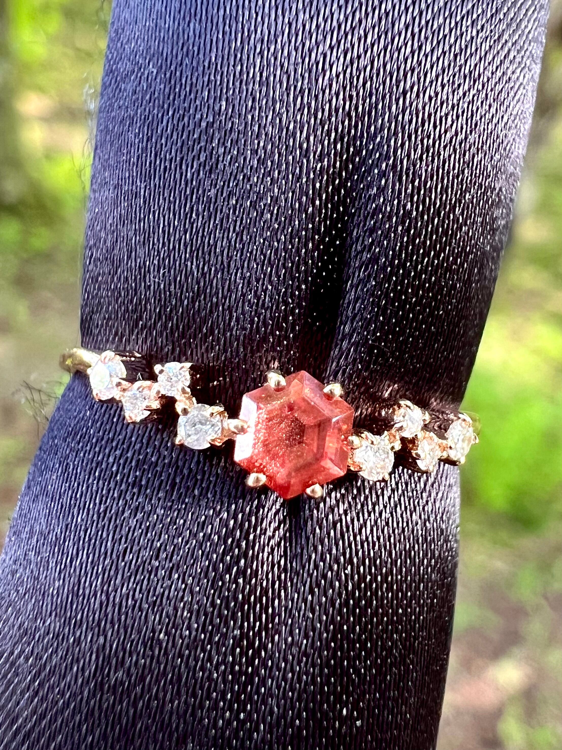 美麗! K18PGオレゴンサンストーンダイヤモンドリング《ランダム発送商品》