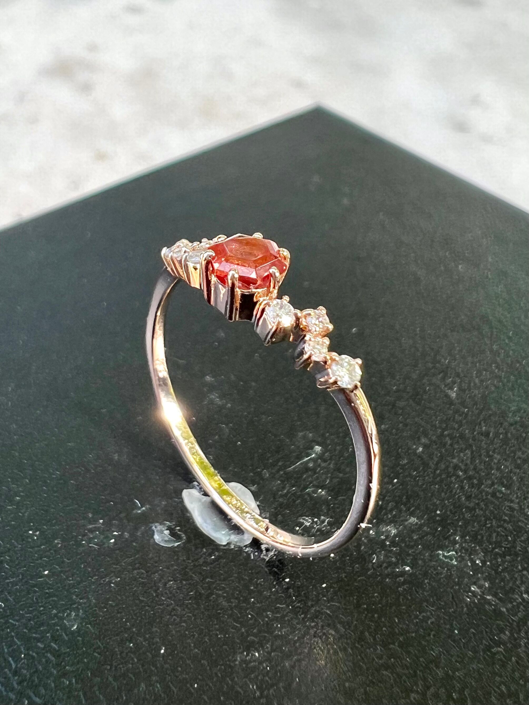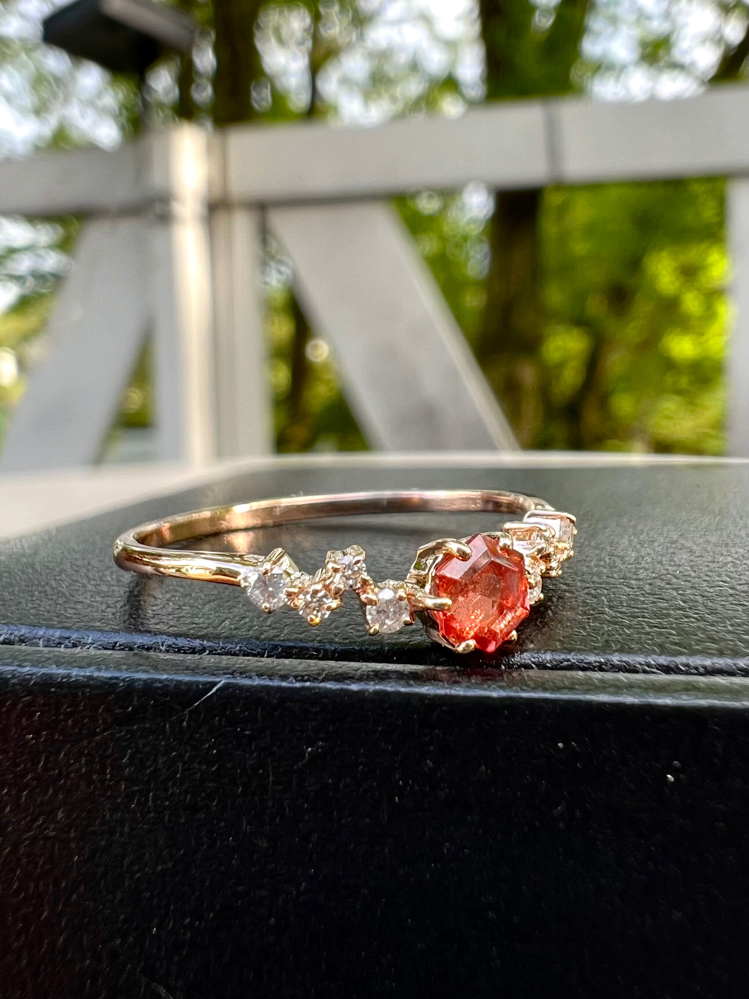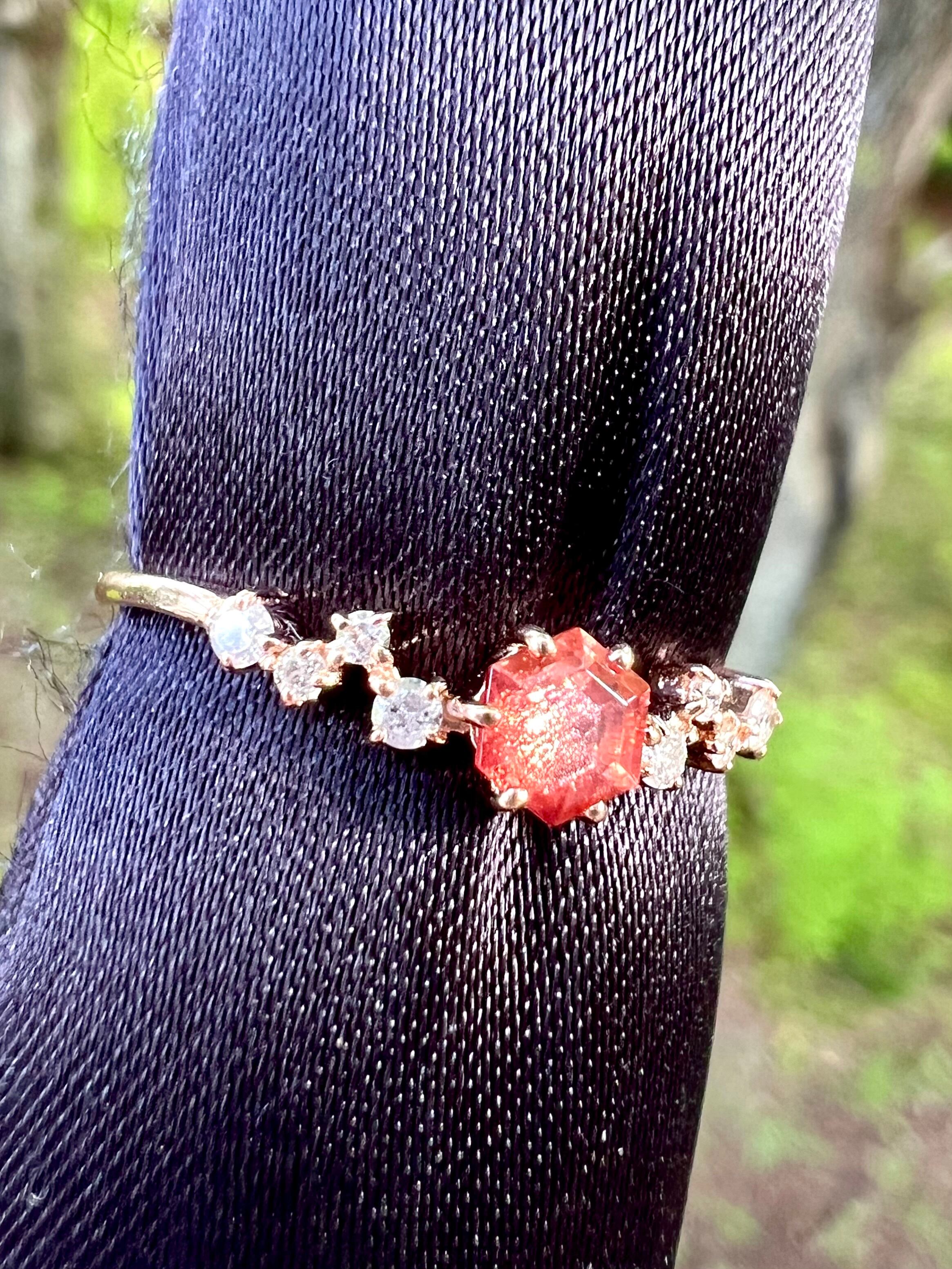 美麗! K18PGオレゴンサンストーンダイヤモンドリング