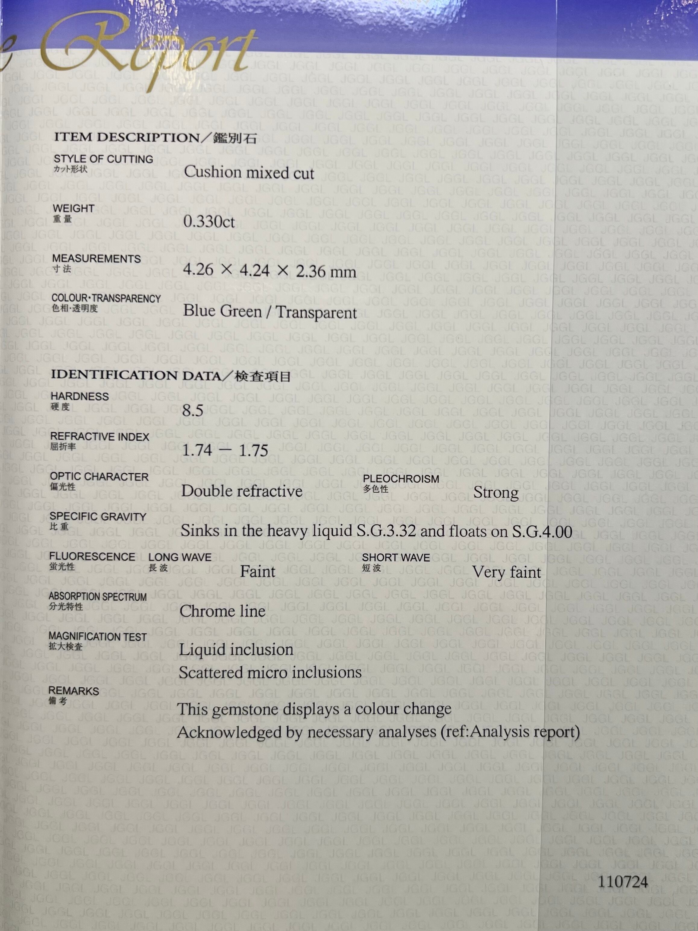 日独産地証明付鑑別書付属