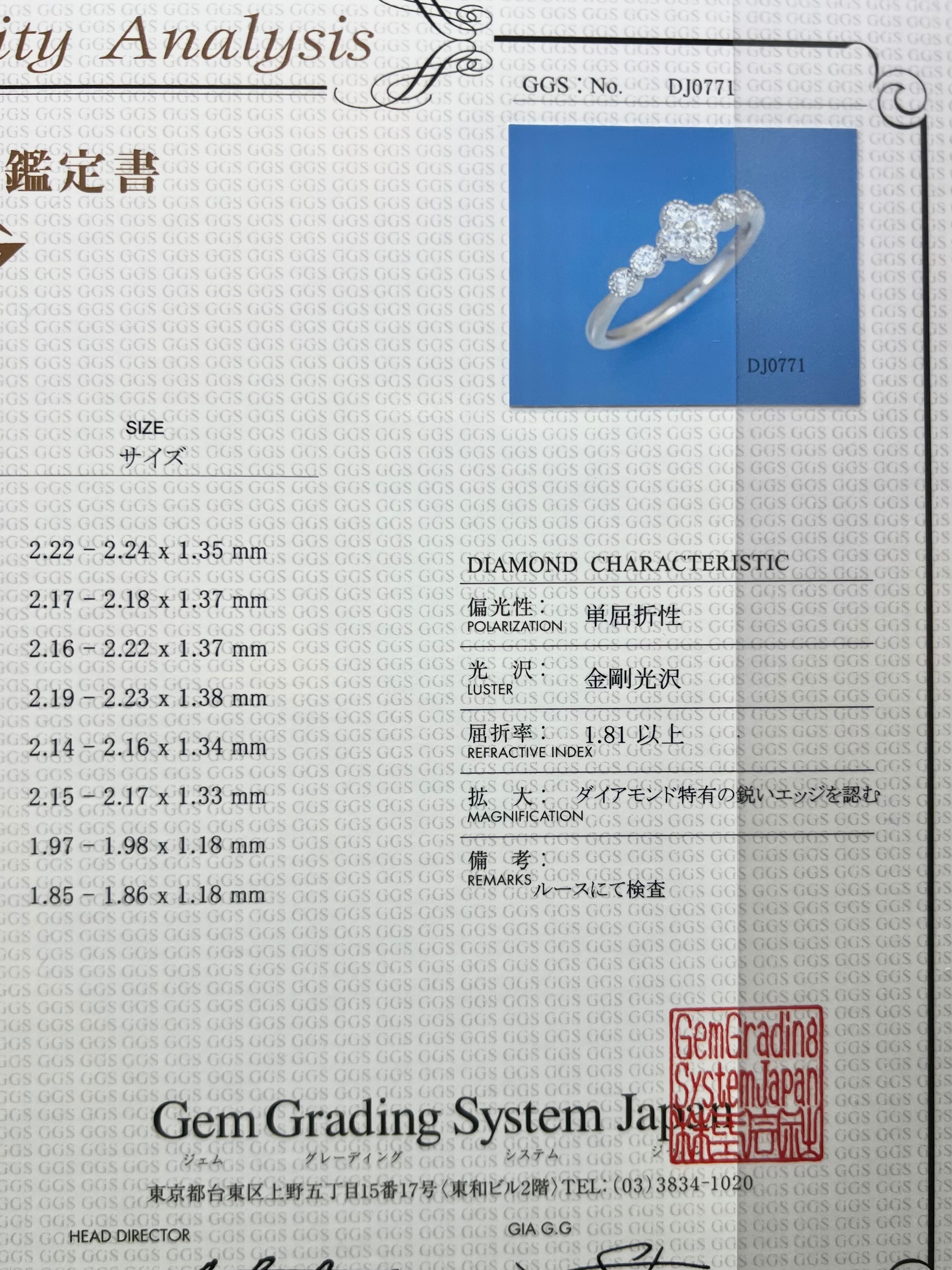 all D IF EX クローバーモチーフデザインダイヤモンドリング GGS鑑定書付属