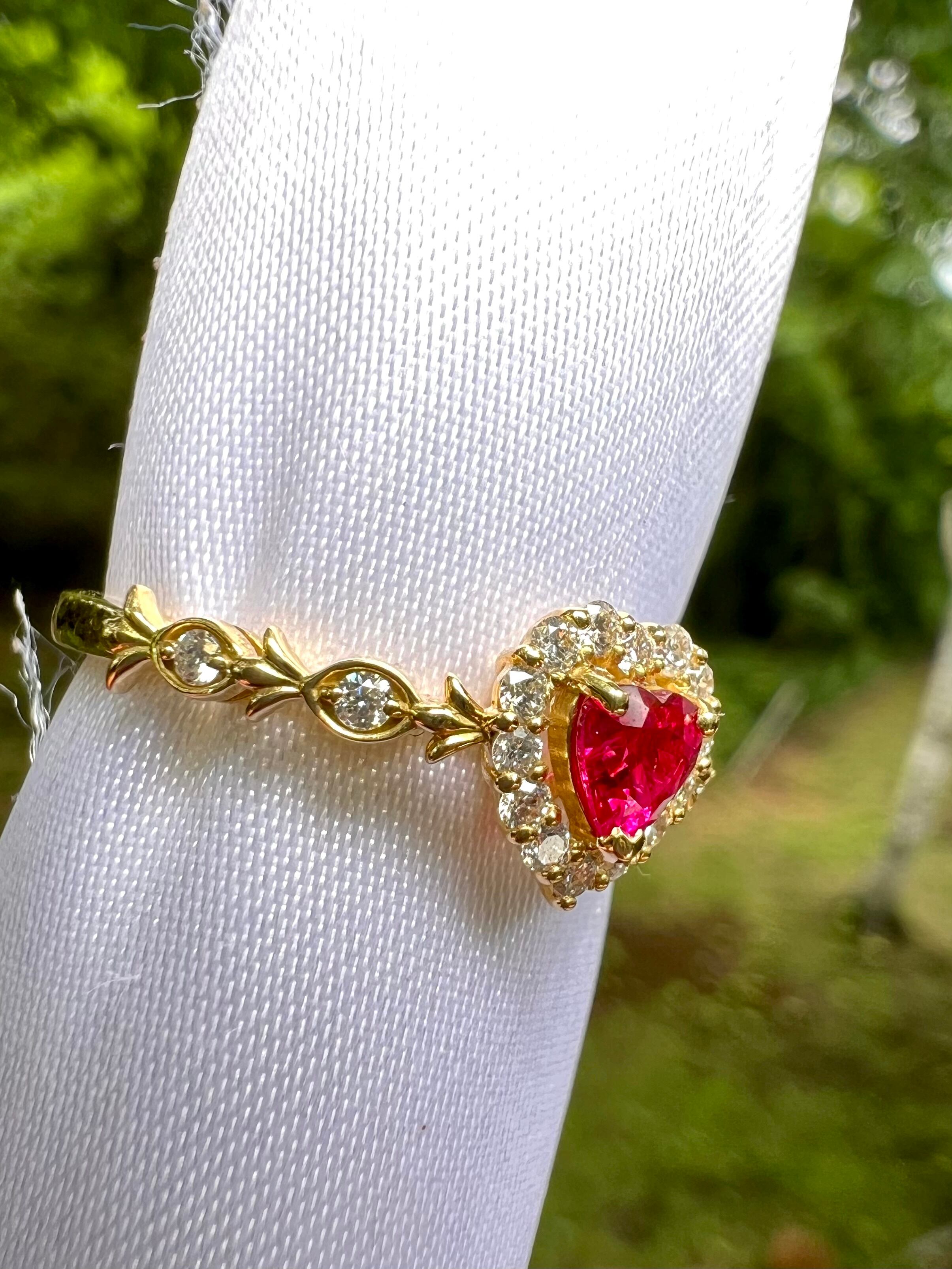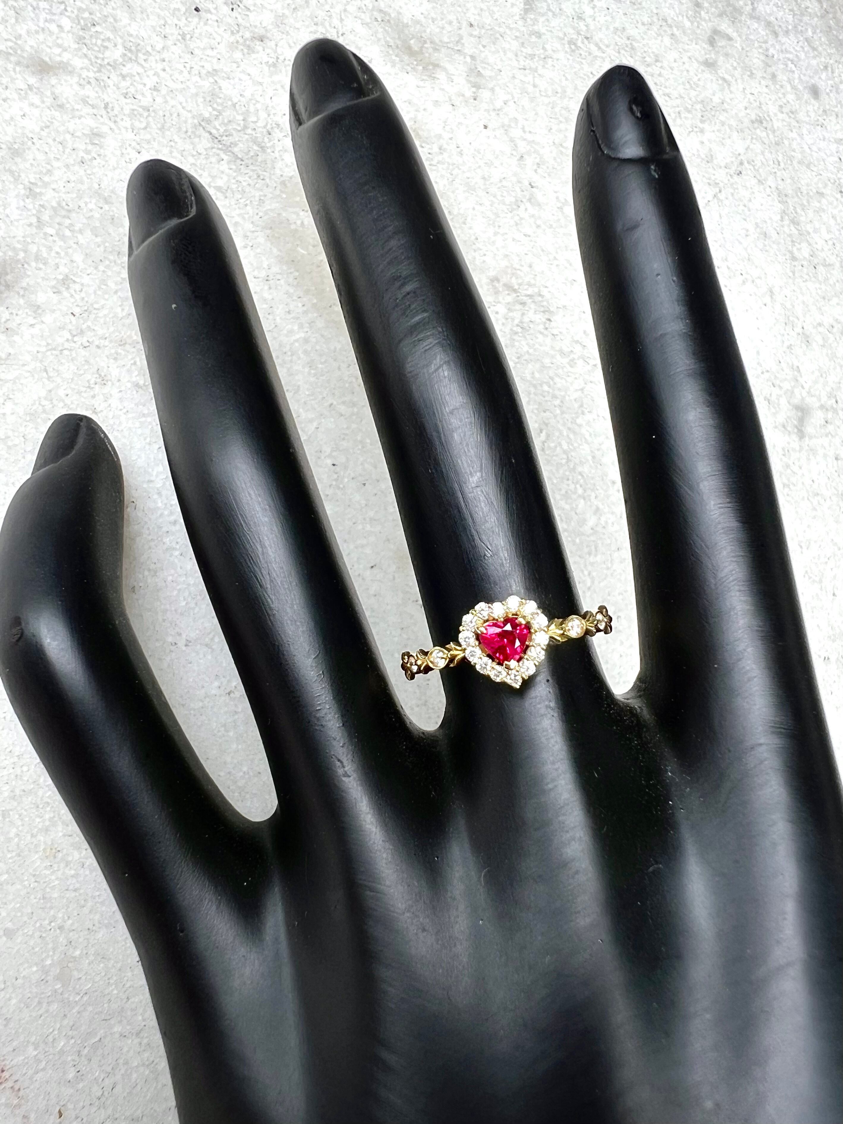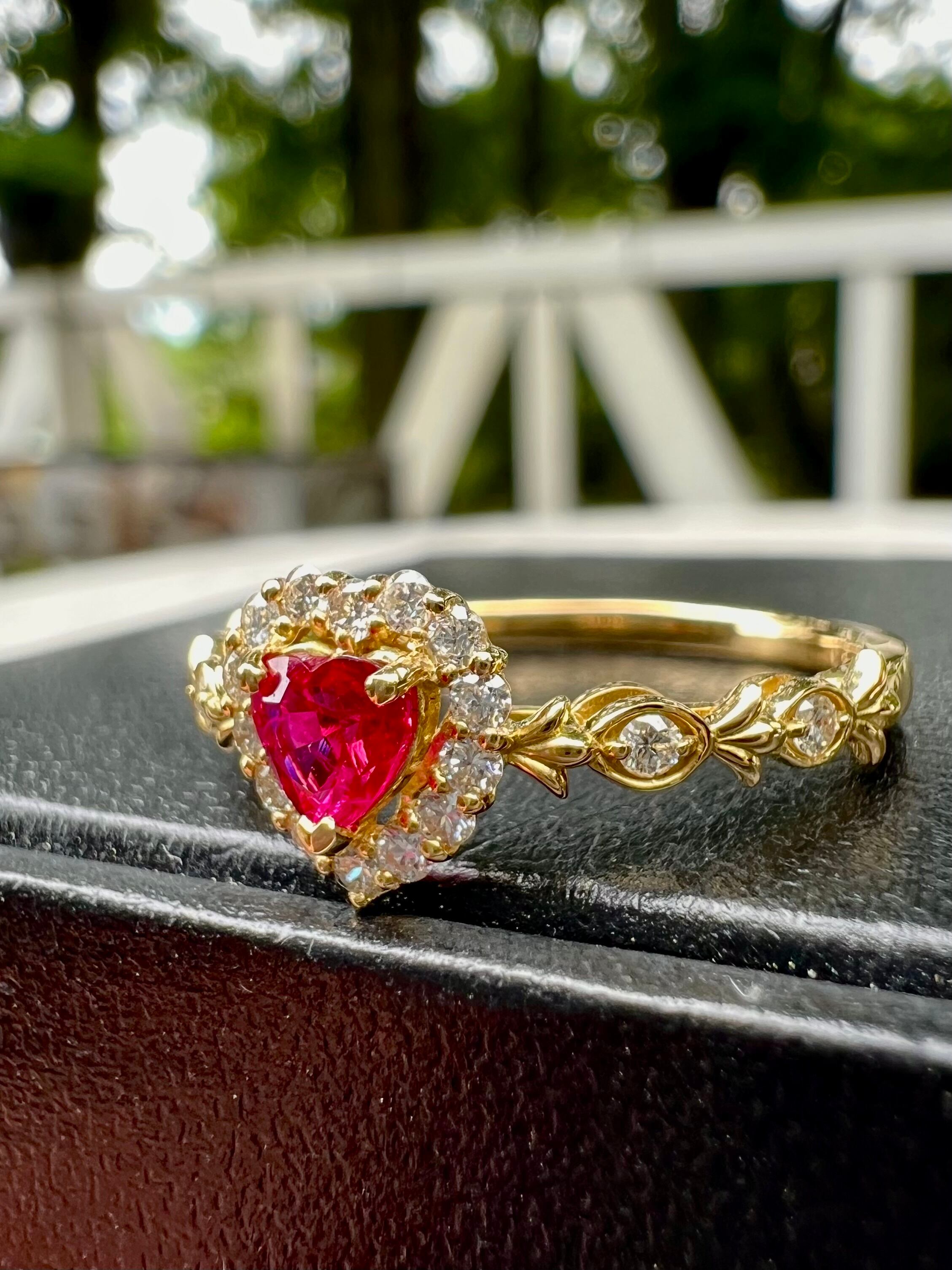 超可愛い!K18 ハートシェイプ!ルビーダイヤモンドリング JGGLソーティング付属