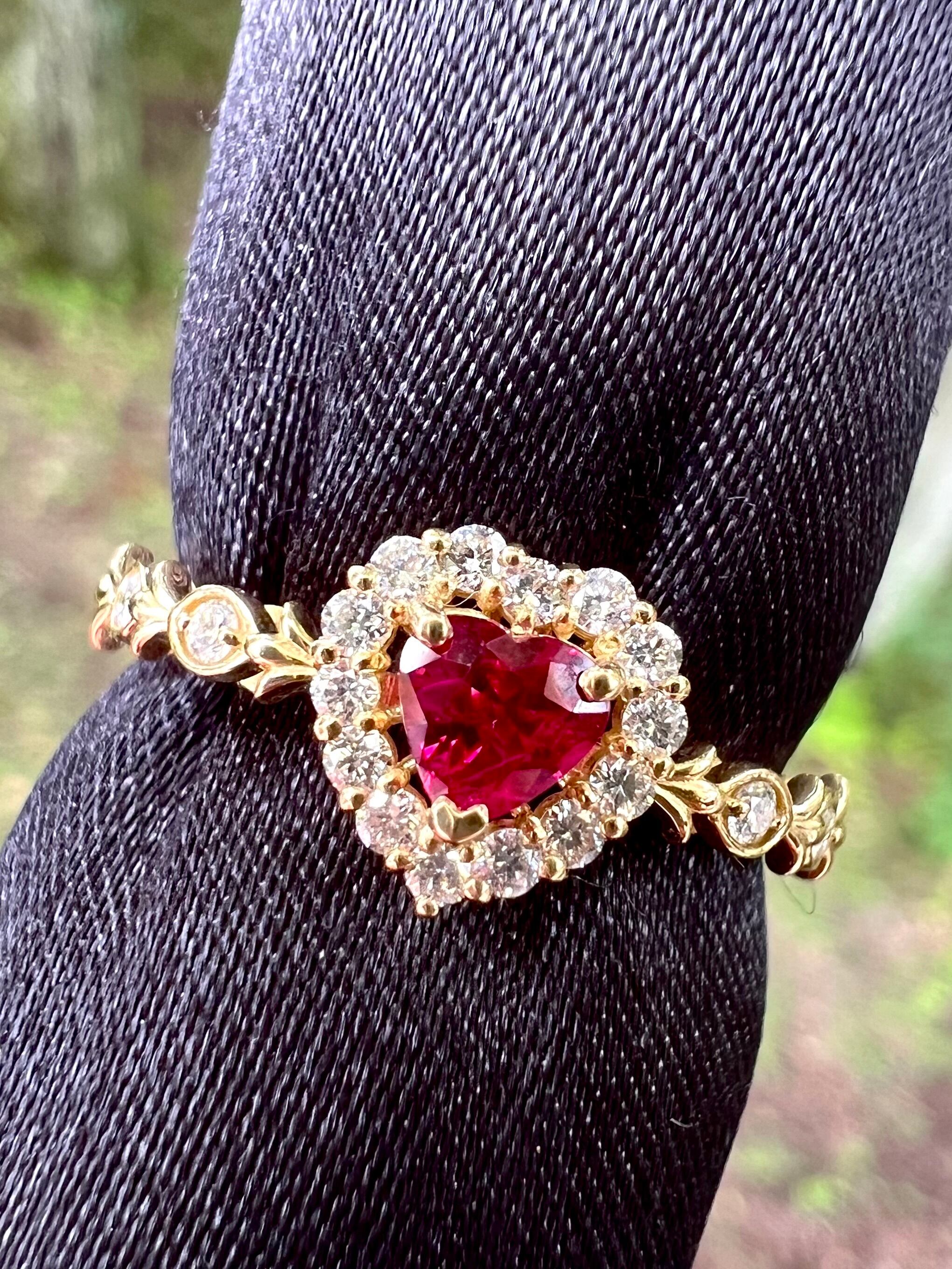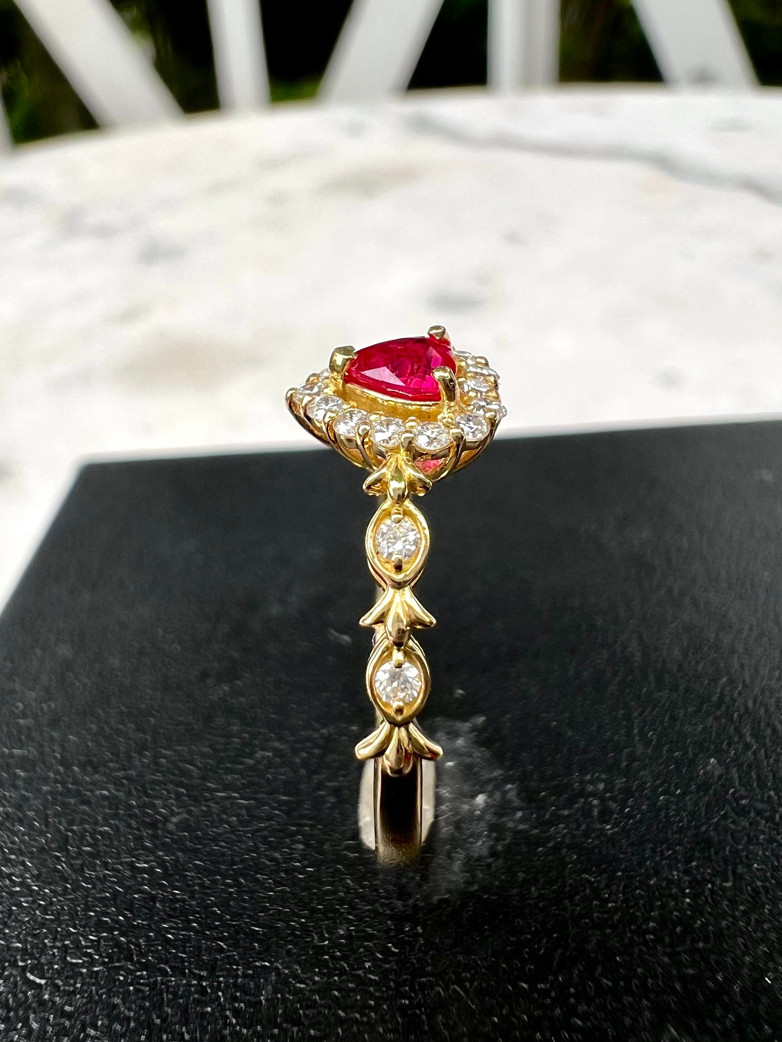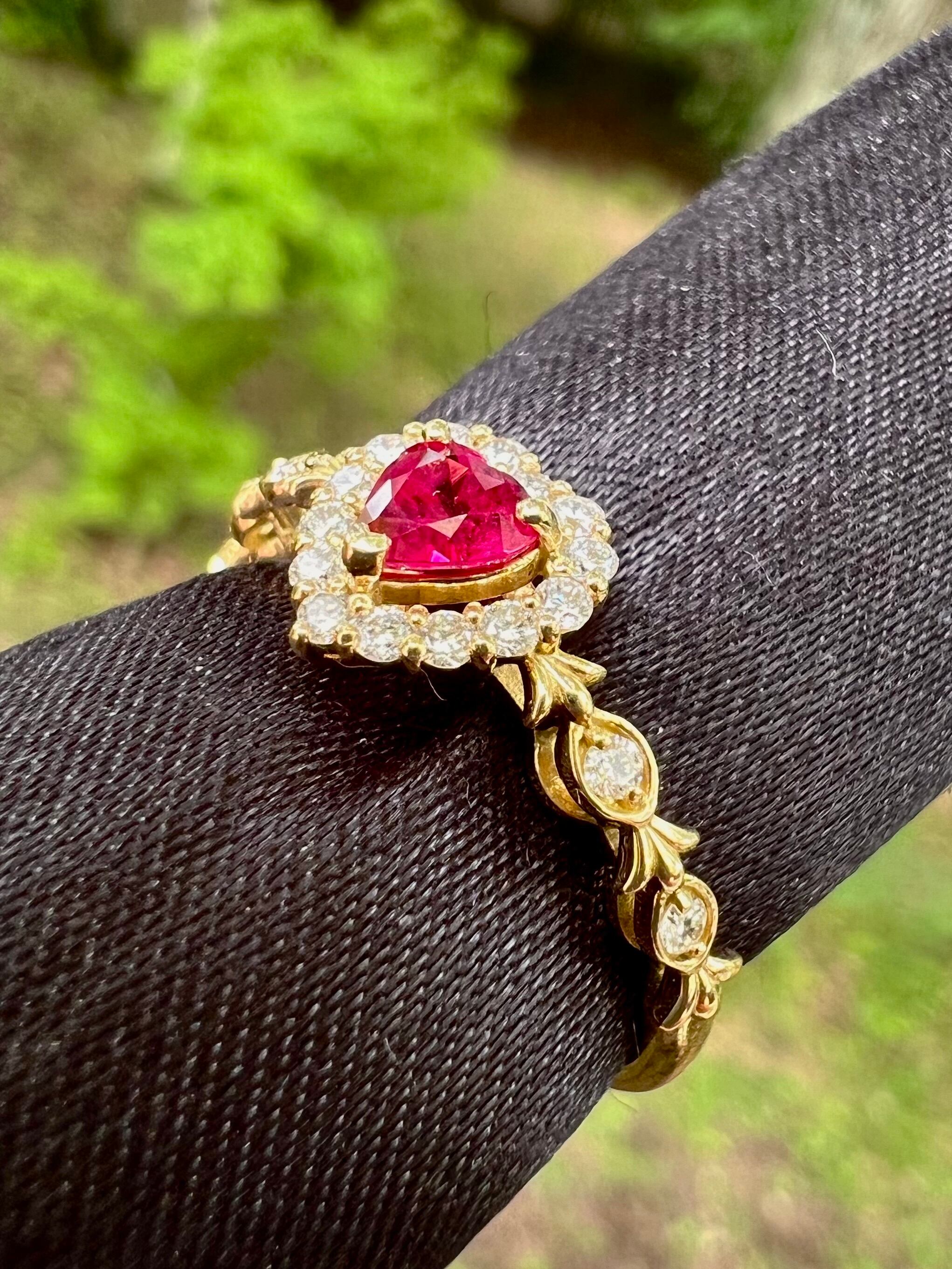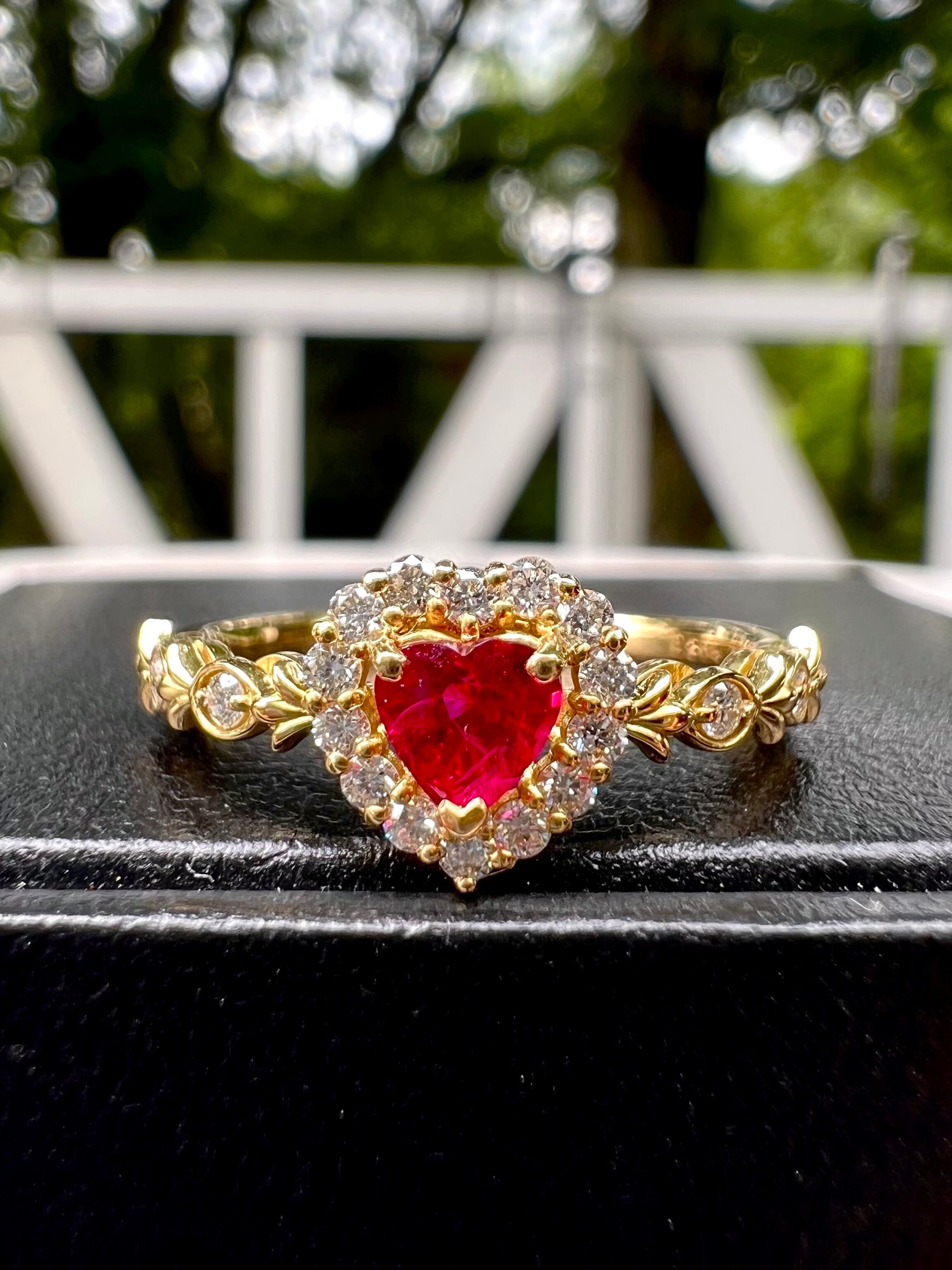超可愛い!K18 ハートシェイプ!ルビーダイヤモンドリング JGGLソーティング付属