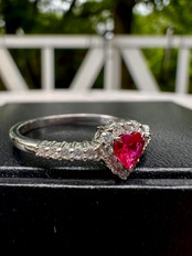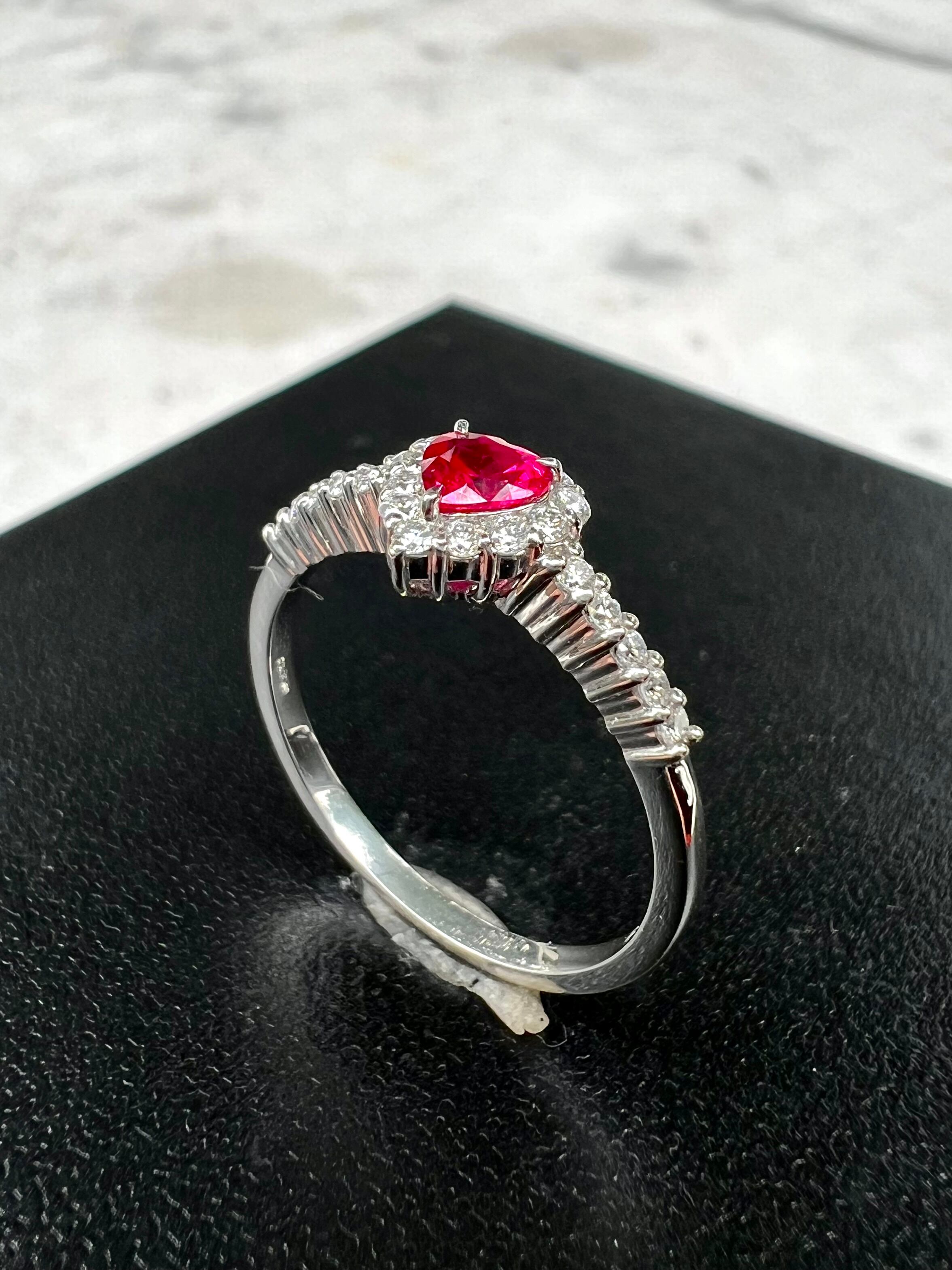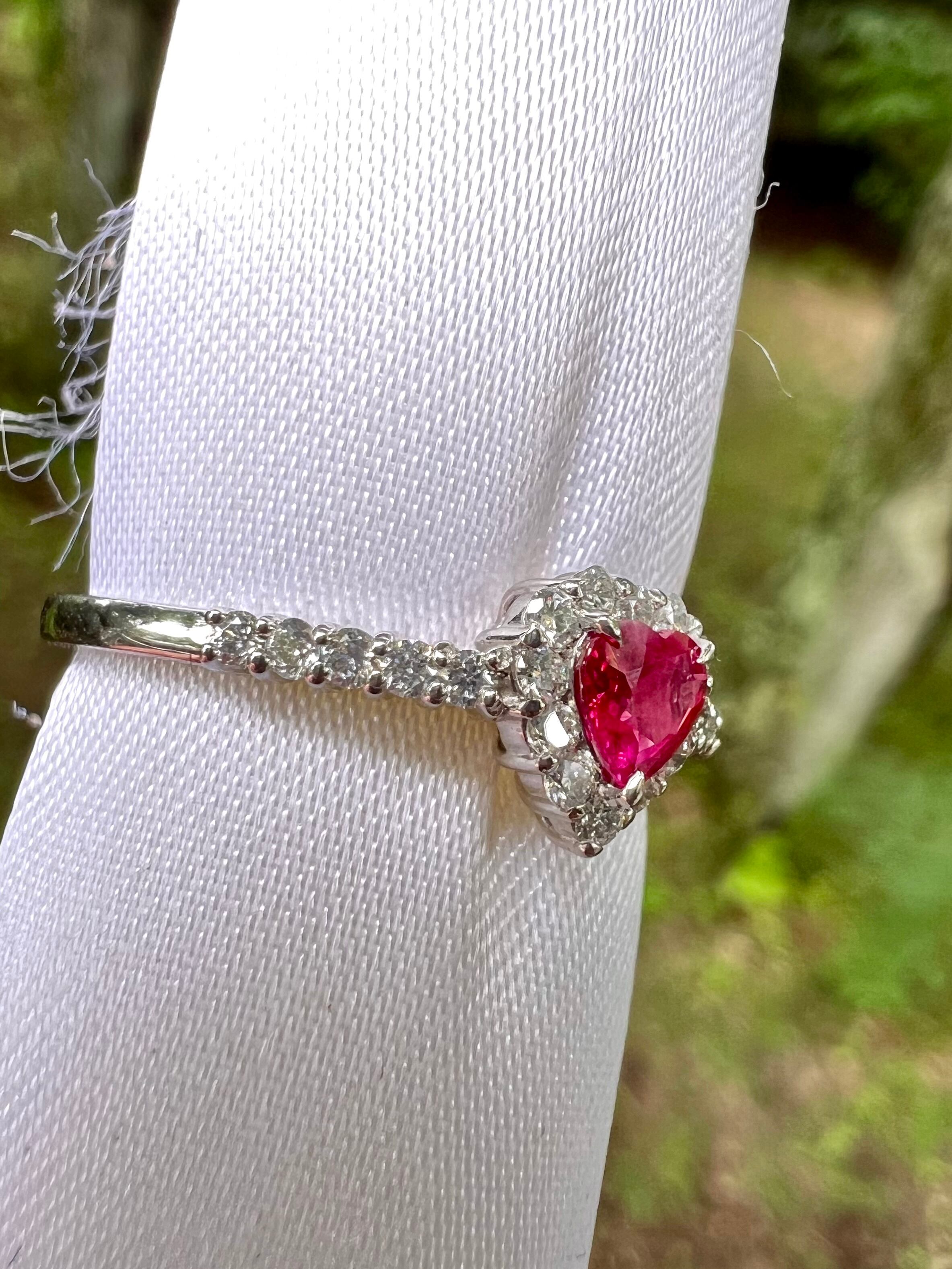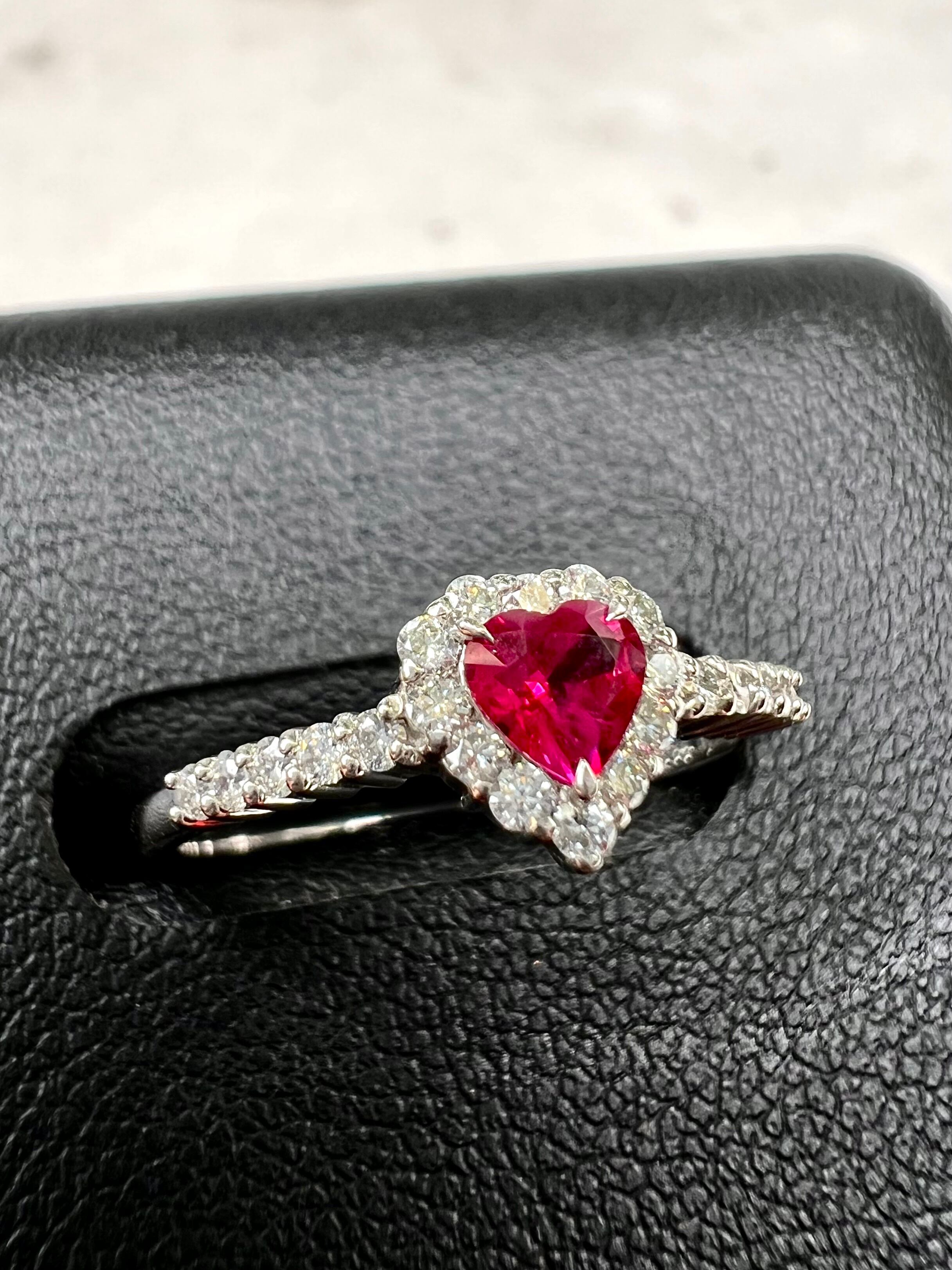 超可愛い!Pt950 ハートシェイプ!ルビーダイヤモンドリング JGGLソーティング付属