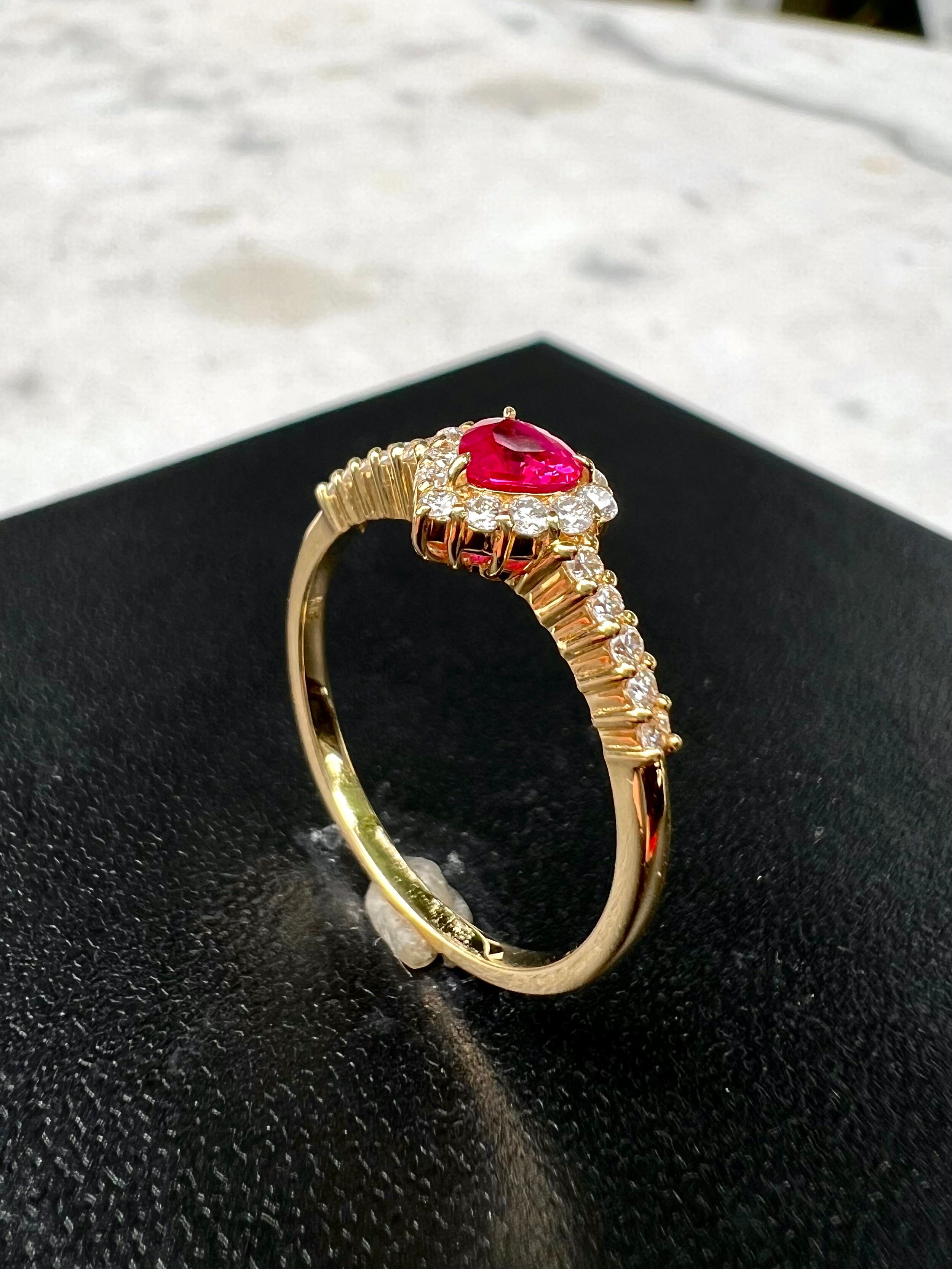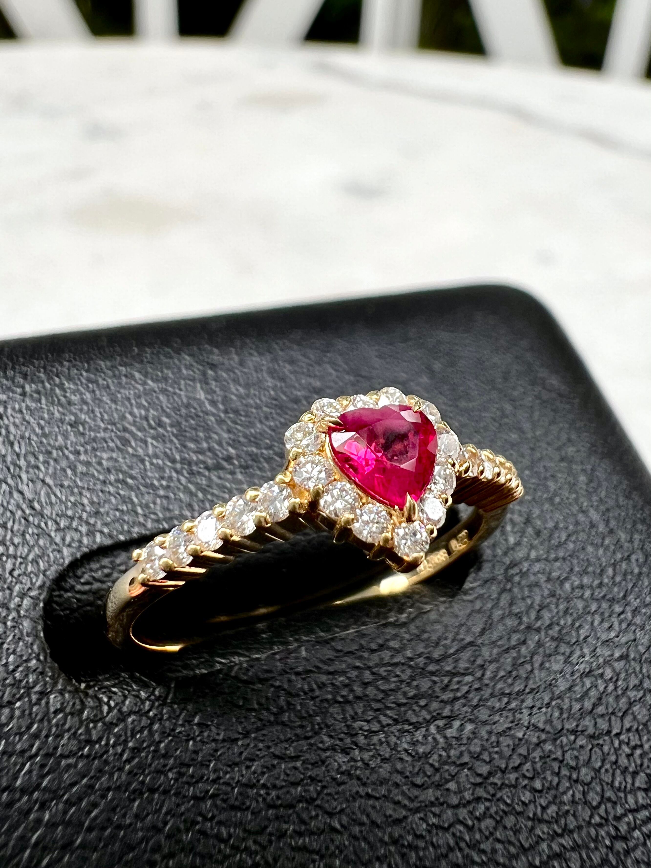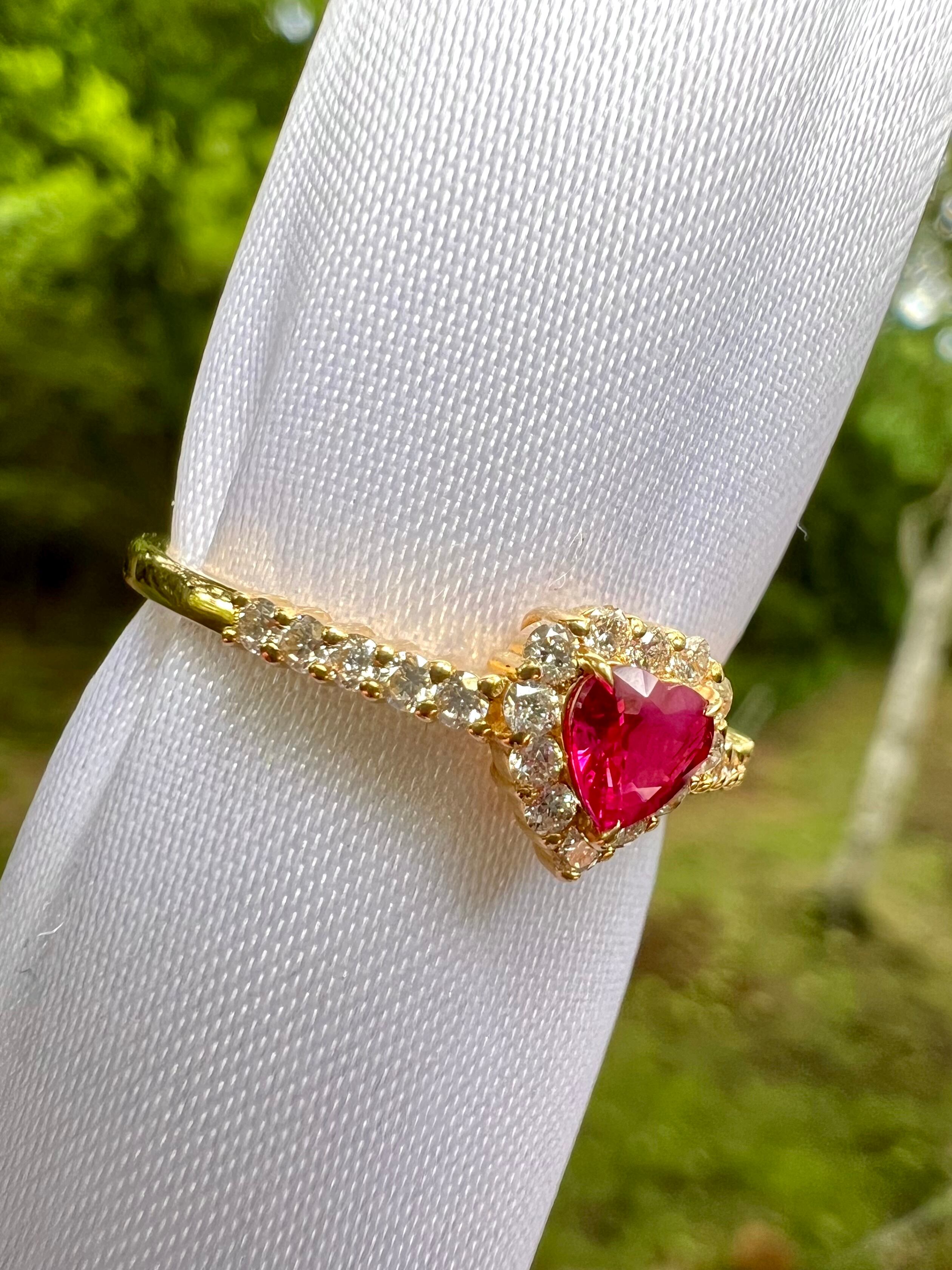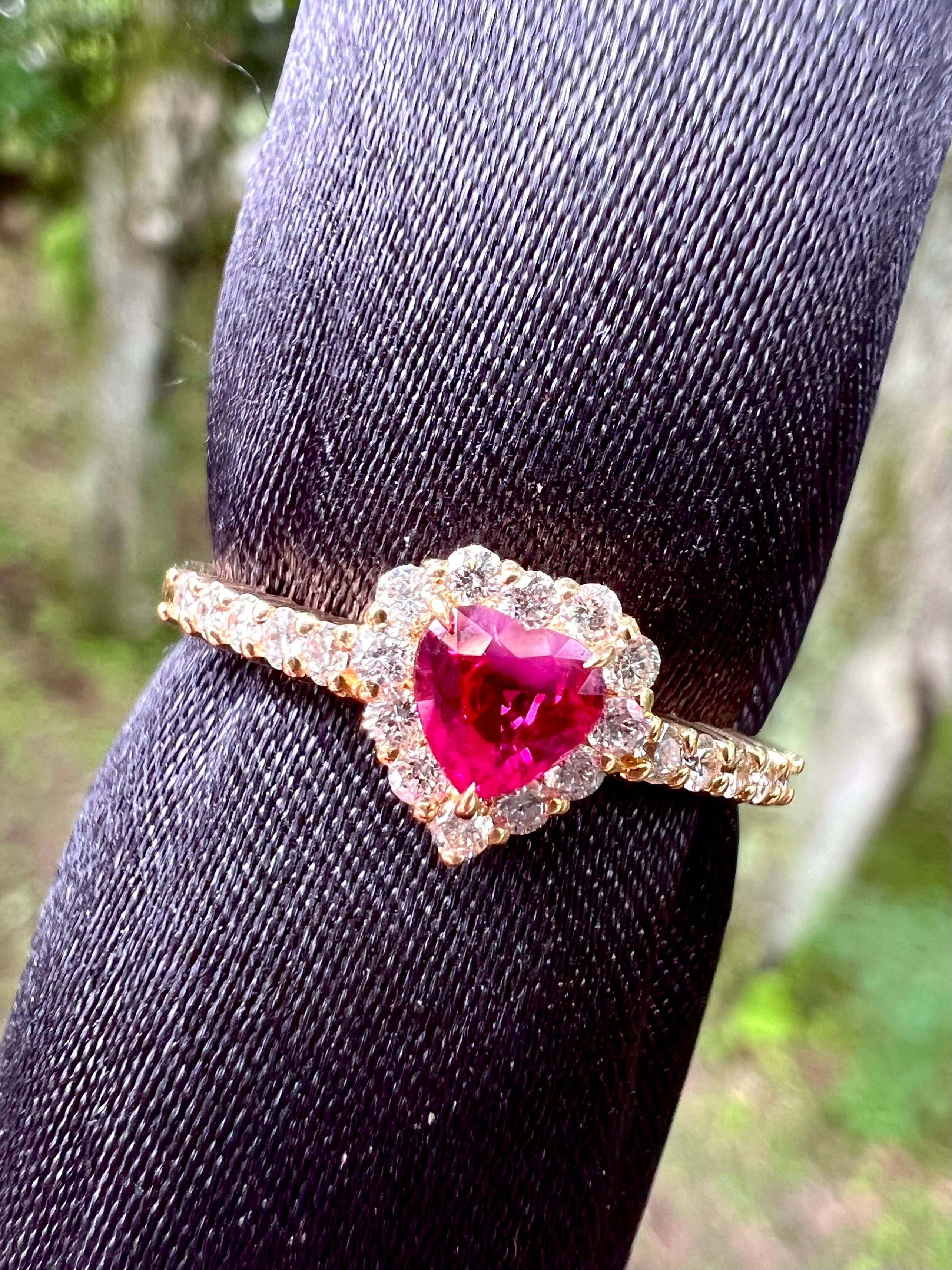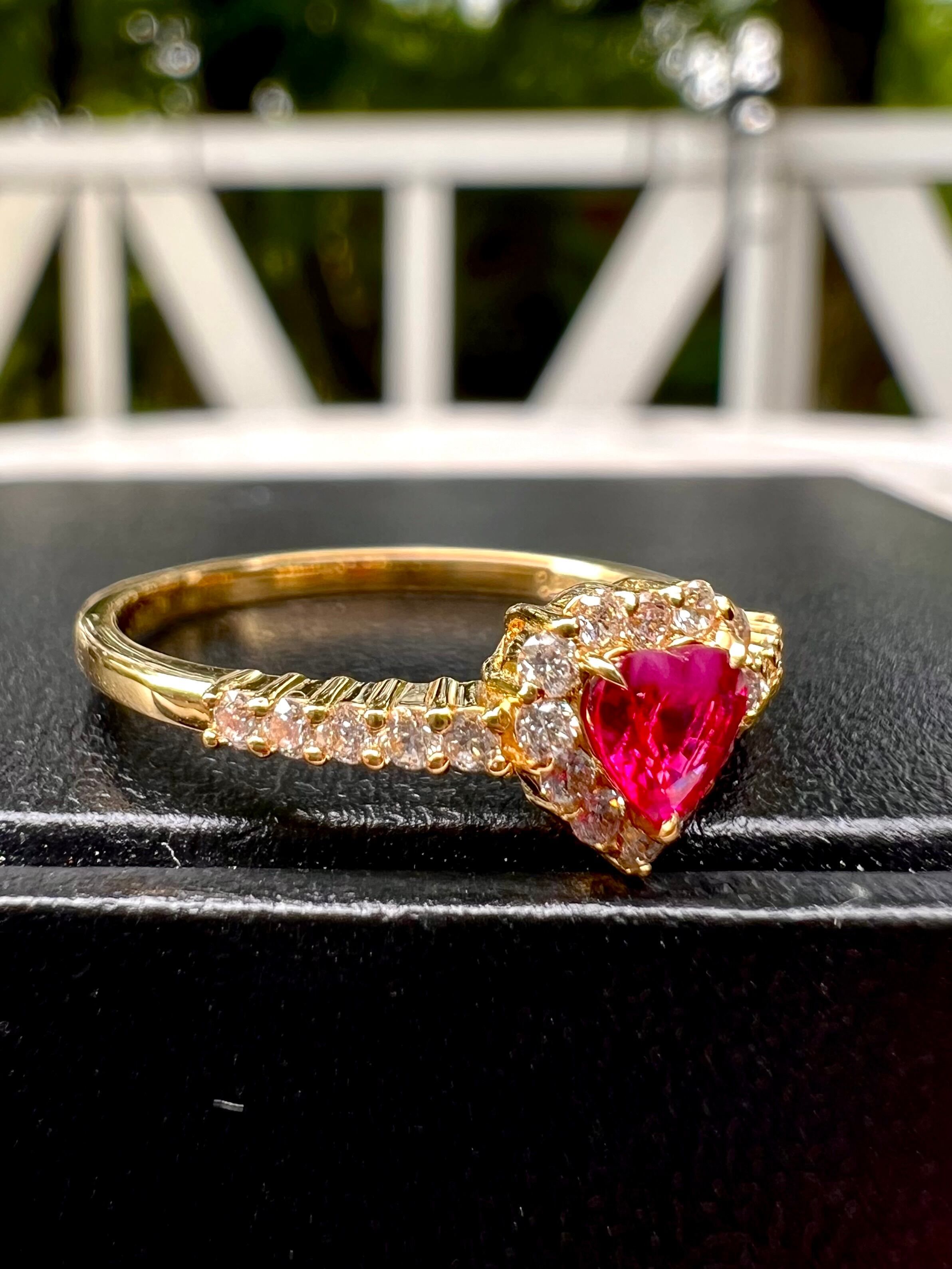 超可愛い!K18 ハートシェイプ!ルビーダイヤモンドリング JGGLソーティング付属