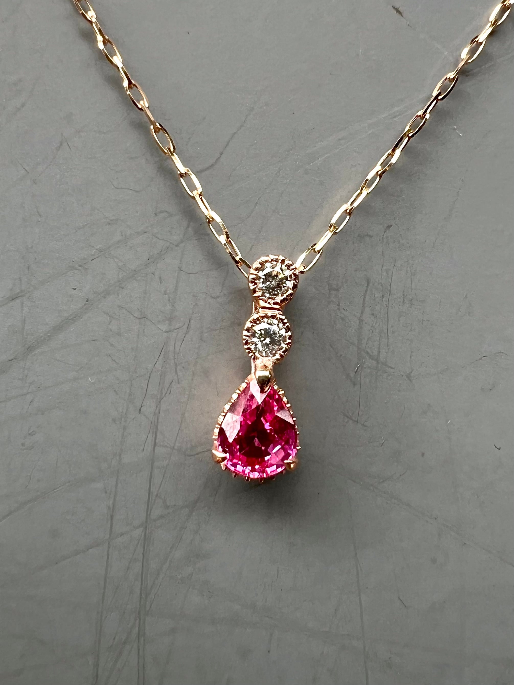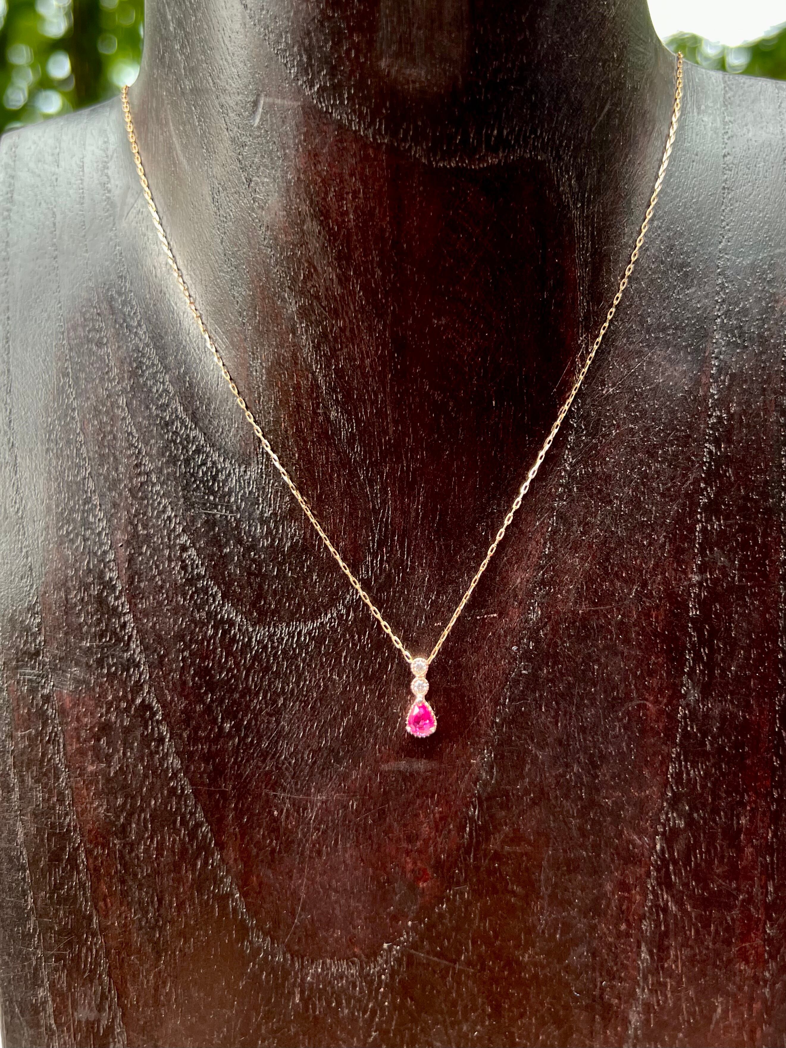 とても明るく綺麗なルビー定番ペンダントネックレスです。