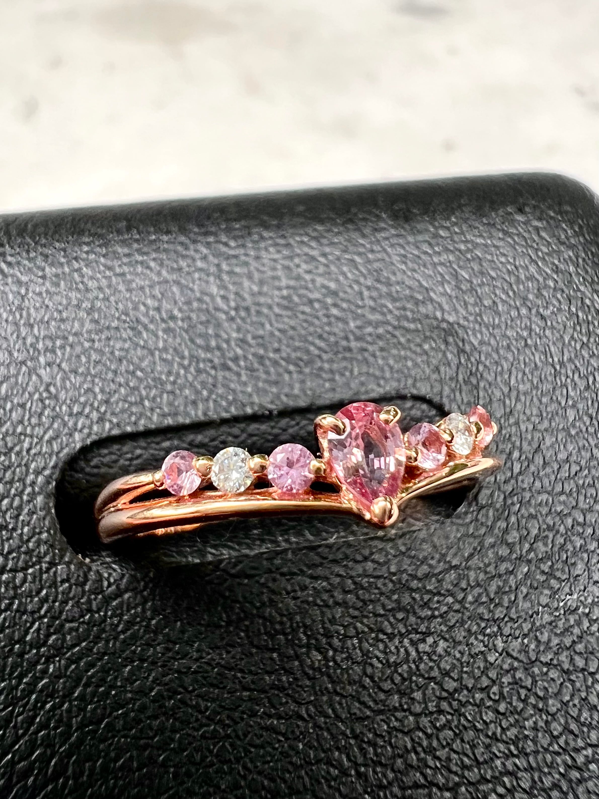ピンクサファイアとダイヤが交互に施されているのがとてもキュートでとても可愛いです。