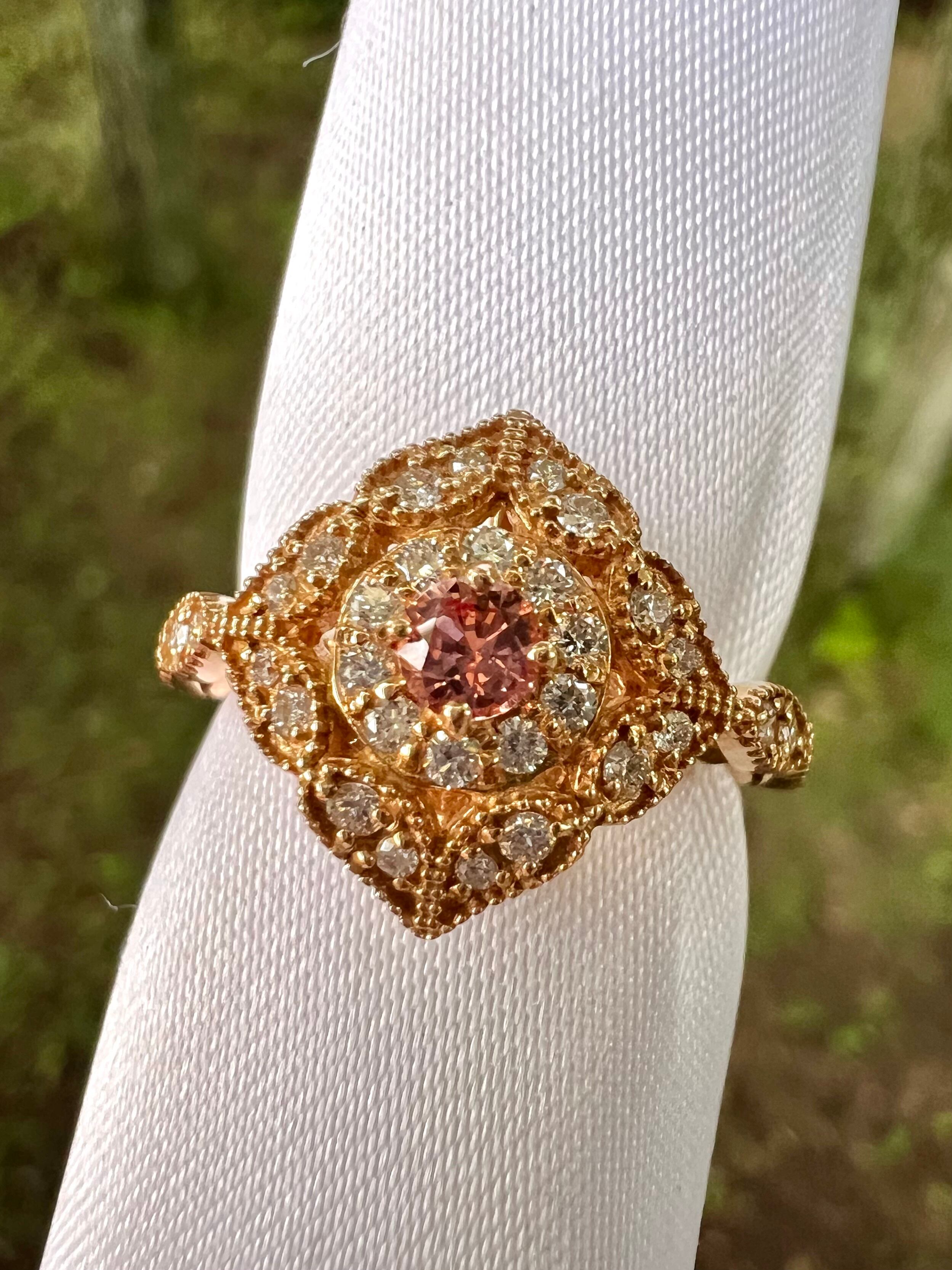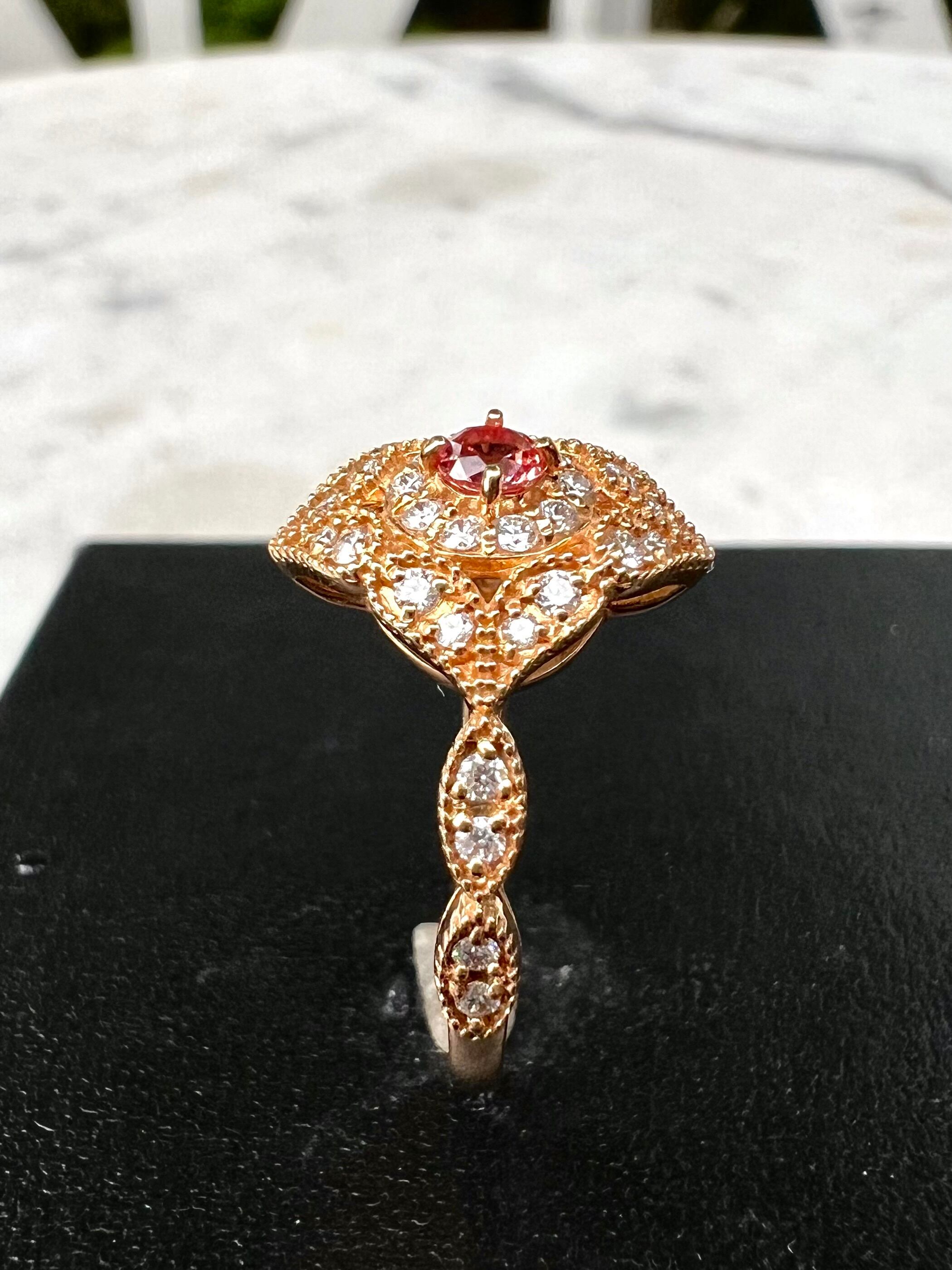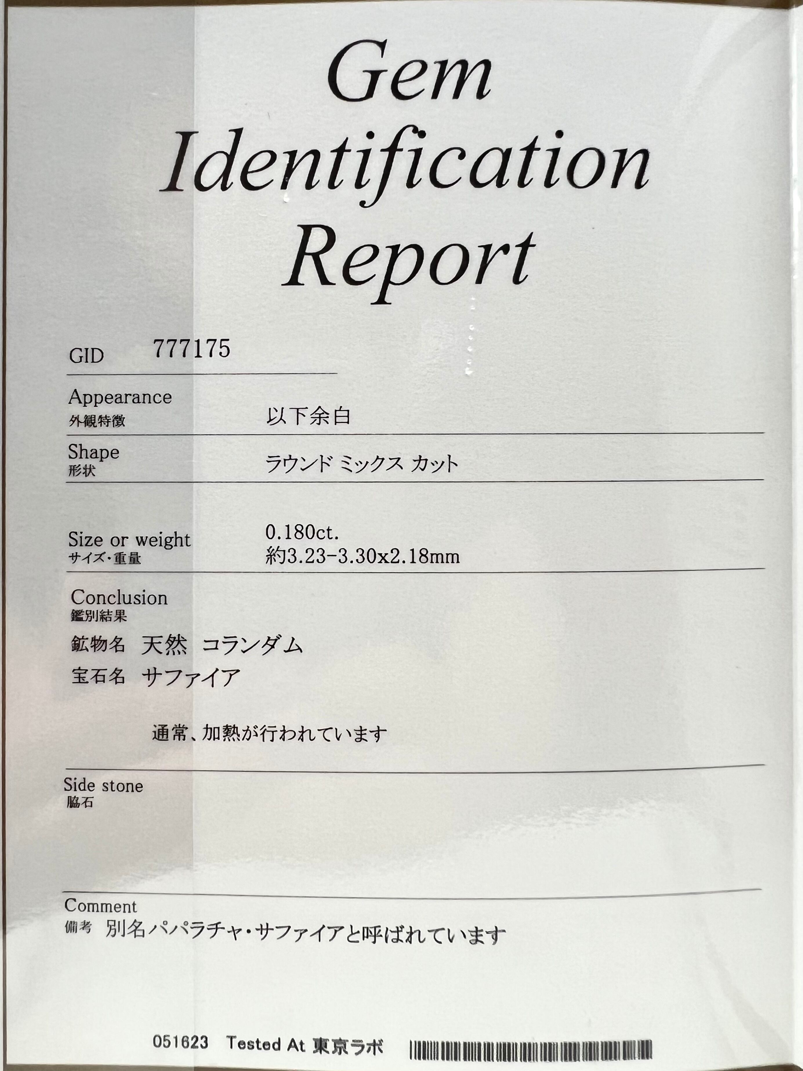 K18PG パパラチアサファイヤ ダイヤモンドリング DGL鑑別書付属