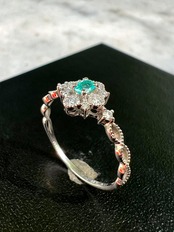 さらに腕にもミルを巻いたダイヤモンドを一石配置しミルグレインを腕に彫刻する事でアンティークとのハイブリットがオシャレなデザインリング!