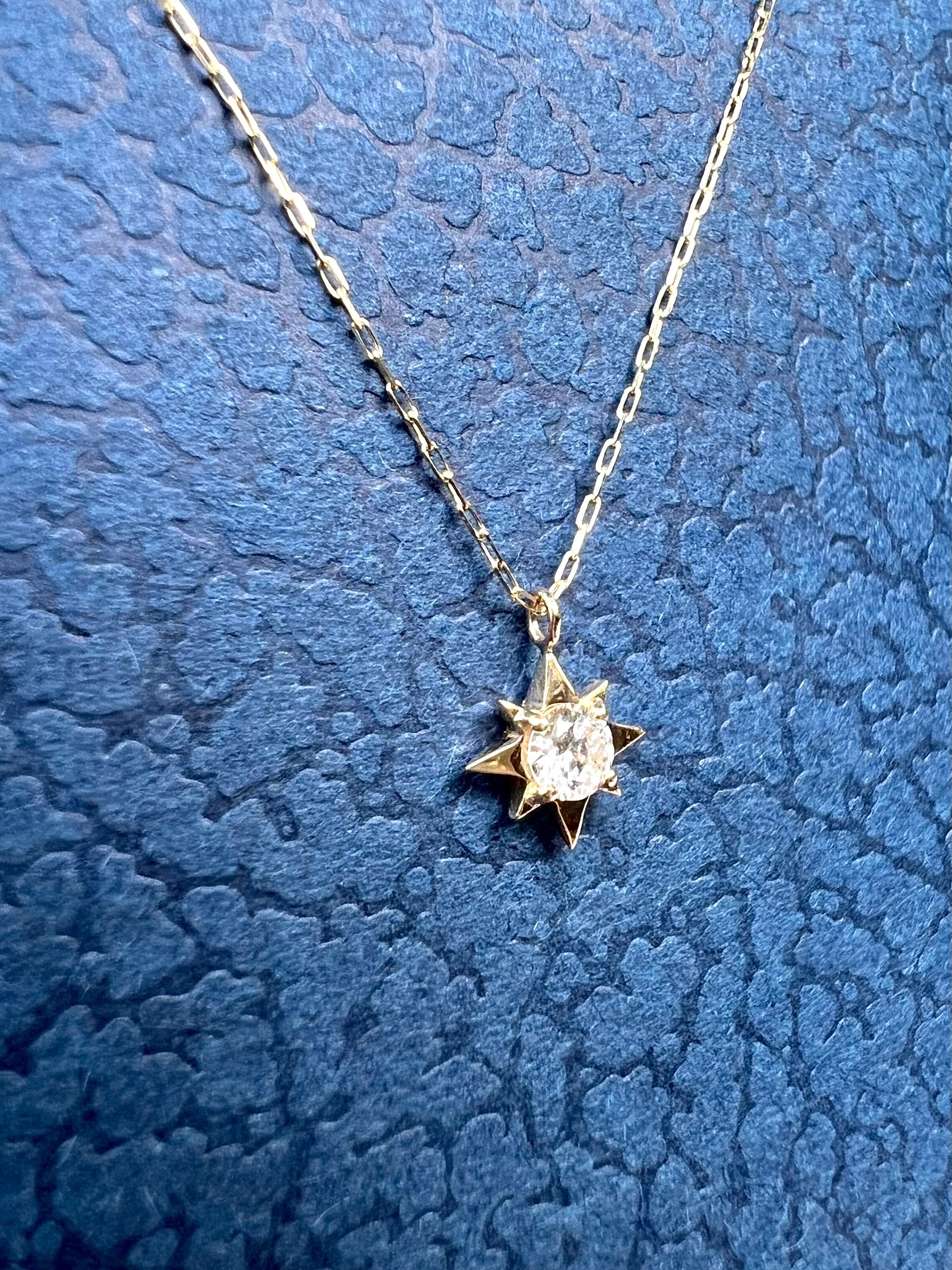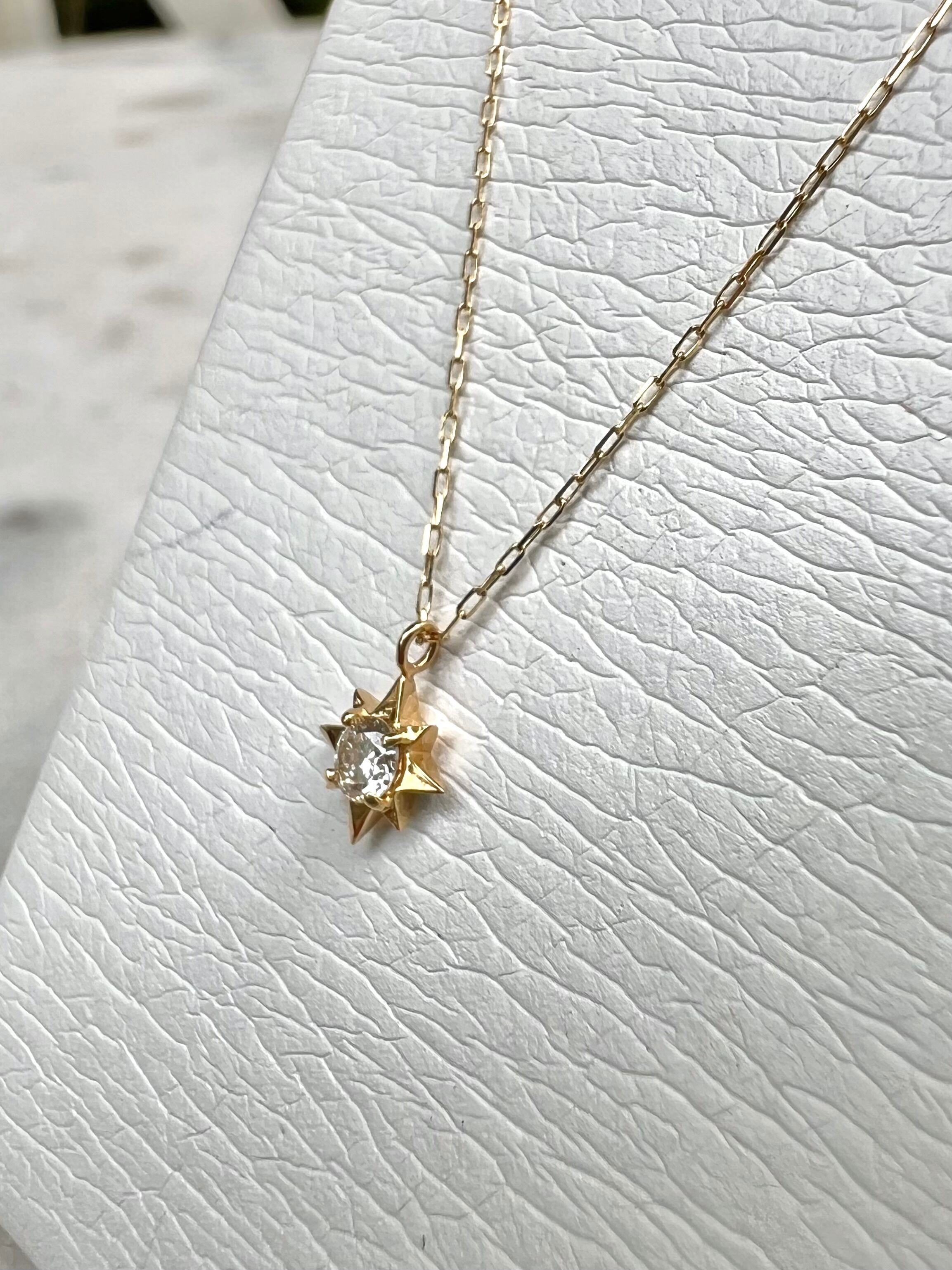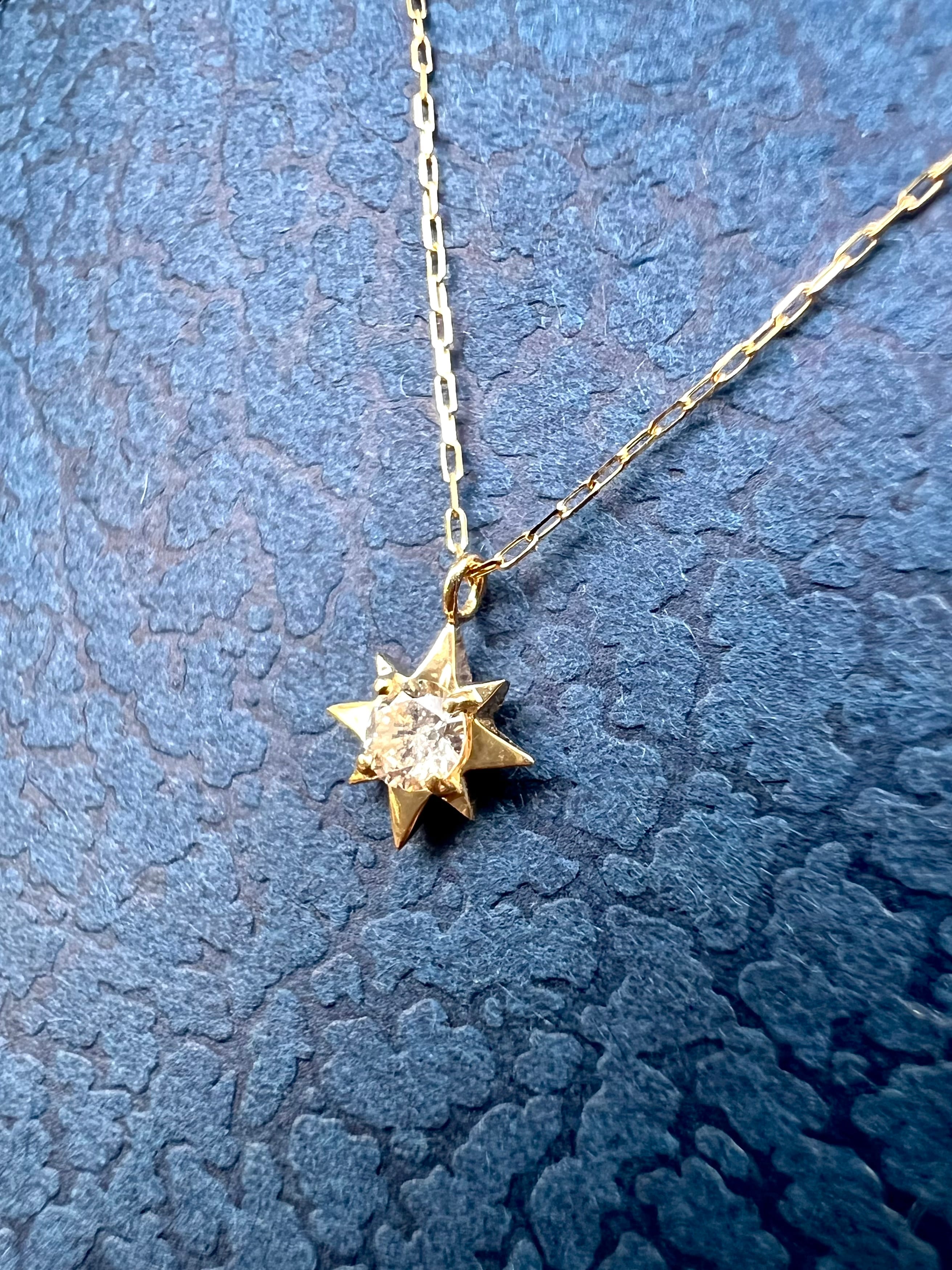 K18 可愛い星型の1p H&Cダイヤモンドネックレス