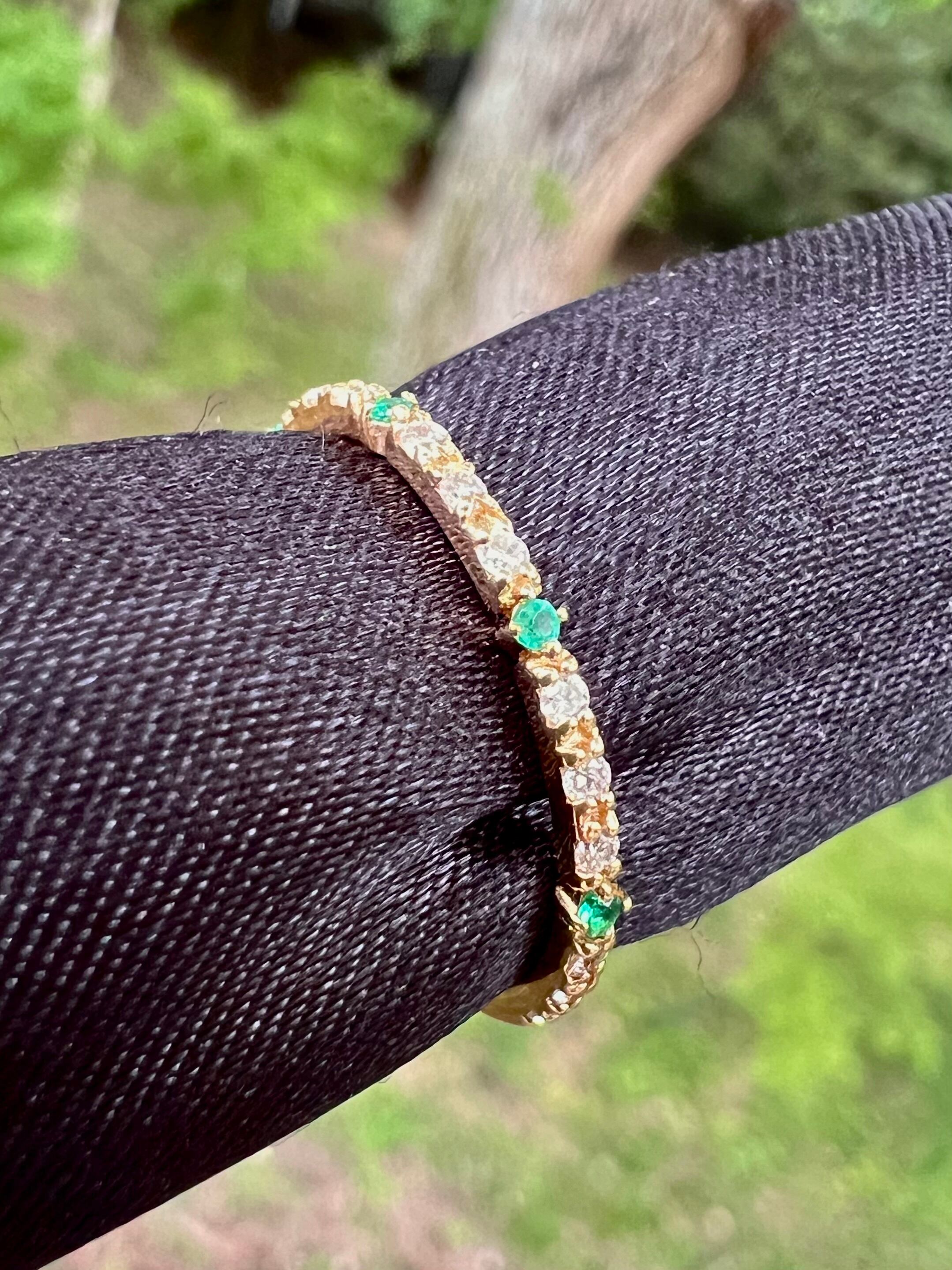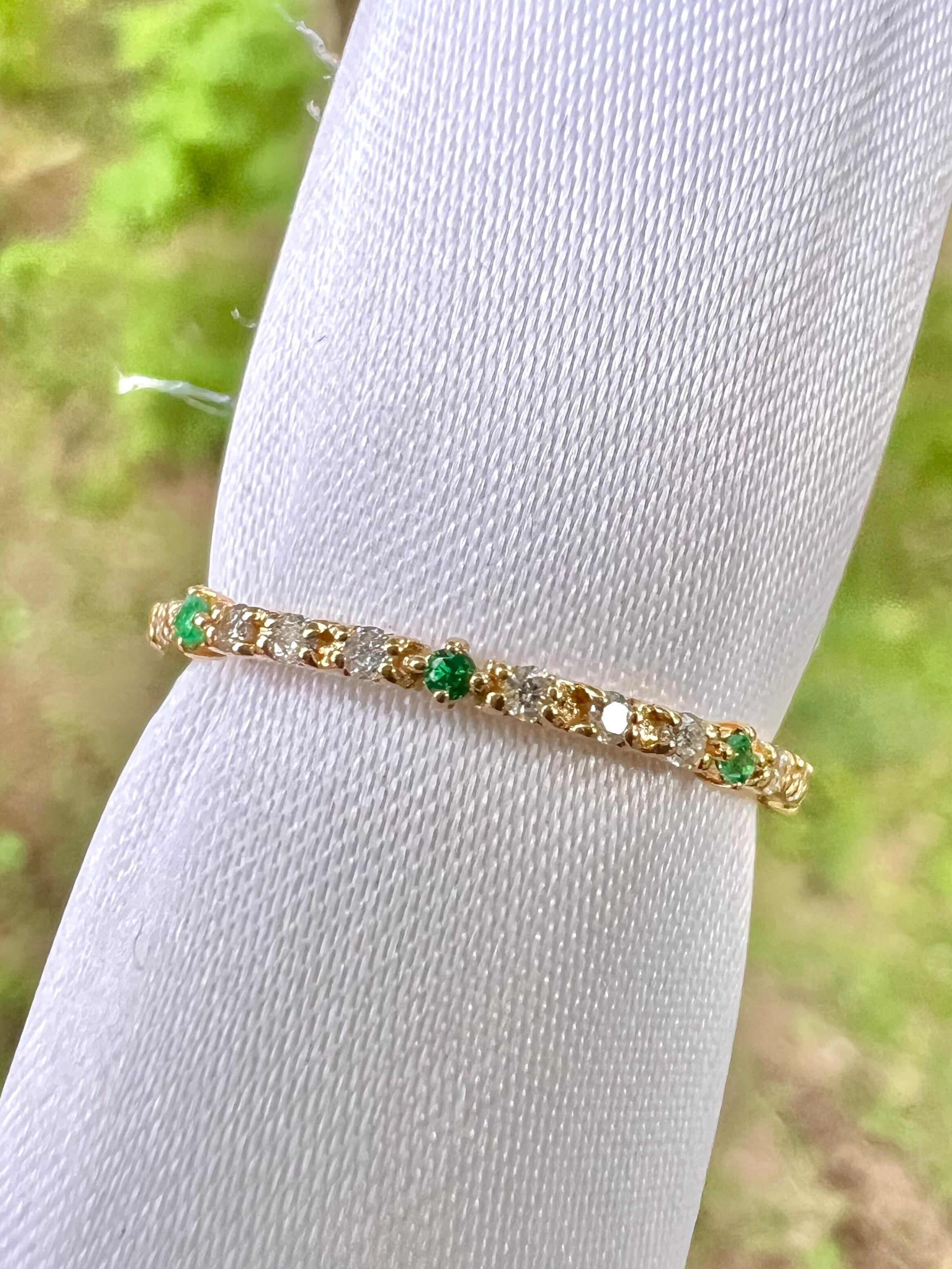 K18 エメラルドダイヤモンドハーフエタニティリング Slim