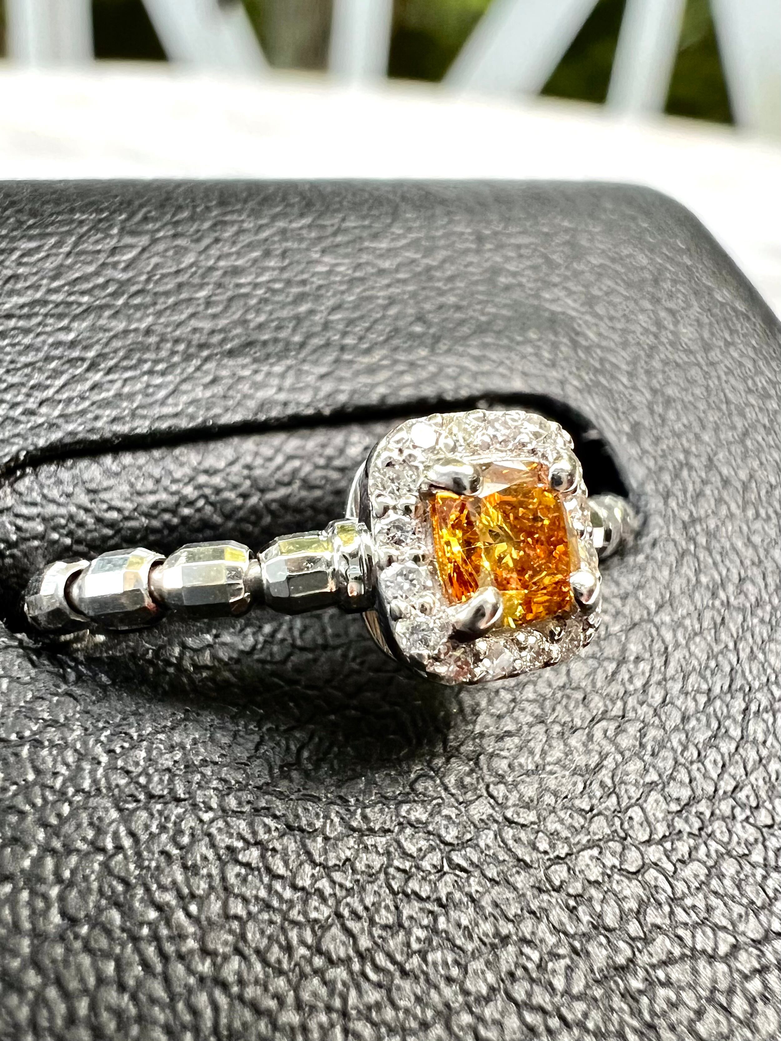 Pt950オレンジダイヤモンドのびーるリング CGL鑑定書付属