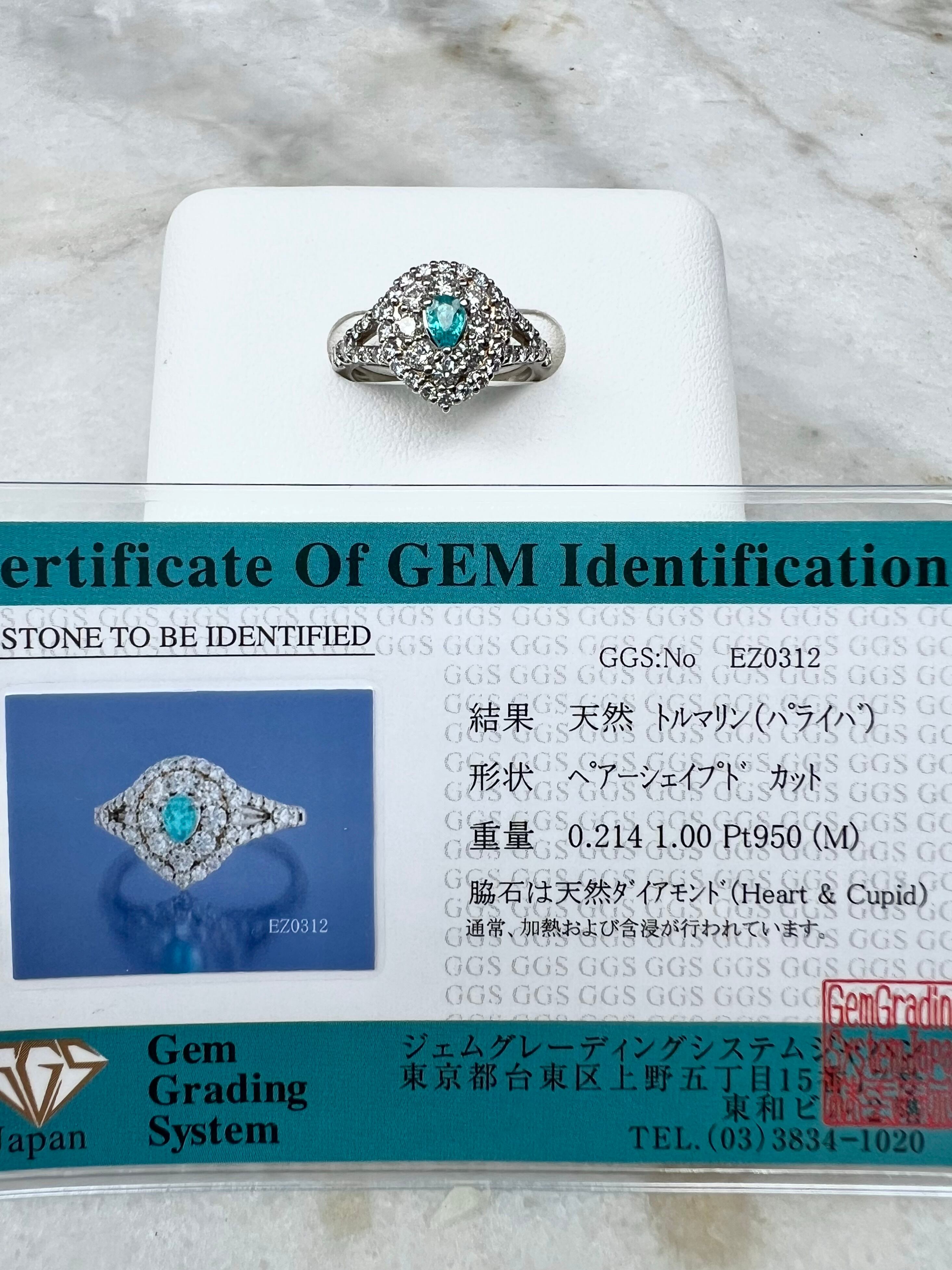 極上カラー!Pt950 パライバトルマリンH&Cダイヤモンドリング ブラジル・バターリア産