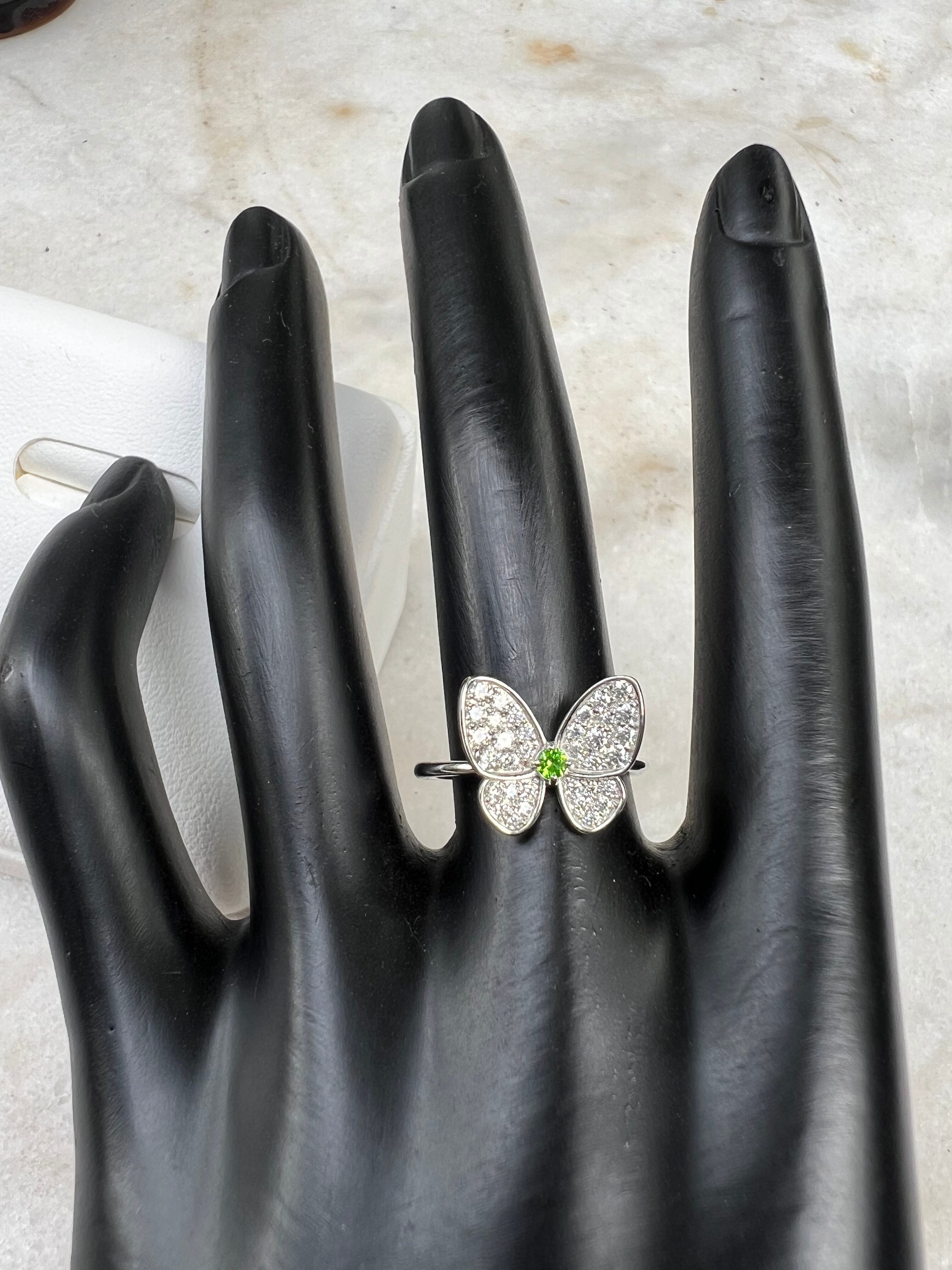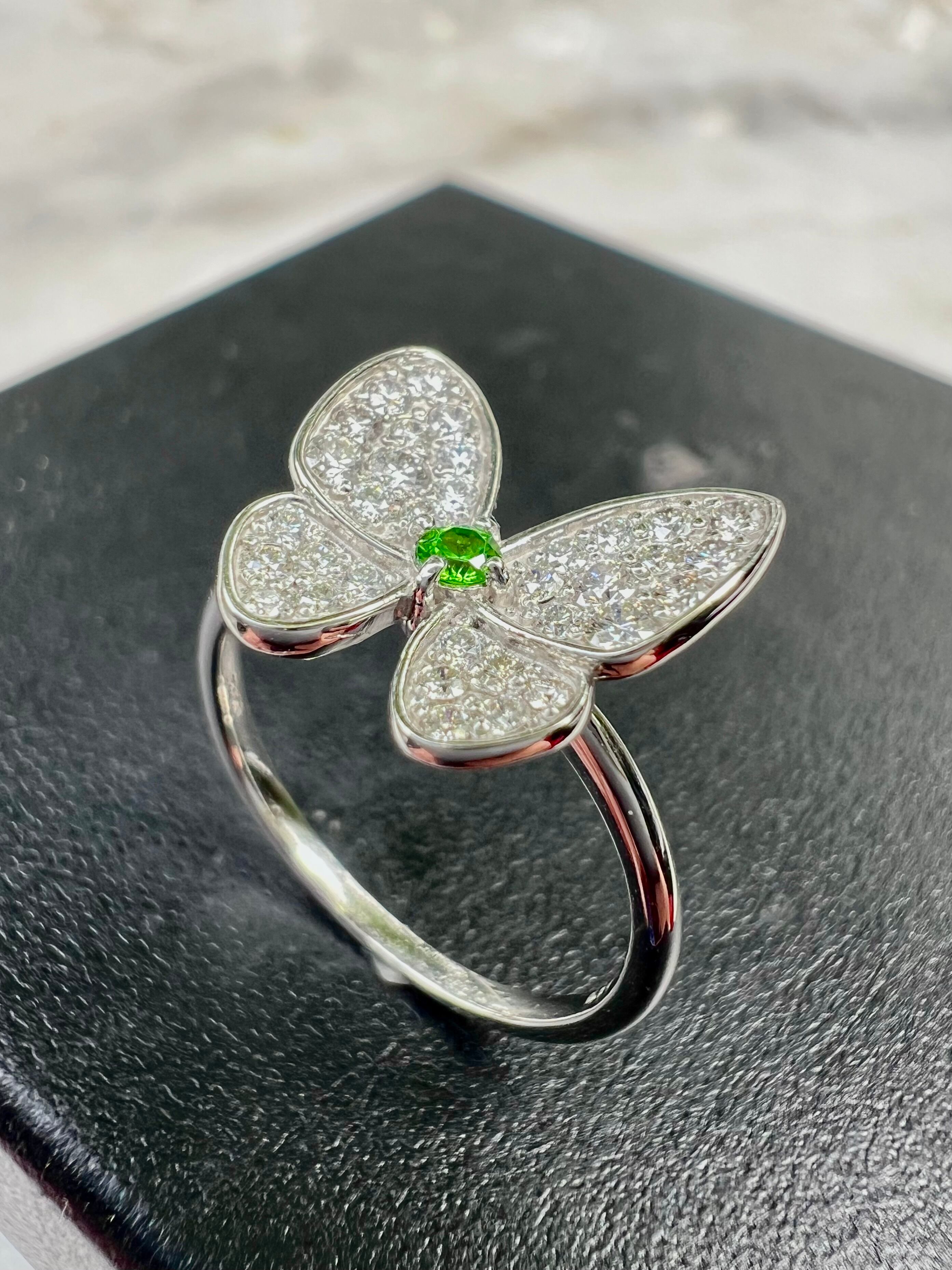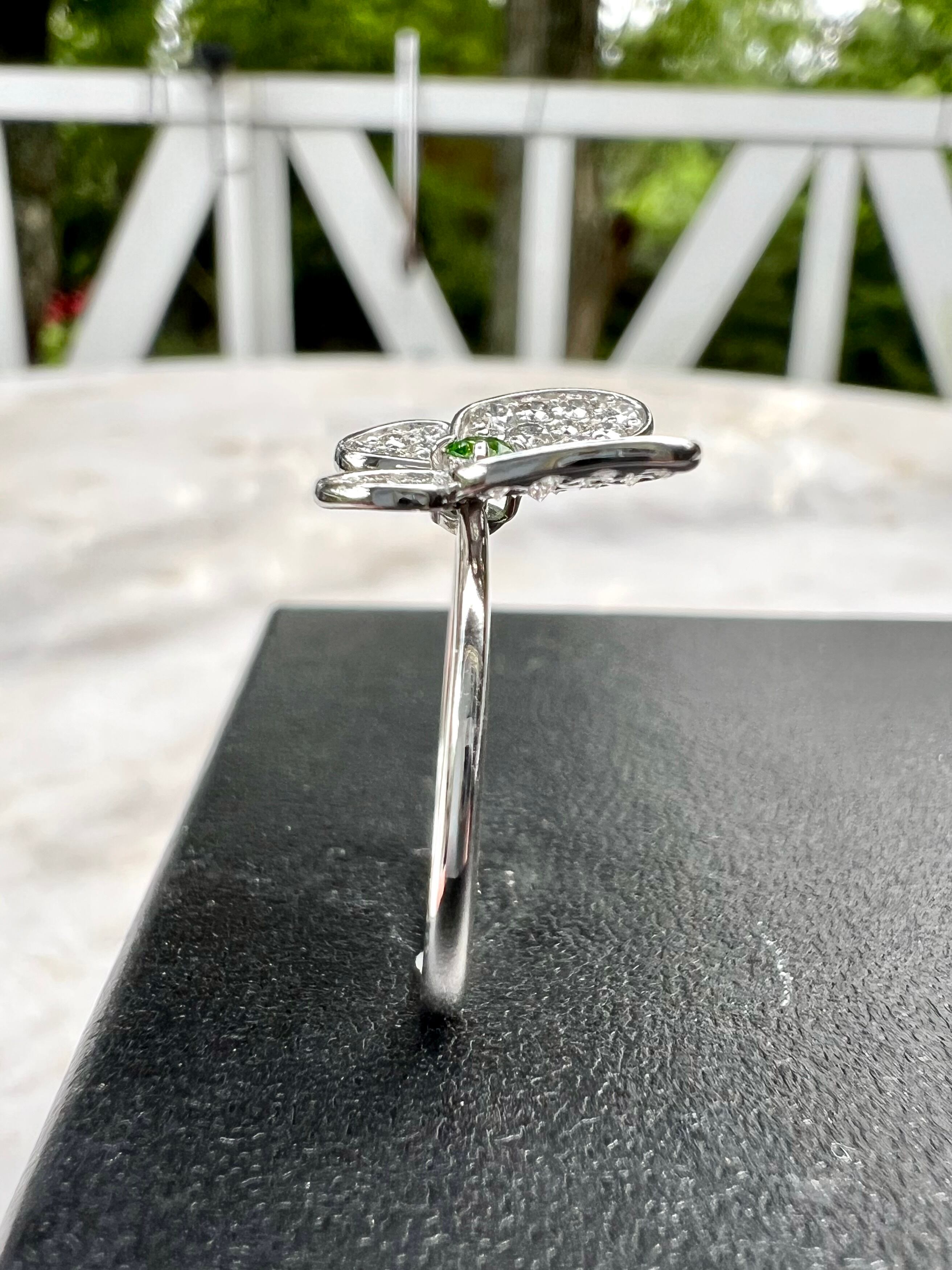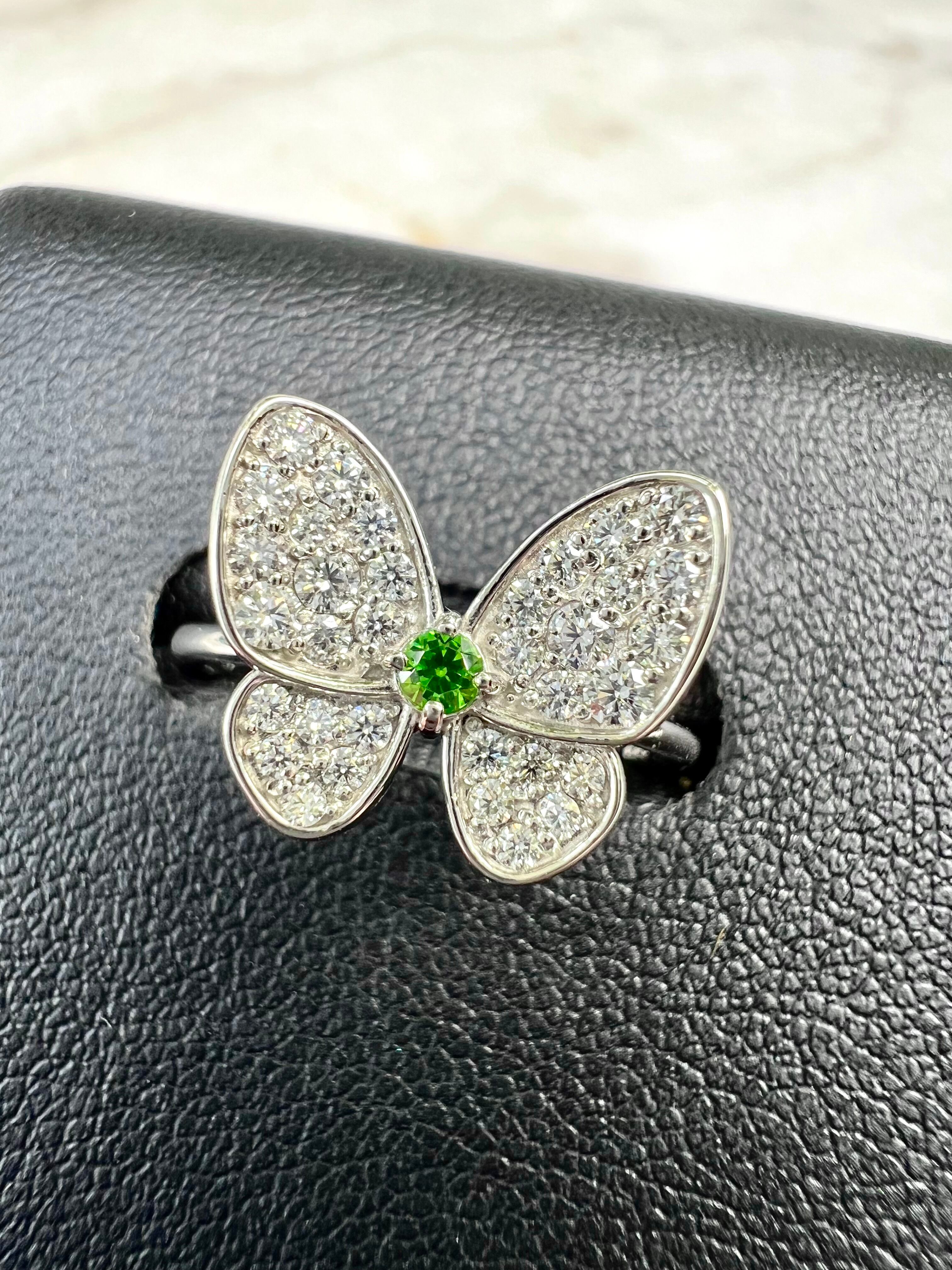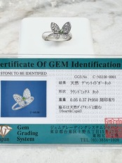 Pt950 デマントイドガーネットバタフライモチーフリング《Diamond all H&C仕様》GGS鑑別カード付属