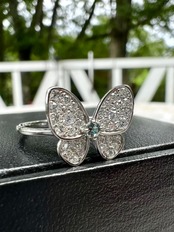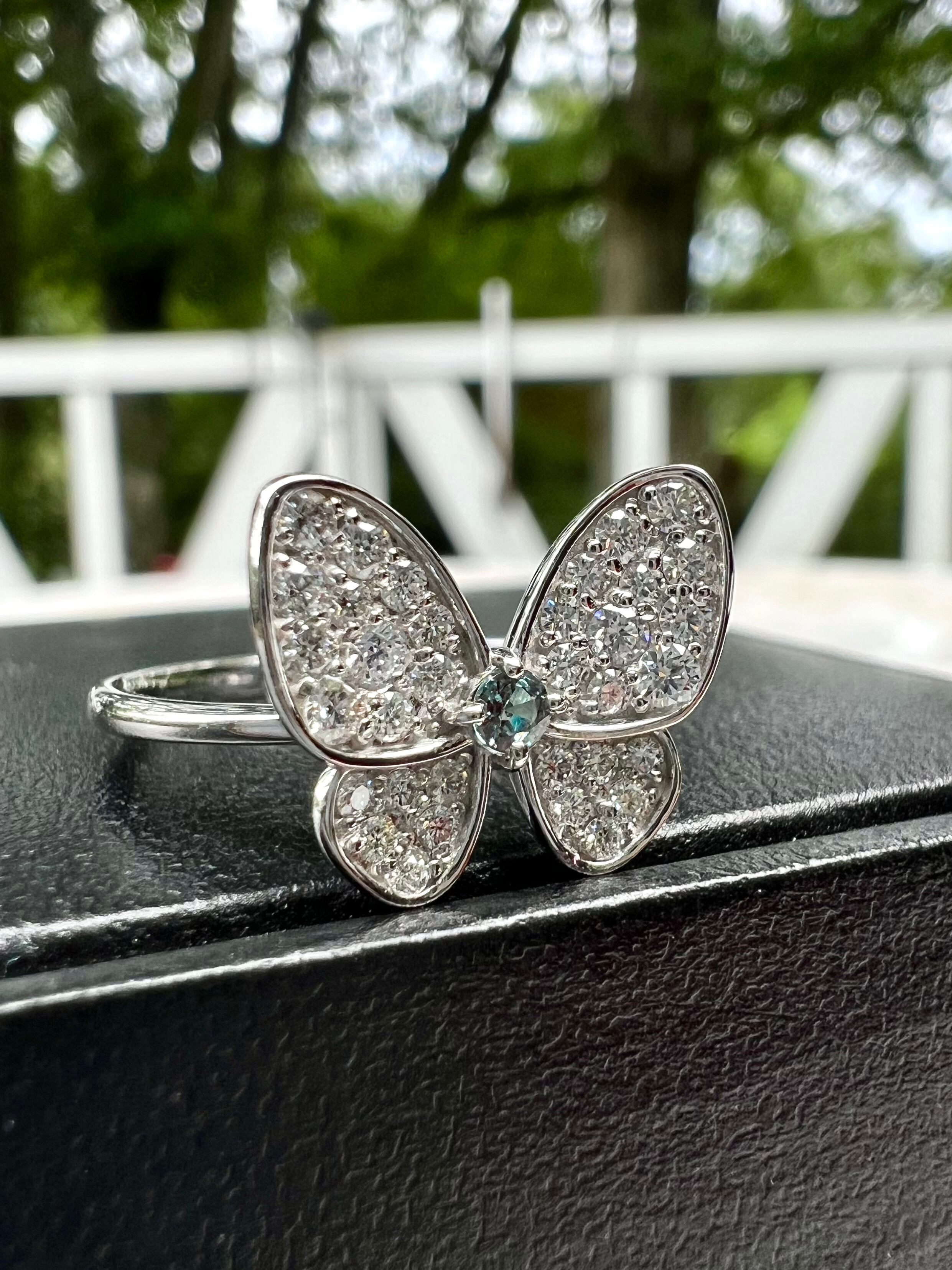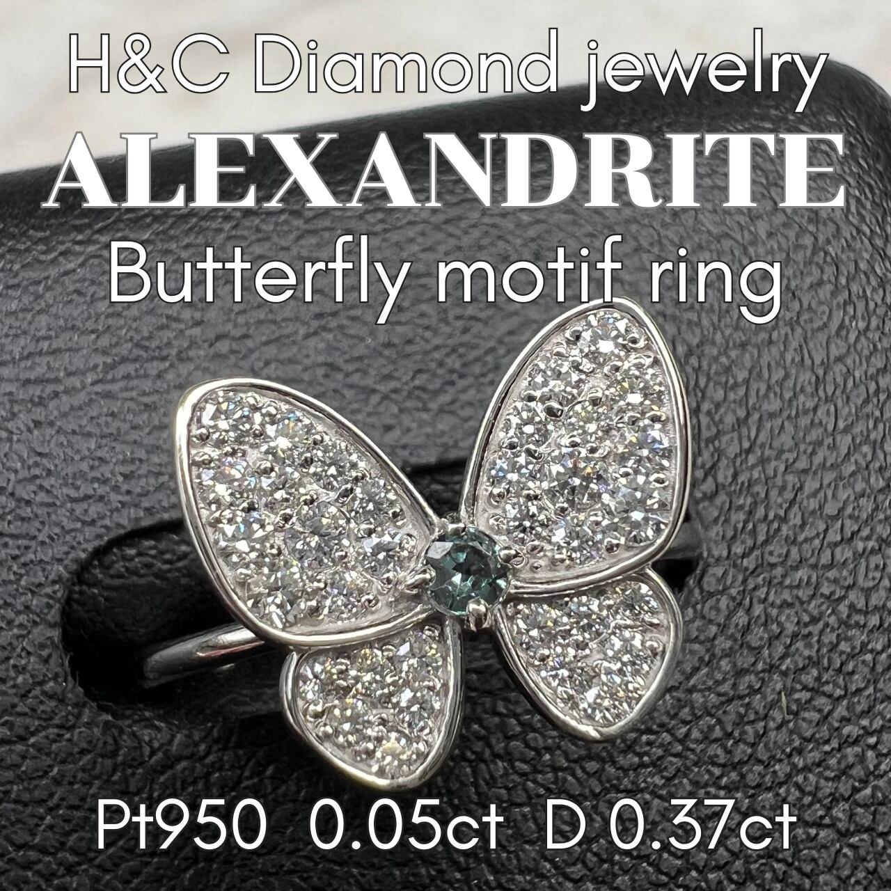 Pt950 ブラジル産アレキサンドライトバタフライモチーフリング《Diamond all H&C仕様》GGS鑑別カード付属