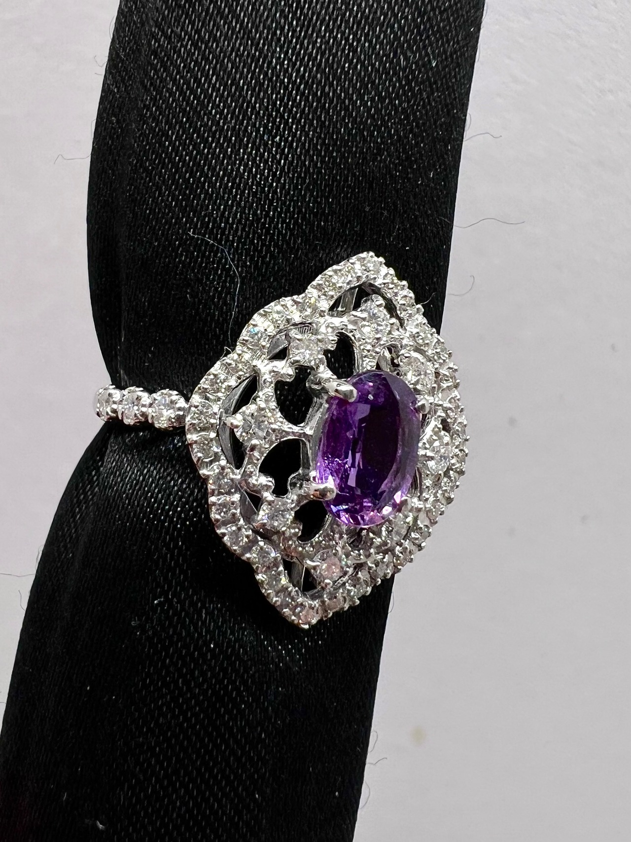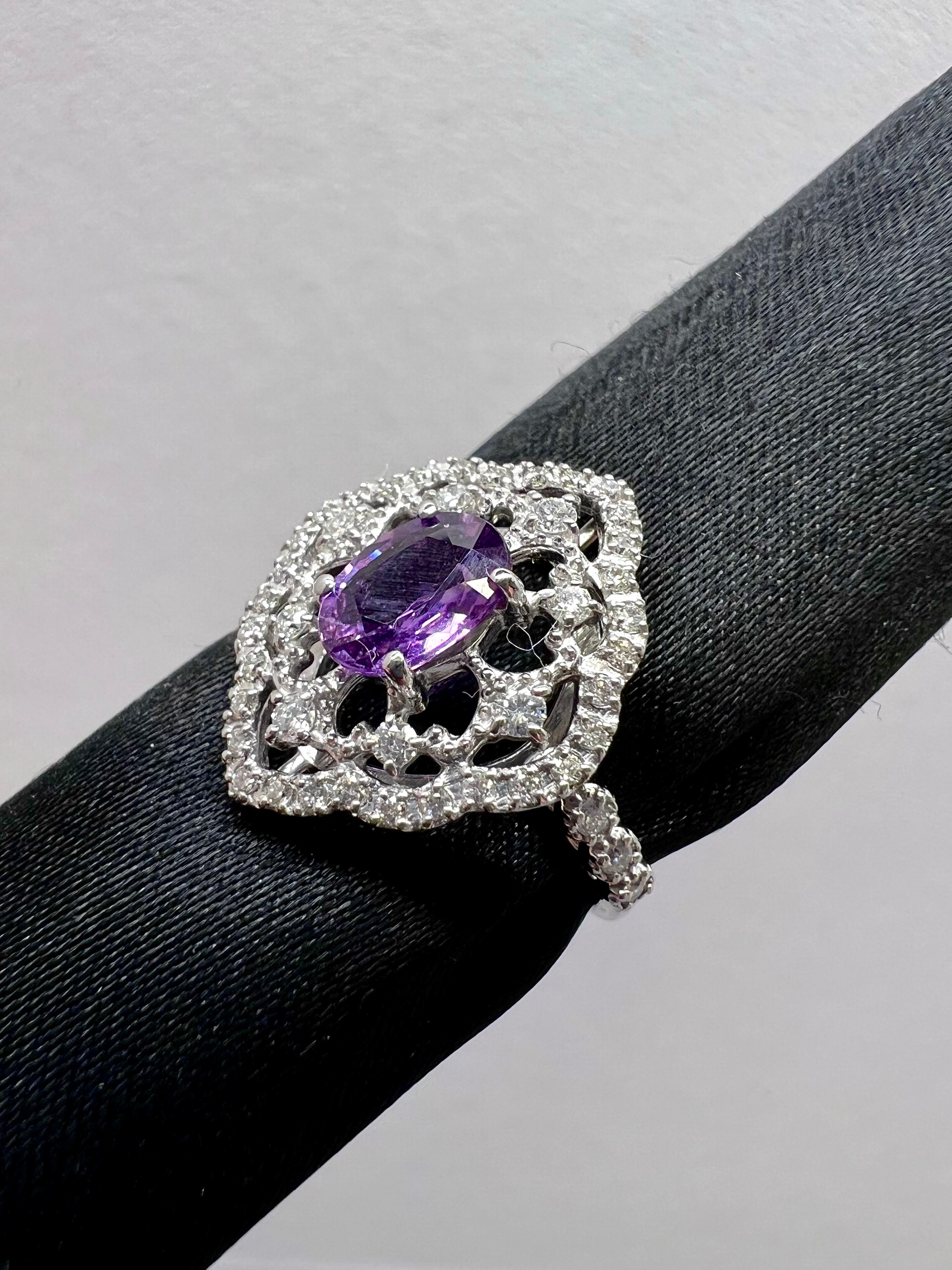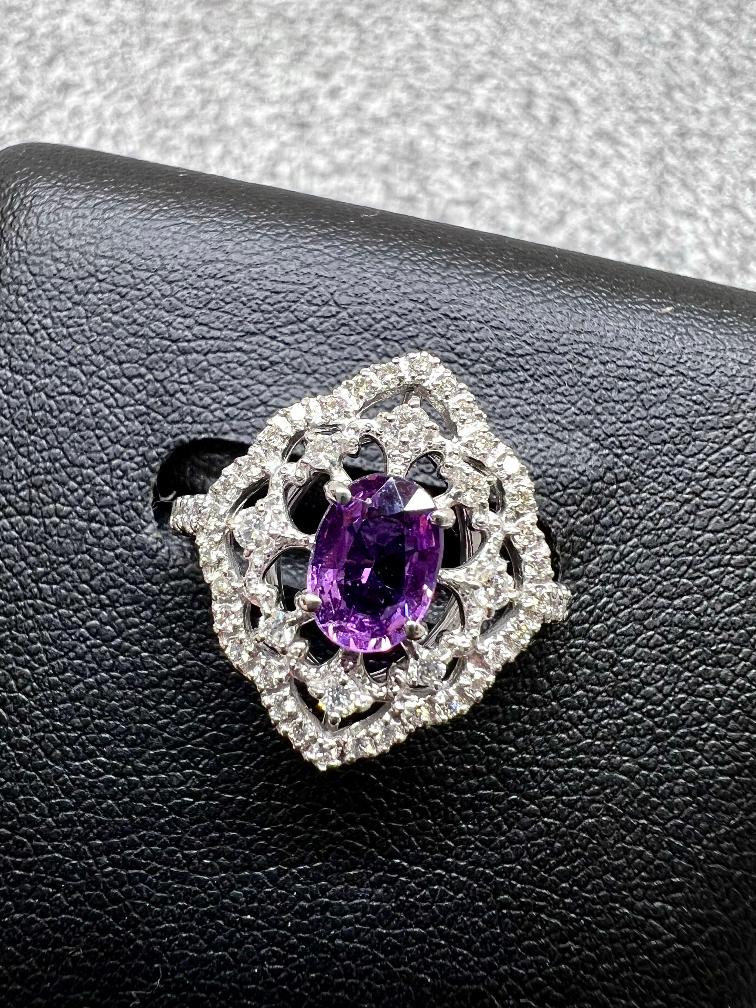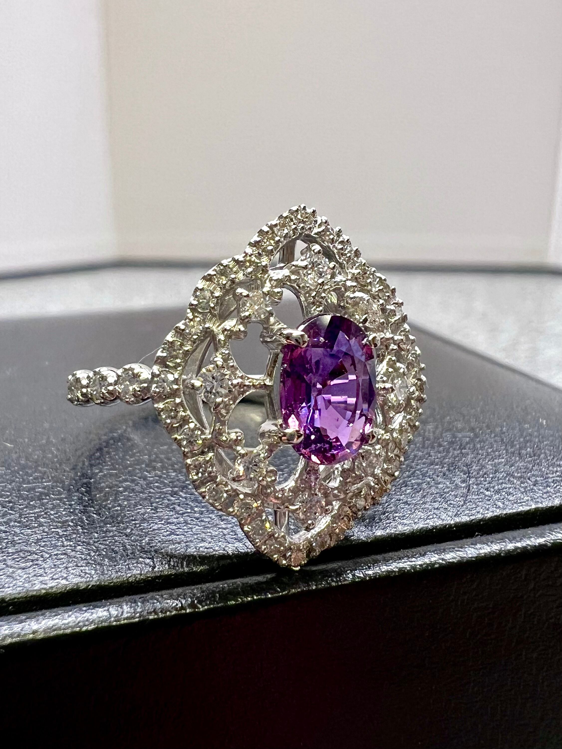 レア!Pt950非加熱ラベンダーサファイヤダイヤモンドリング(UVタイプ)AIGS鑑別書付属