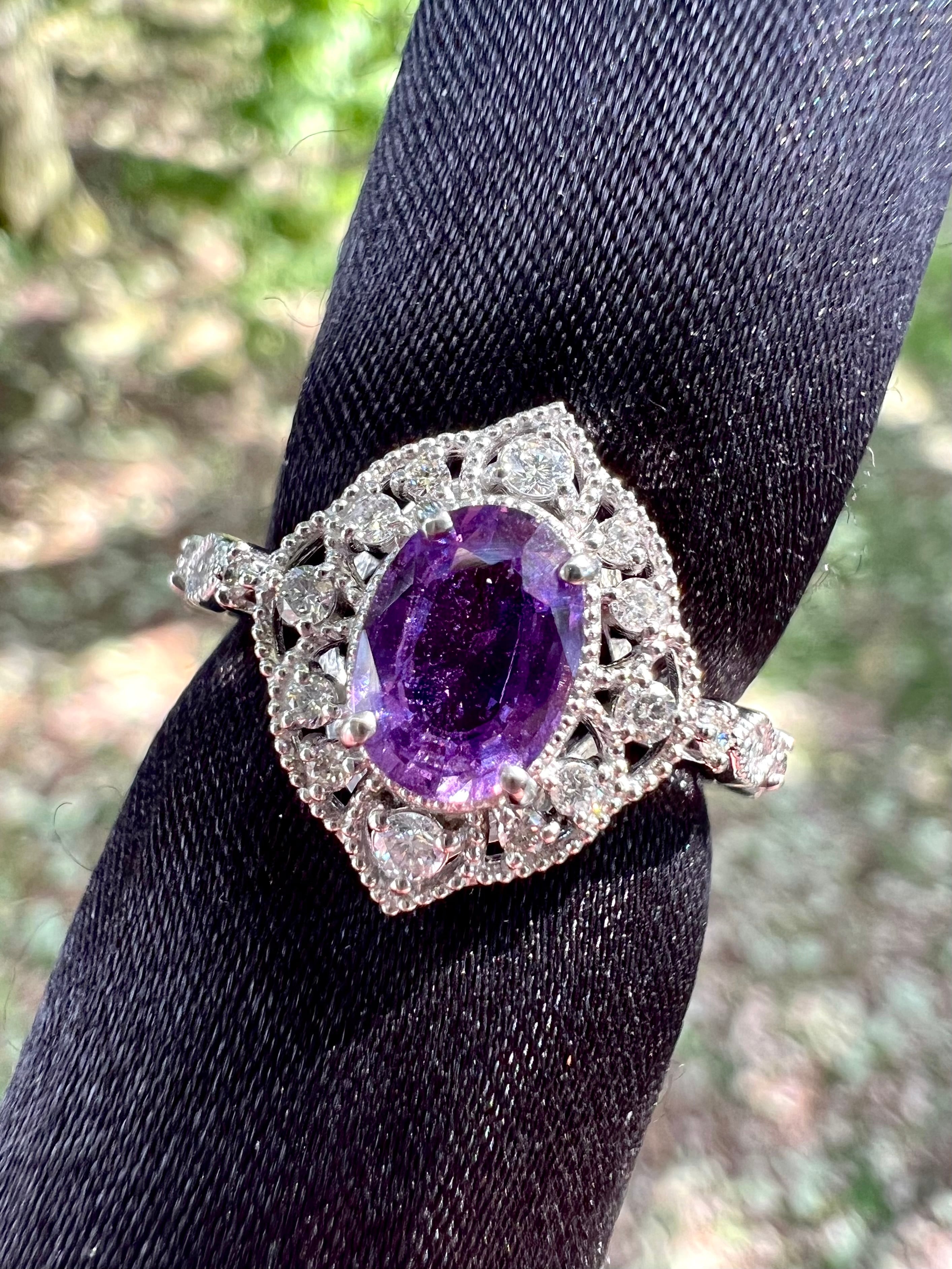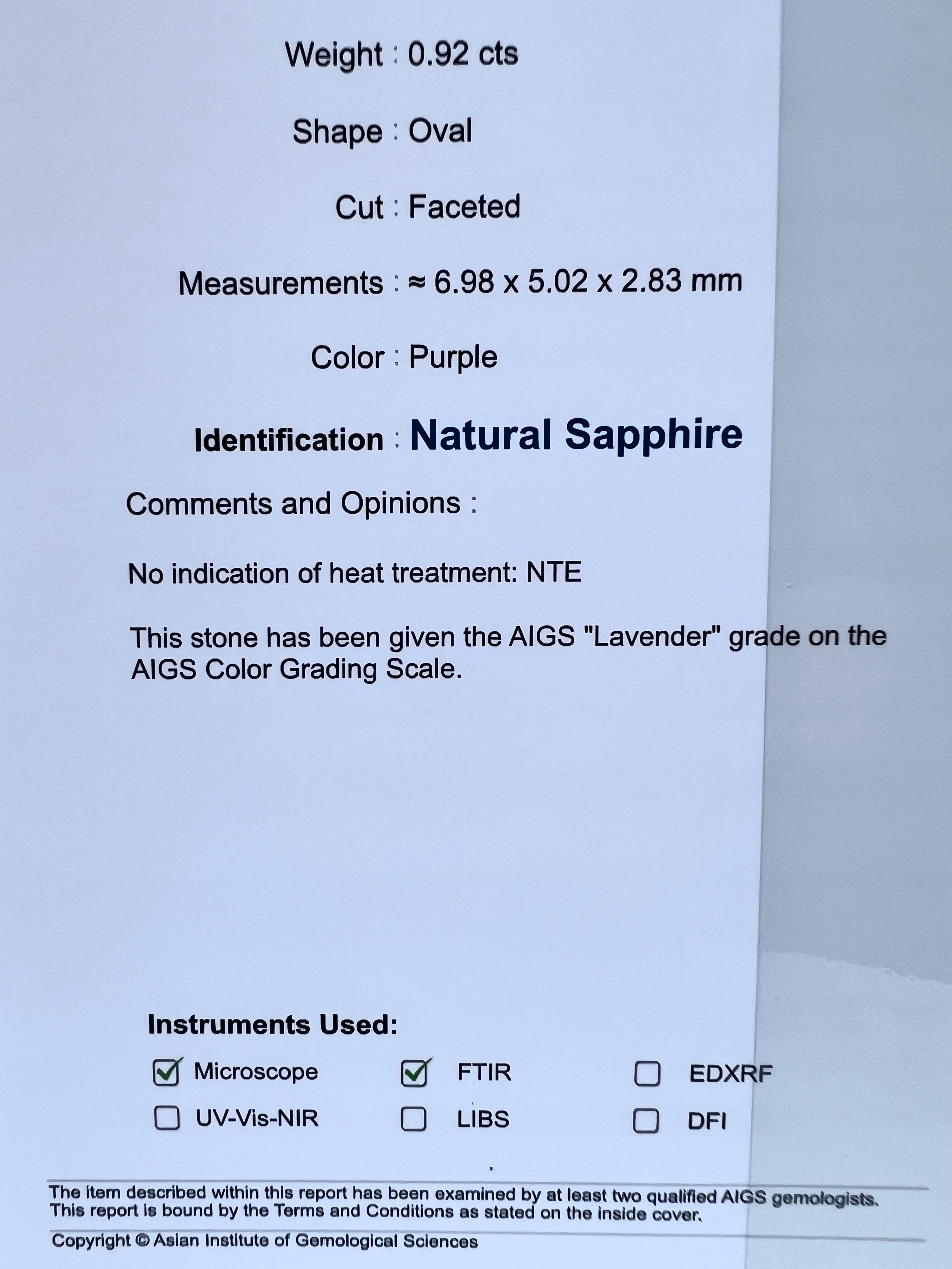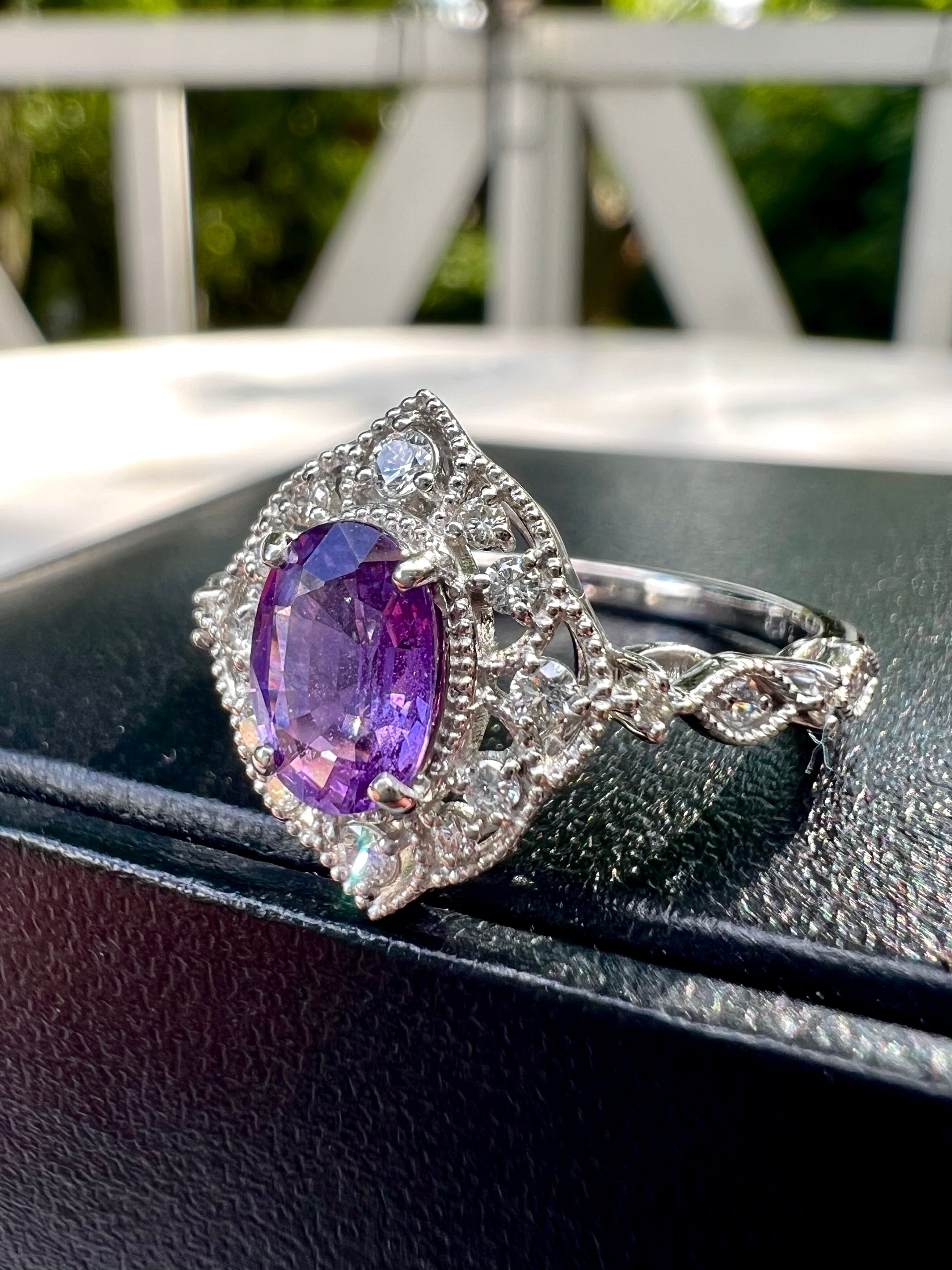 レア!Pt950非加熱ラベンダーサファイヤダイヤモンドリング(UVタイプ)AIGS鑑別書付属