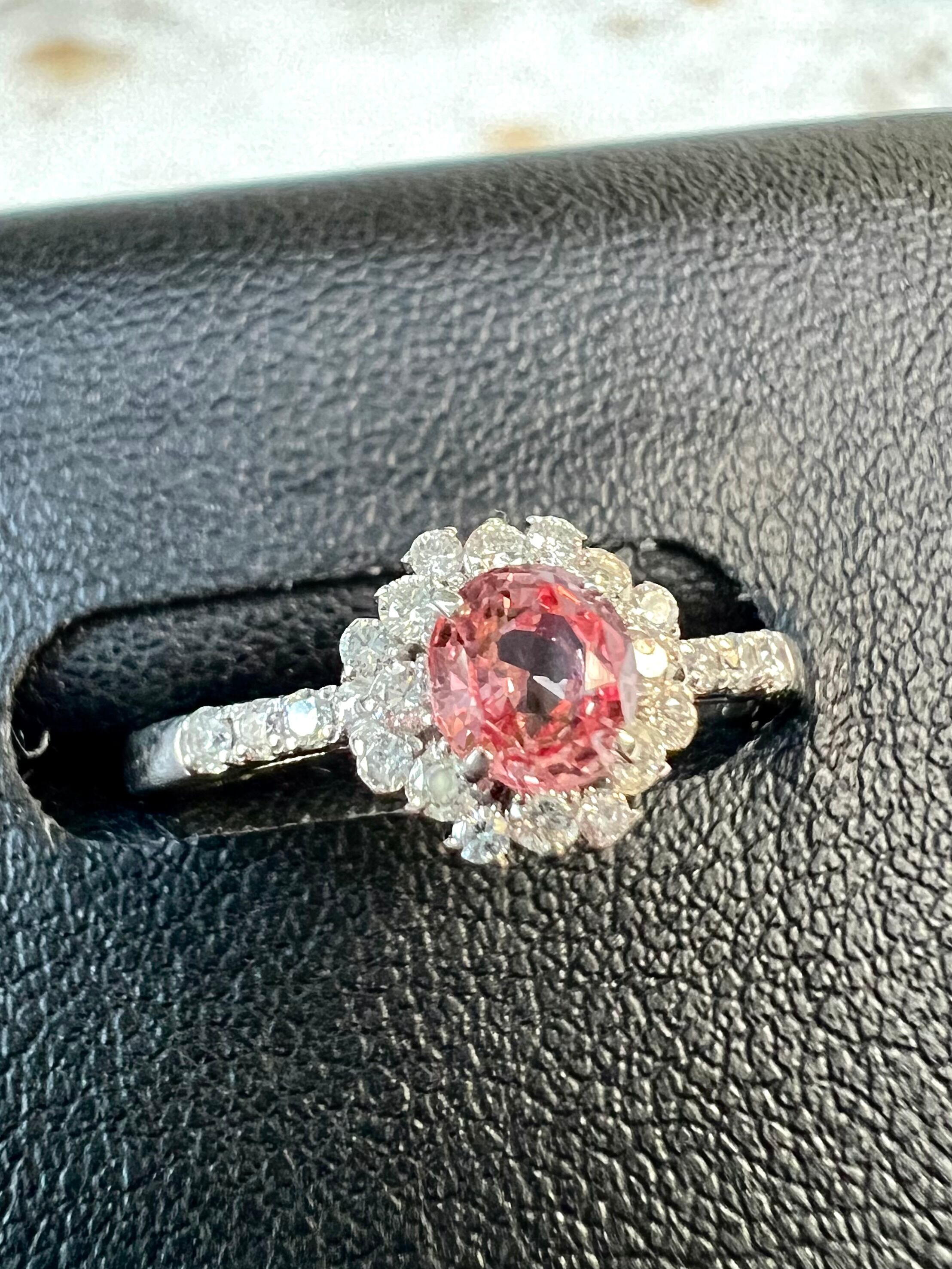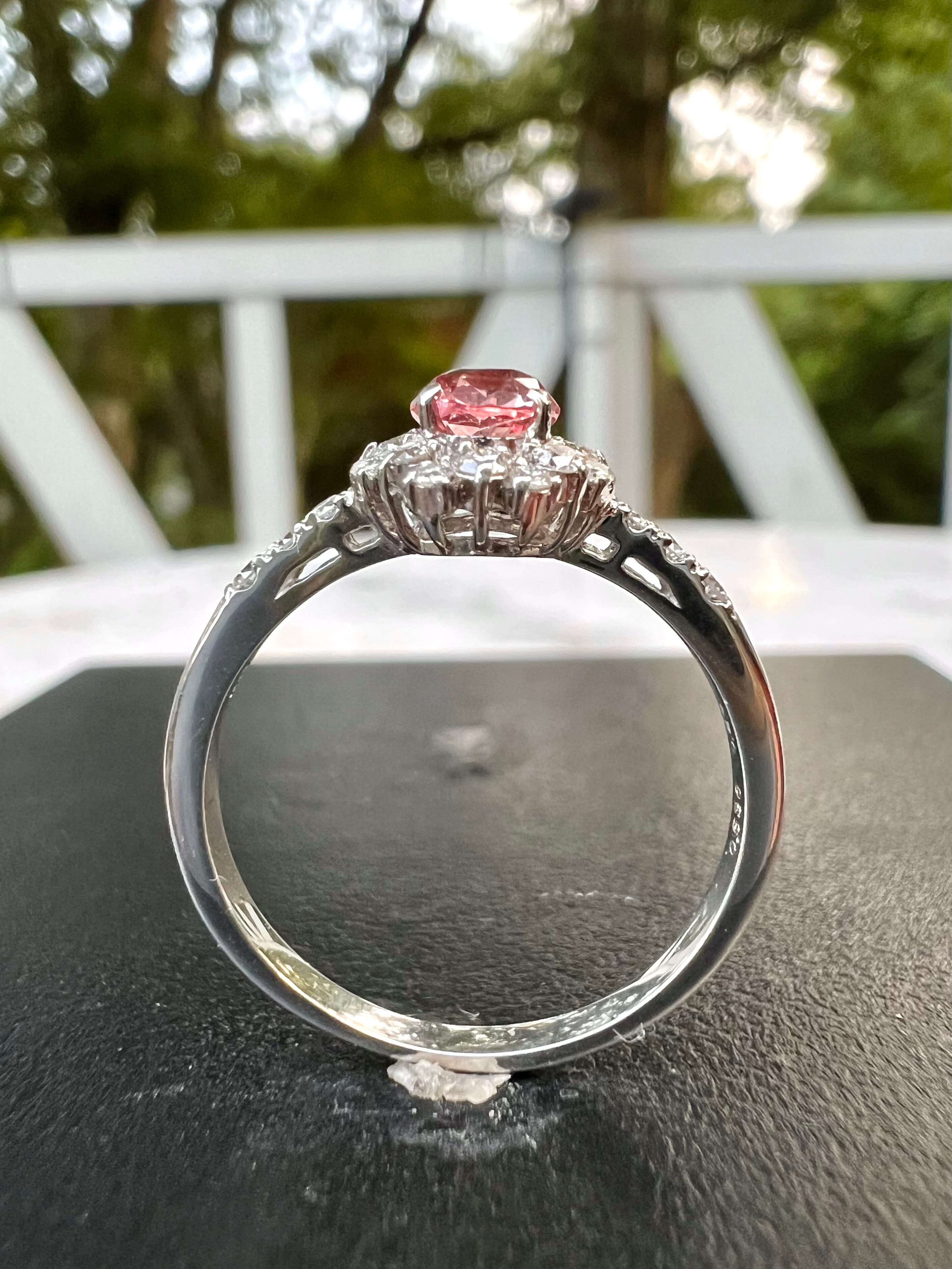 テリツヤ抜群!非加熱パパラチアサファイヤ Pt950ダイヤモンドリング CGL鑑別書付属