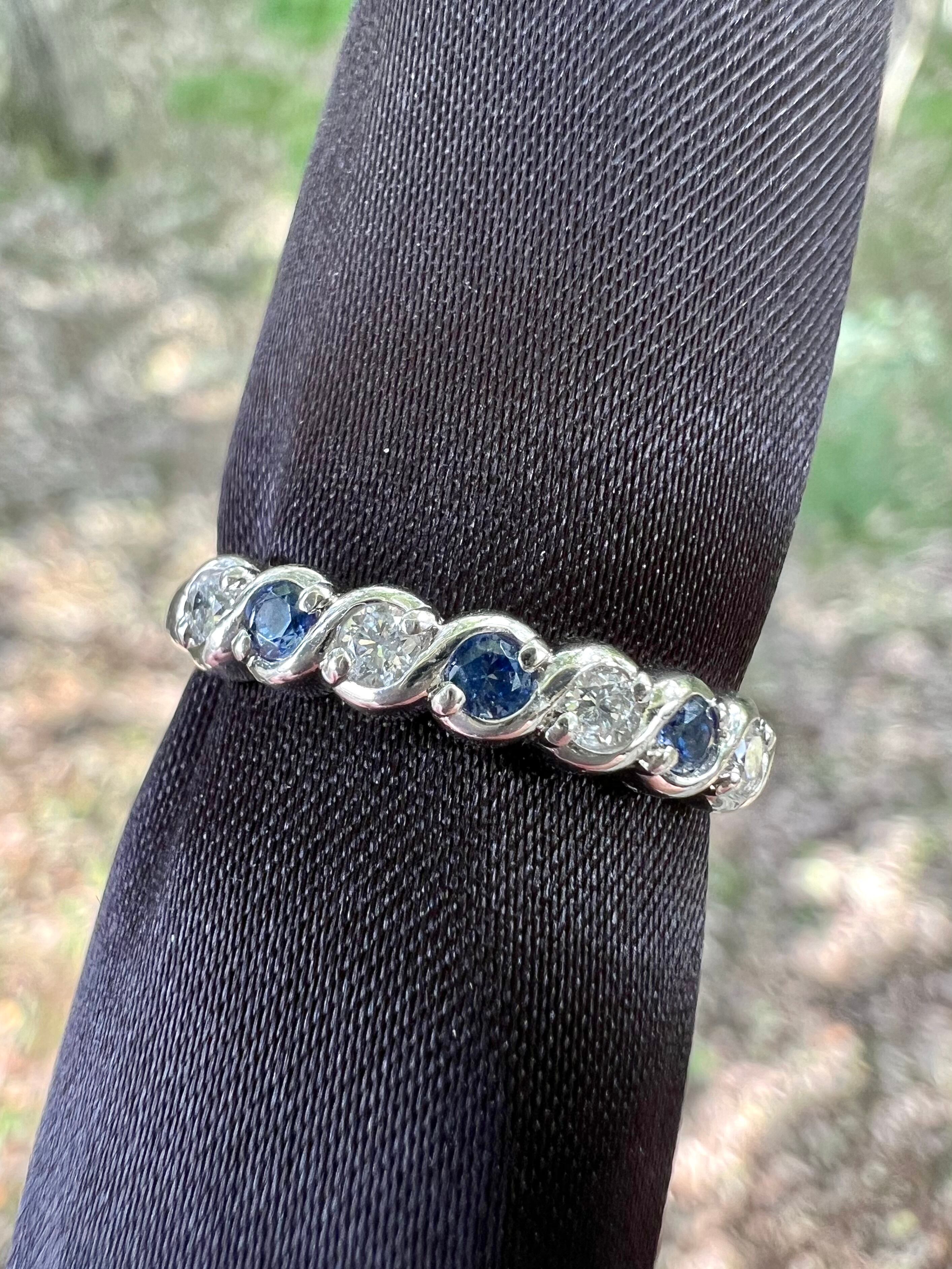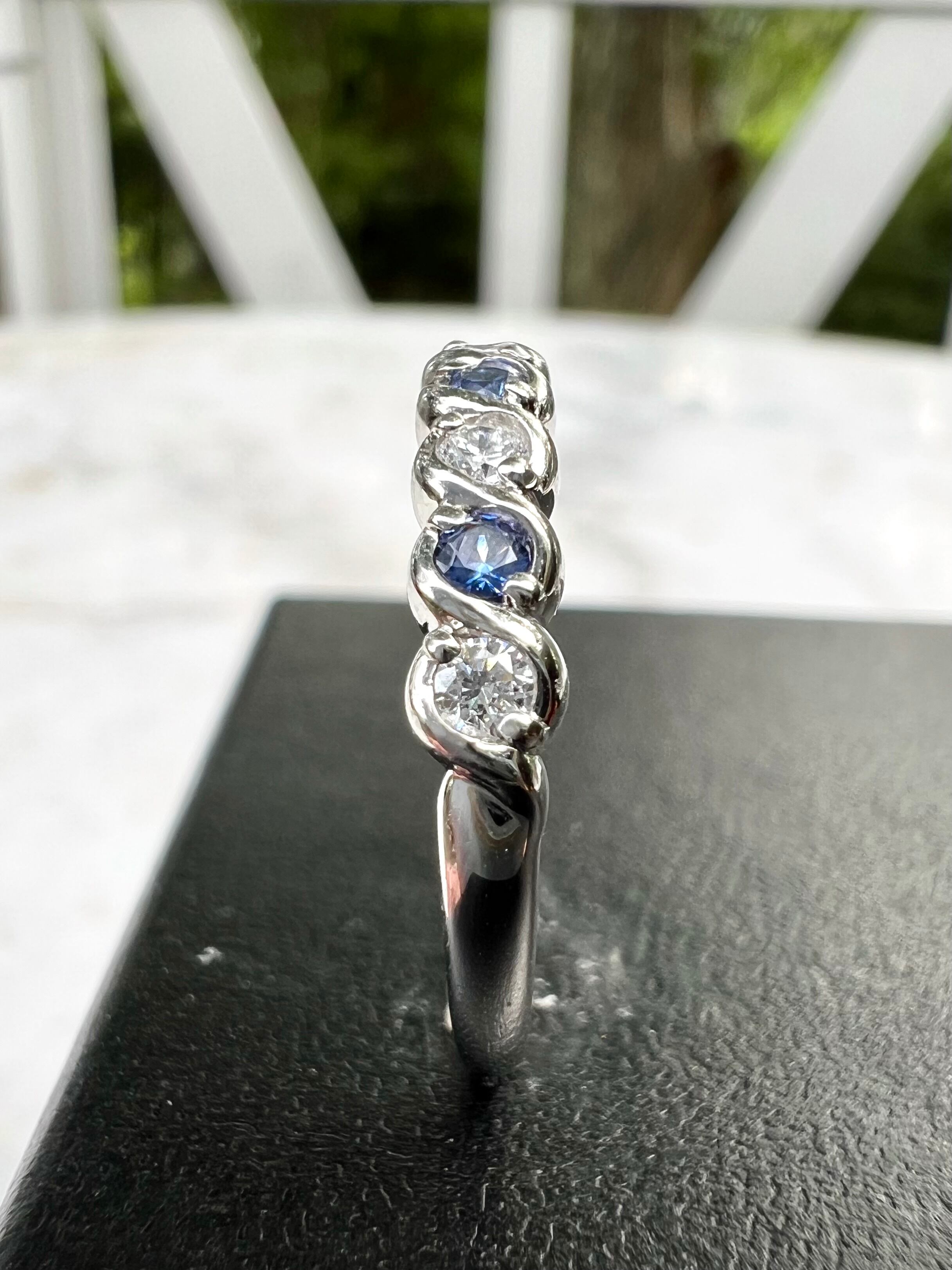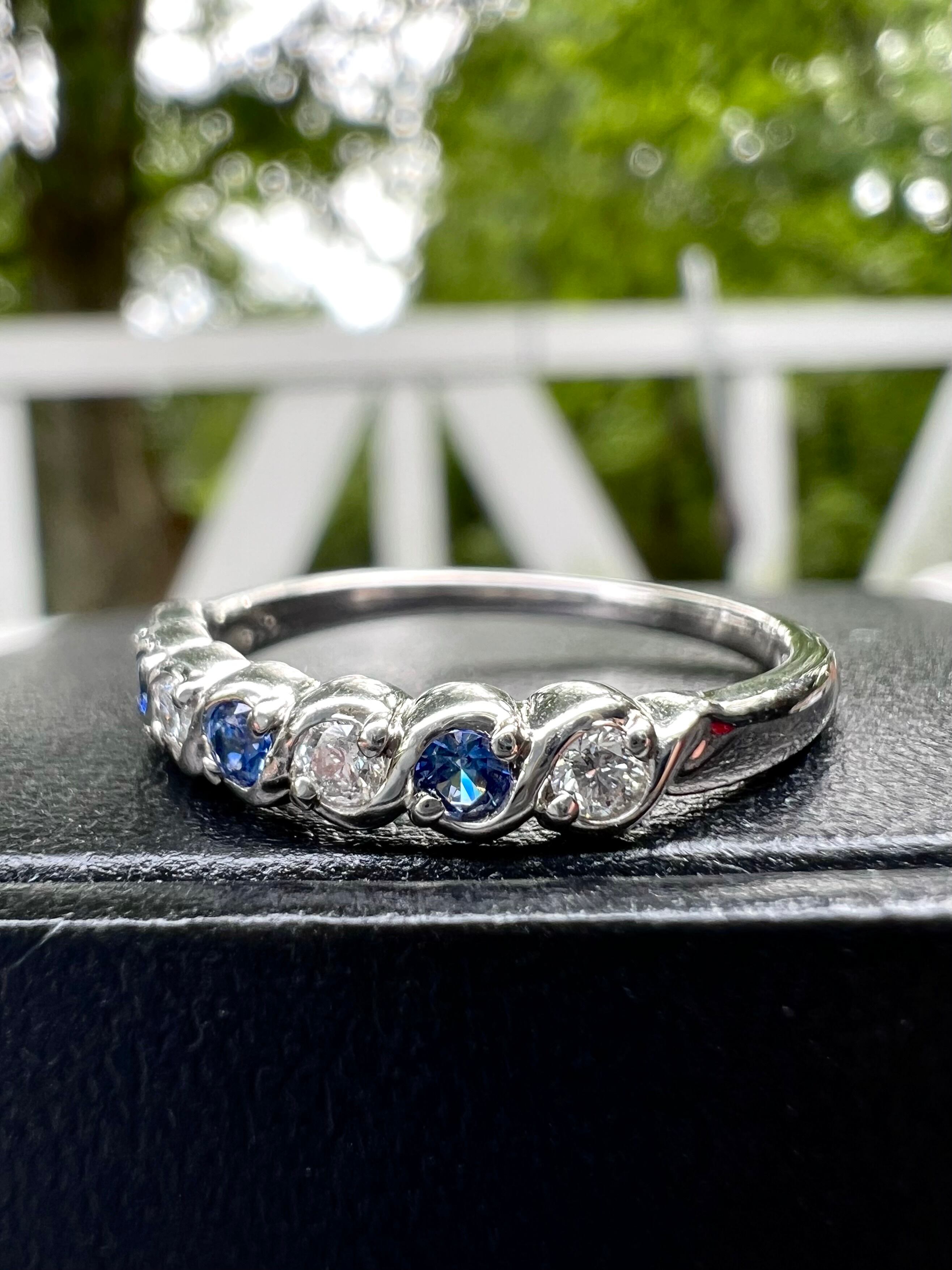 現在価格の高騰しているベニトアイトを贅沢にハーフエタニティリングに致しました。