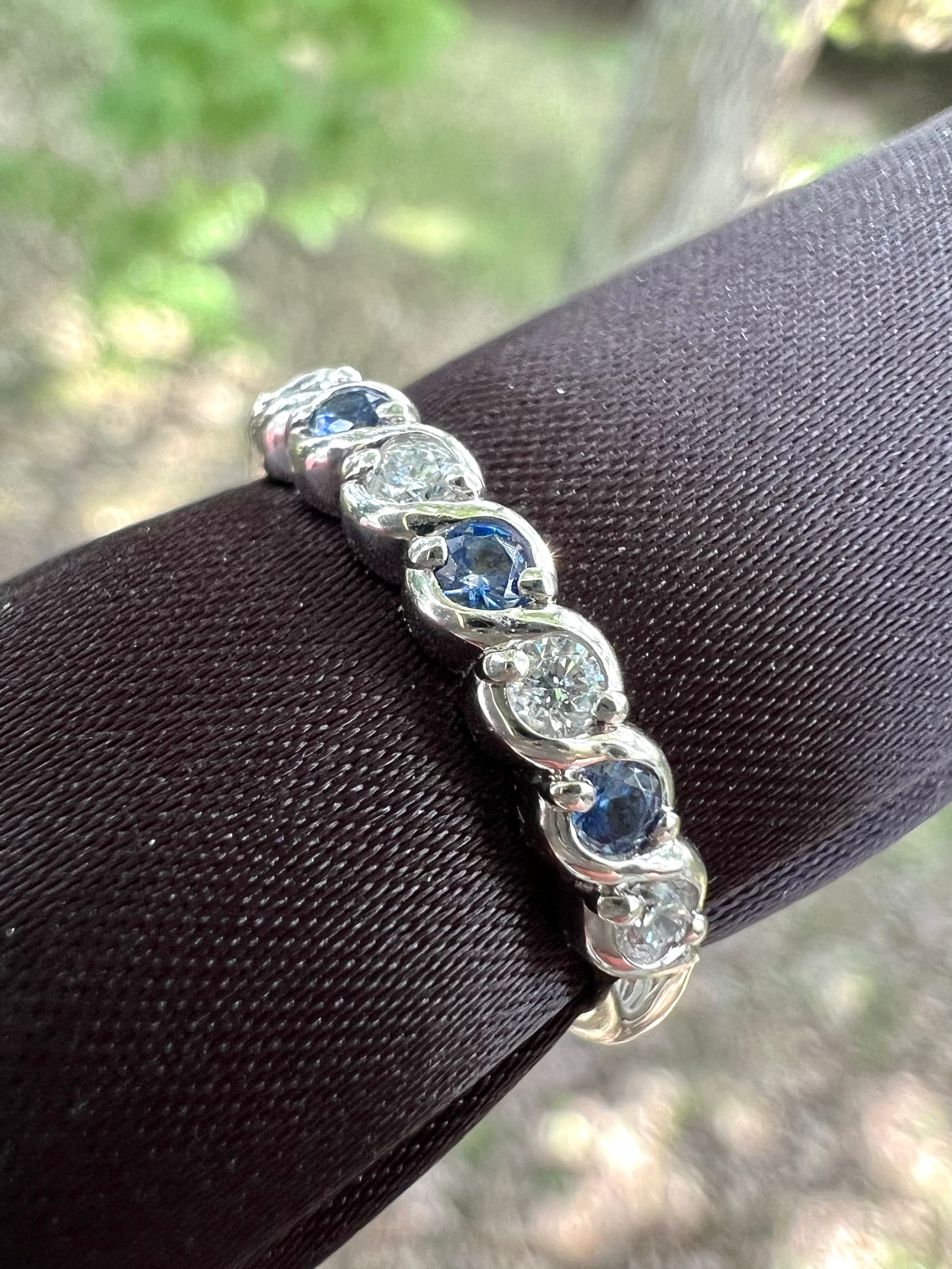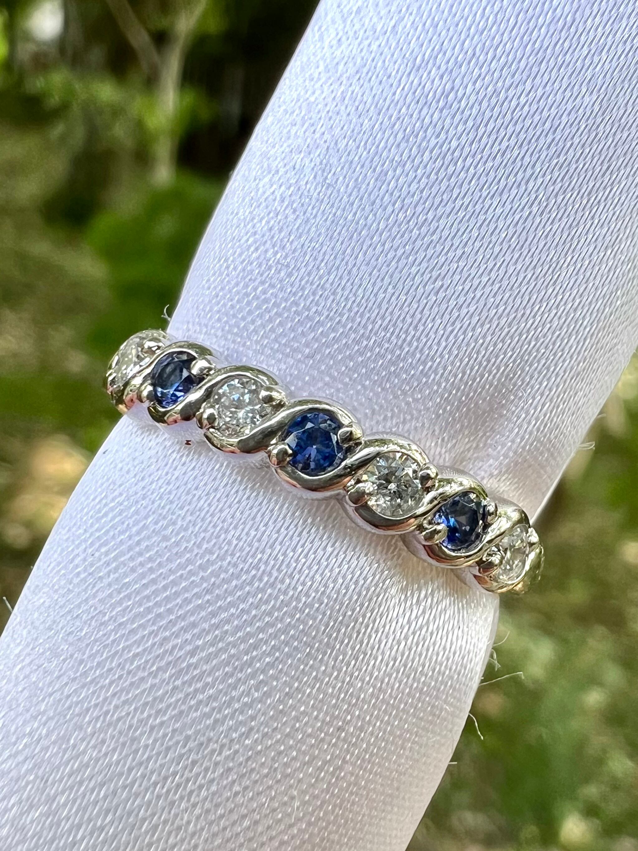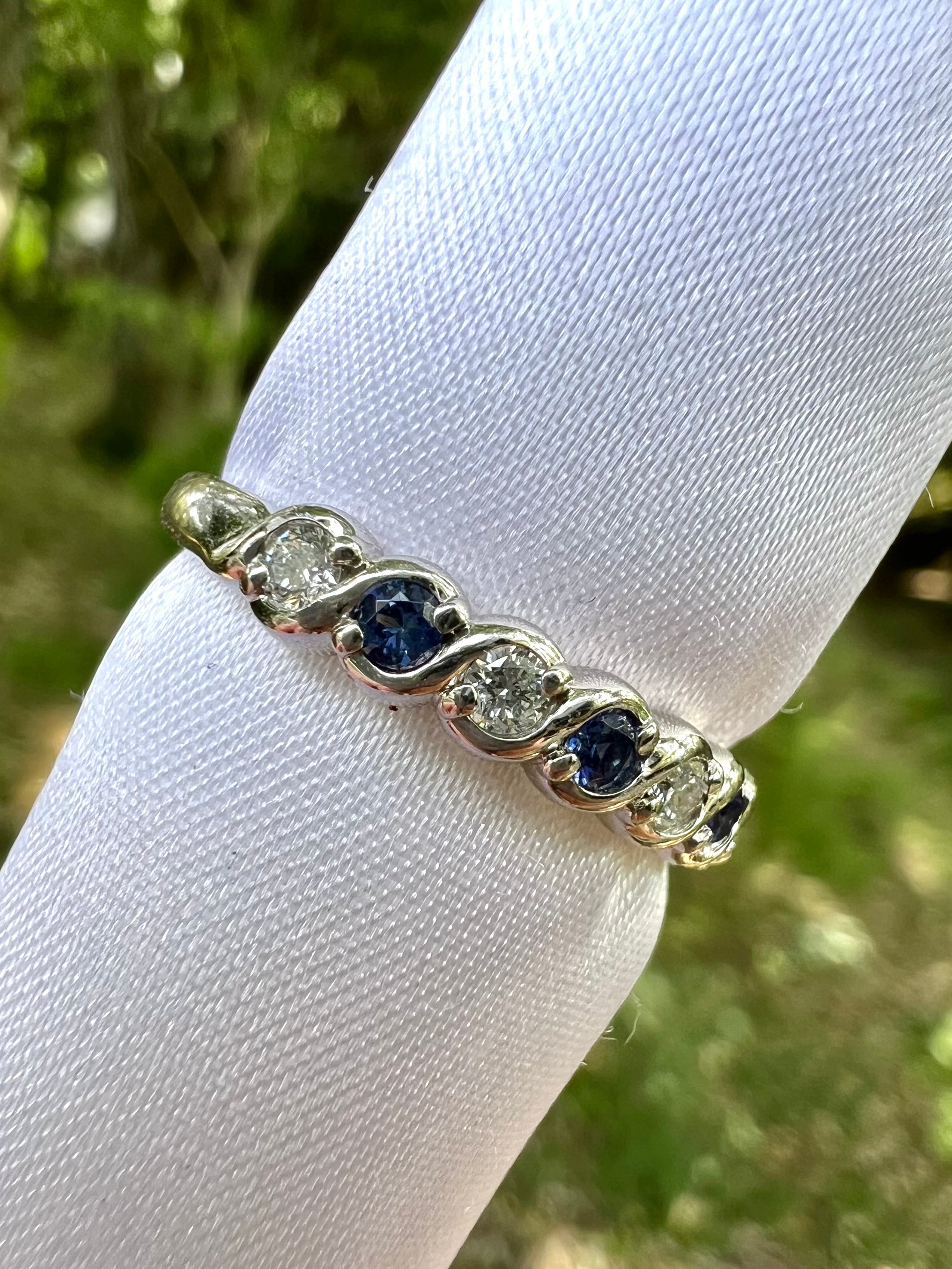 現在価格の高騰しているベニトアイトを贅沢にハーフエタニティリングに致しました。