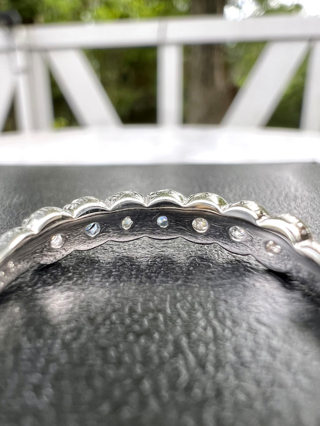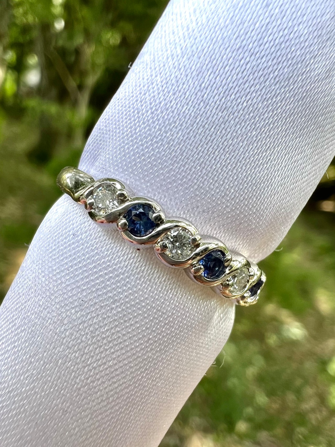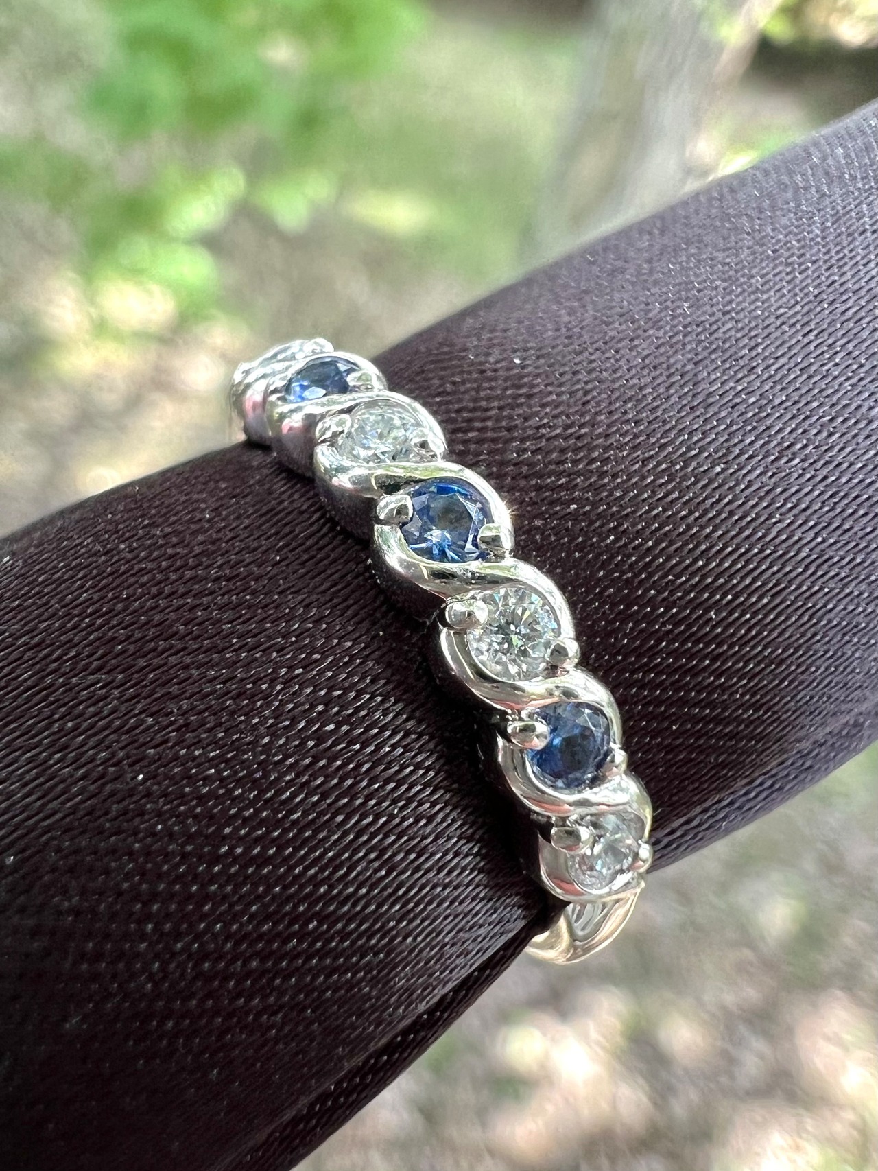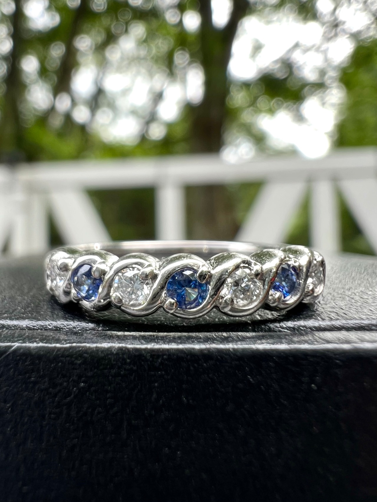 ダイヤを使わずベニトアイトのみで作ったハーフエタニティは圧巻です。