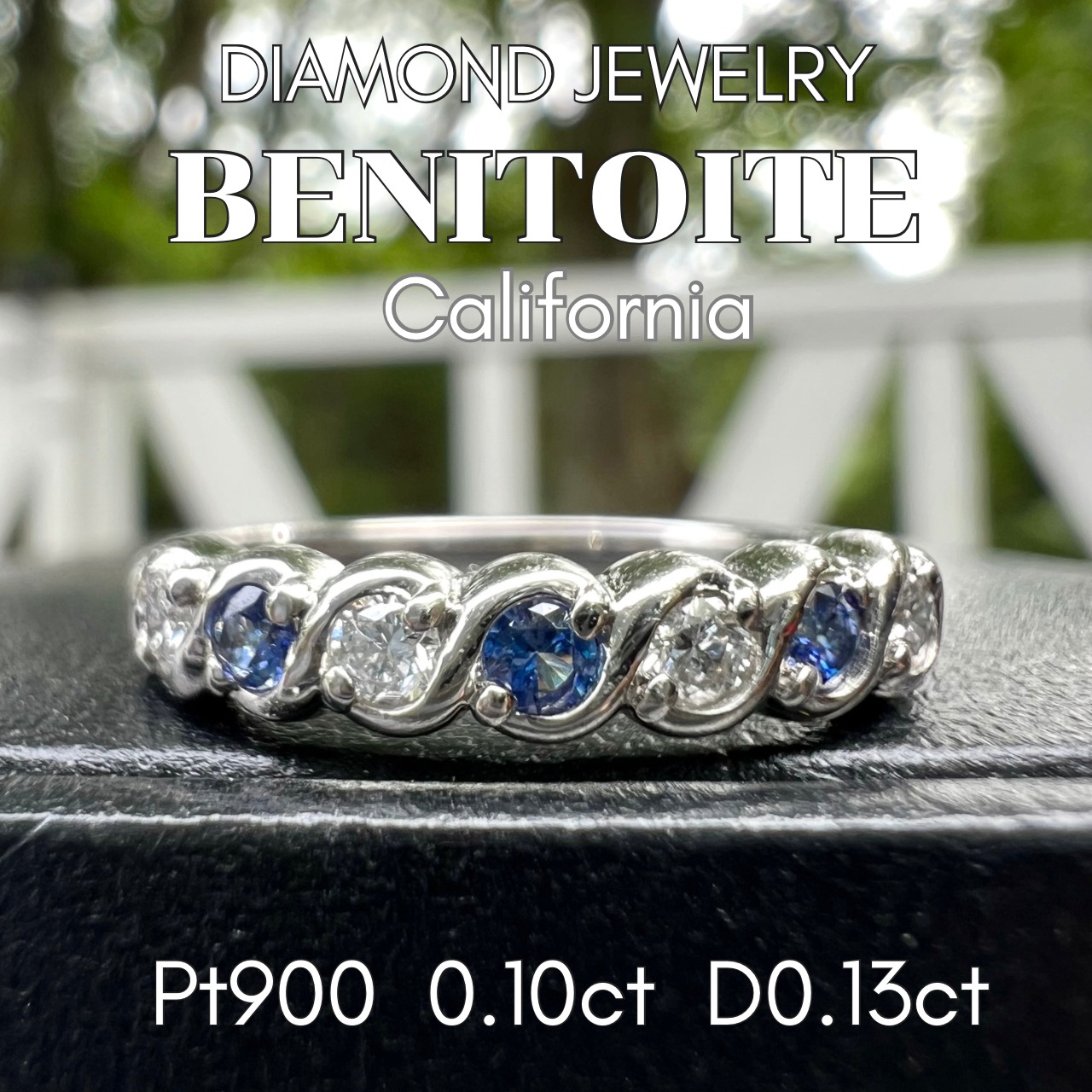 Pt900 カルフォルニア産ベニトアイトハーフエタニティリング0.10ct
