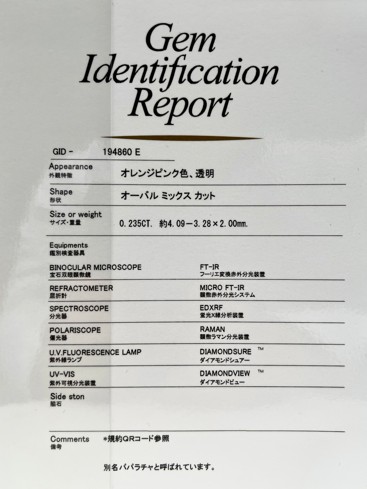 K18PG パパラチアサファイヤ ダイヤモンドリング DGL鑑別書付属