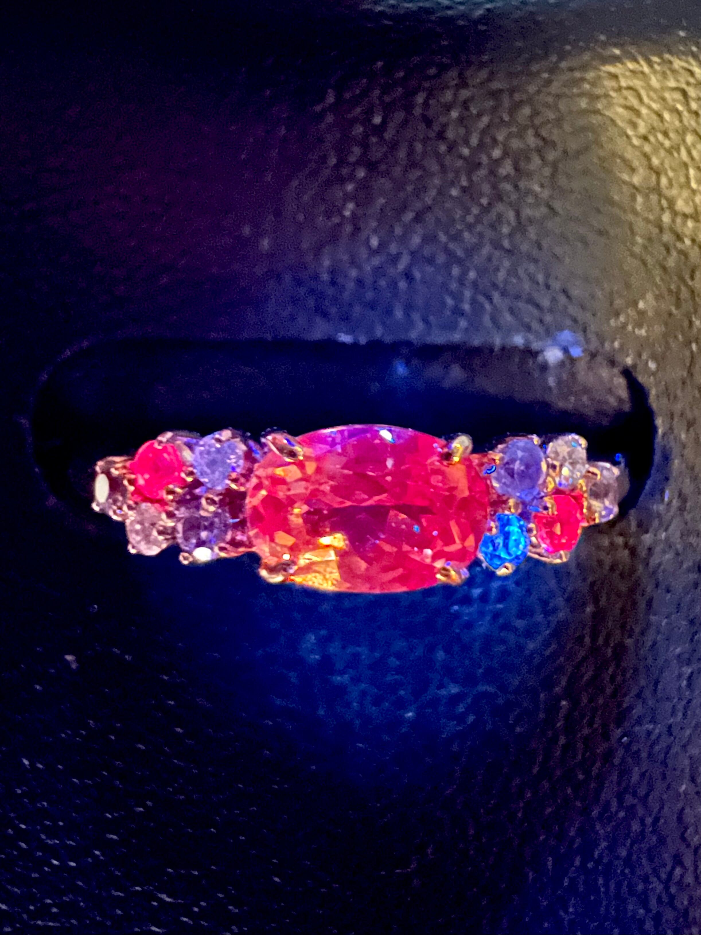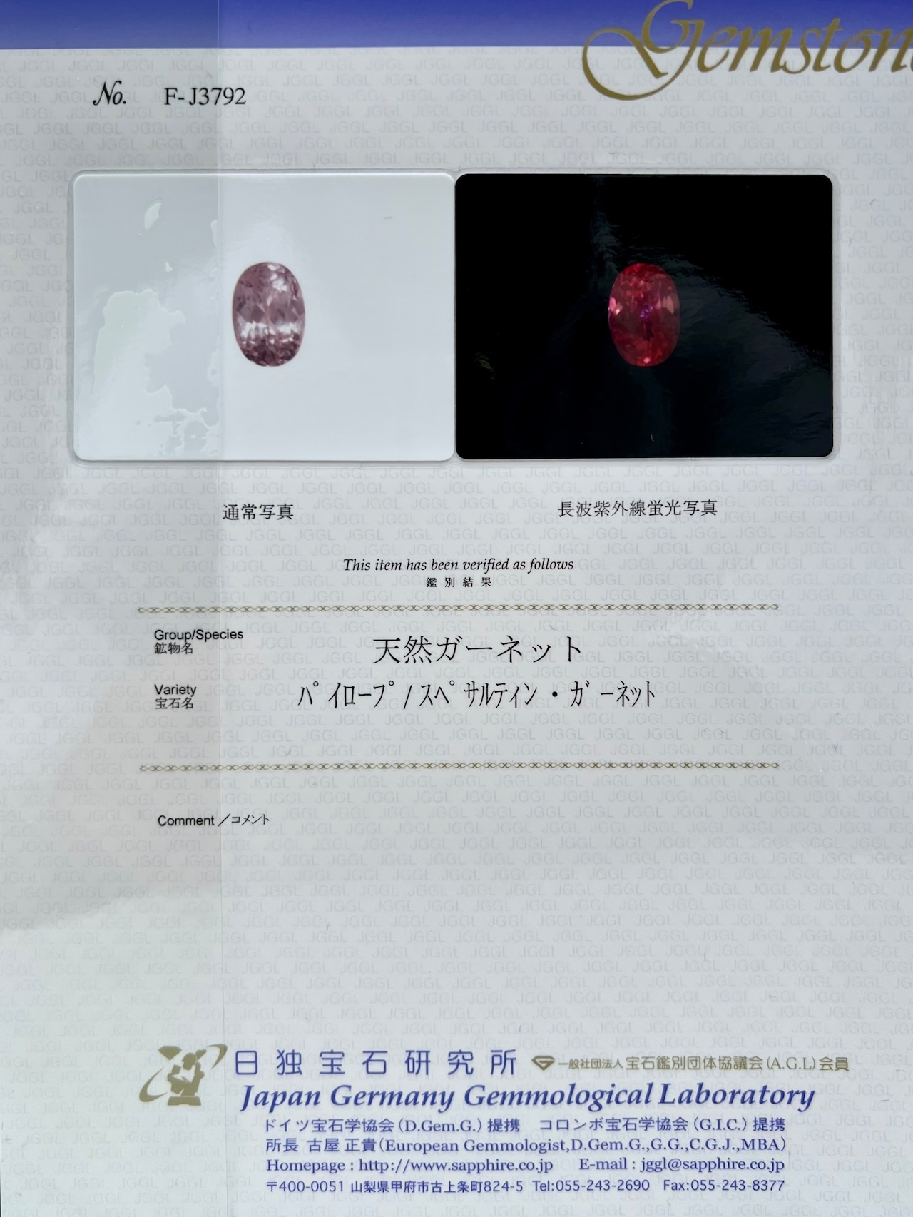 紫外線で蛍光する新しいガーネットでマラヤガーネットのような電球色でのカラーシフトに加え、蛍光も示すというとてもユニークなガーネットです。