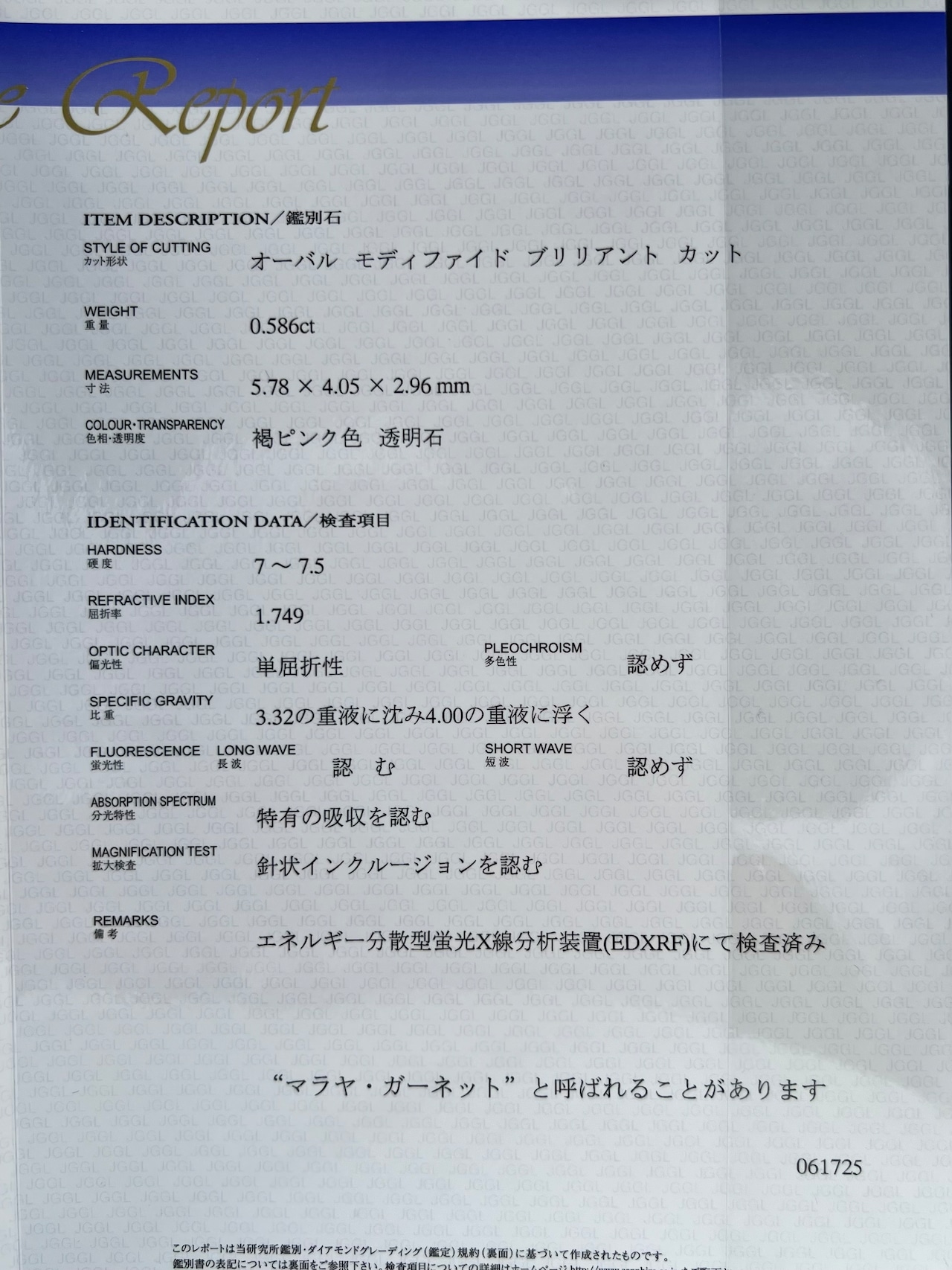 K18PG ドラゴンガーネット(マラヤガーネット)ダイヤモンドリング JGGL鑑別書付属