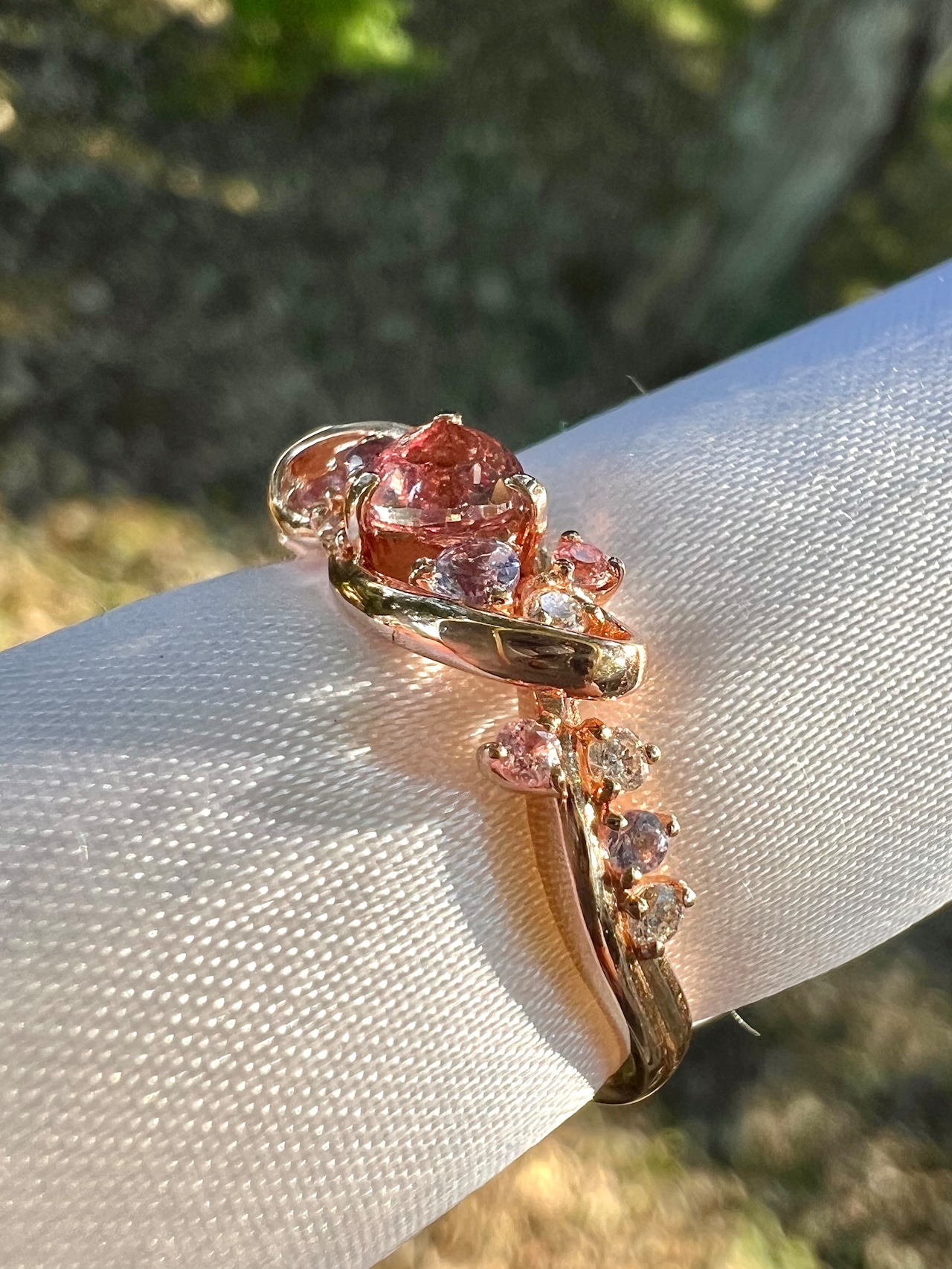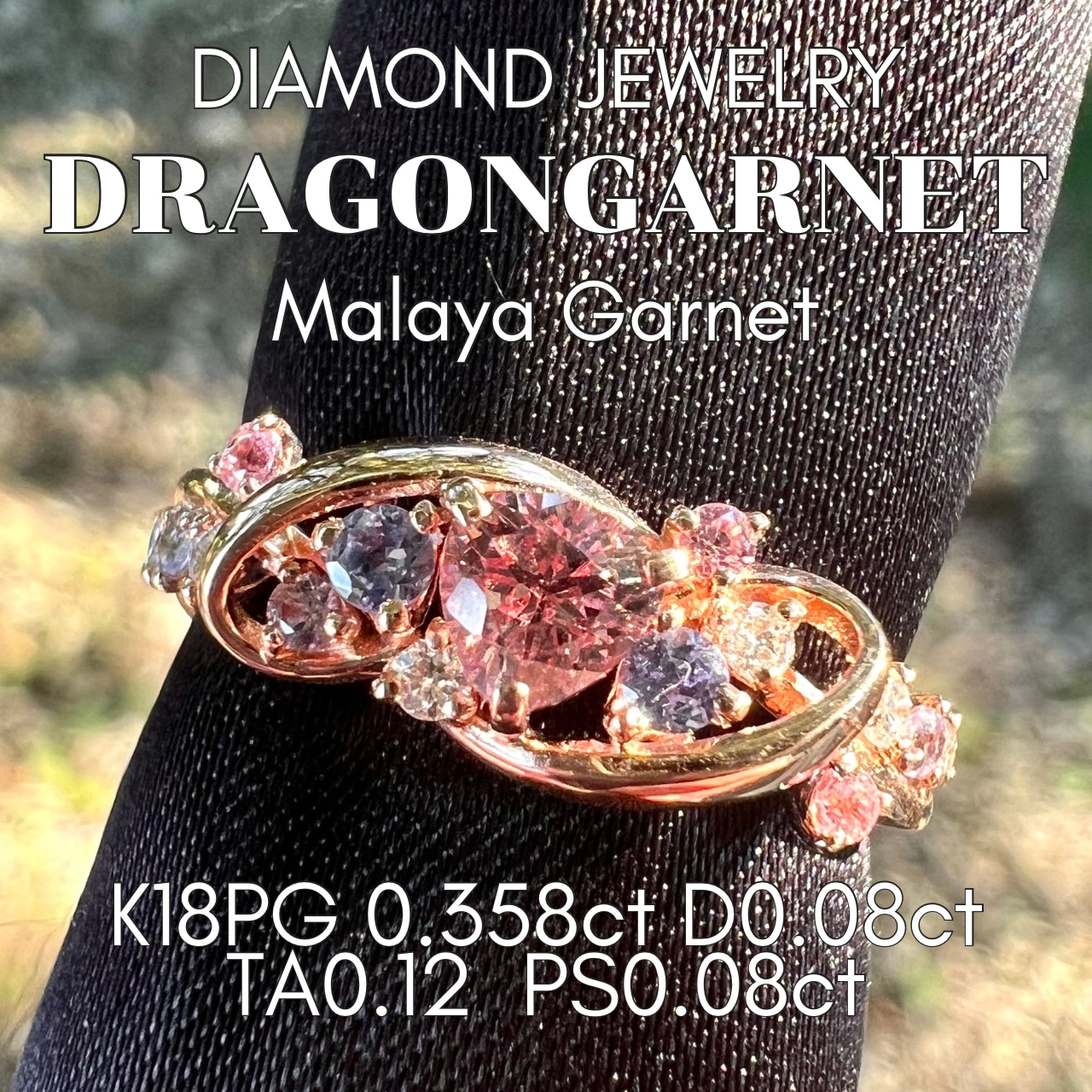 K18PG ドラゴンガーネット(マラヤガーネット)ダイヤモンドリング JGGL鑑別書付属
