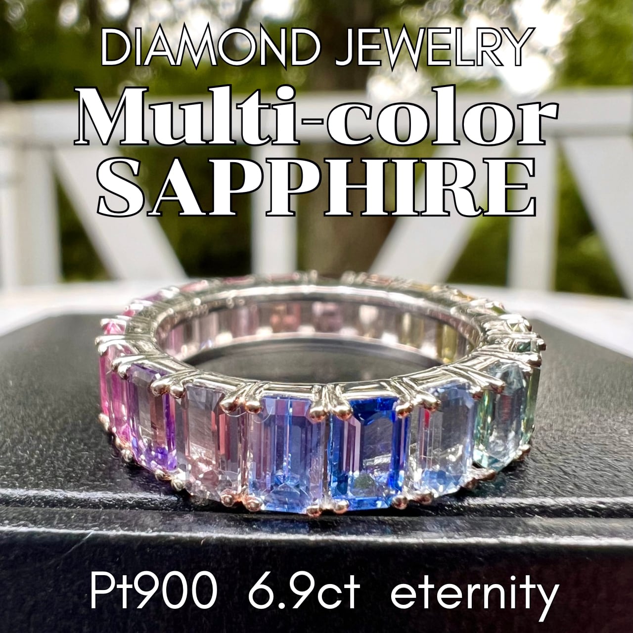 Pt900 超美麗!マルチカラーサファイヤ フルエタニティリング JGGL鑑別書付属