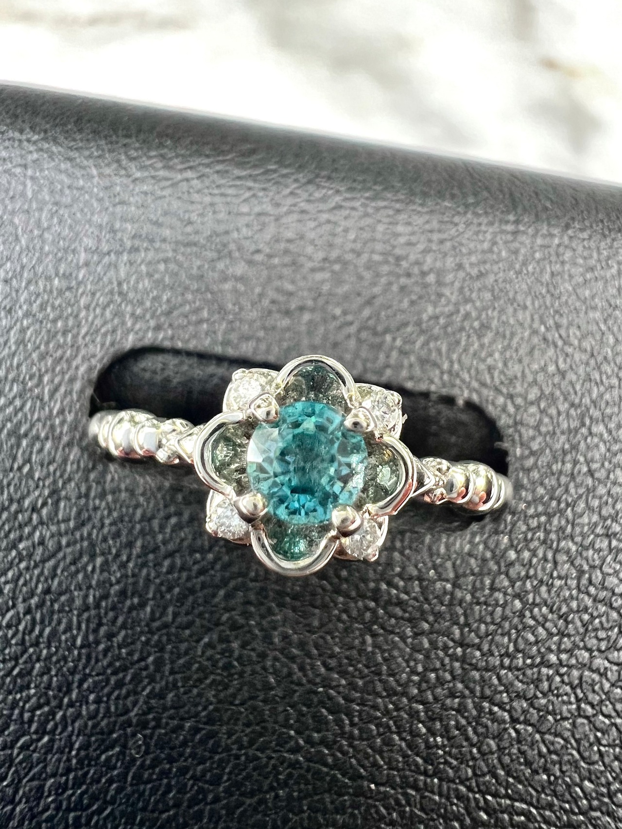 美しいブルーのジルコンリングです。