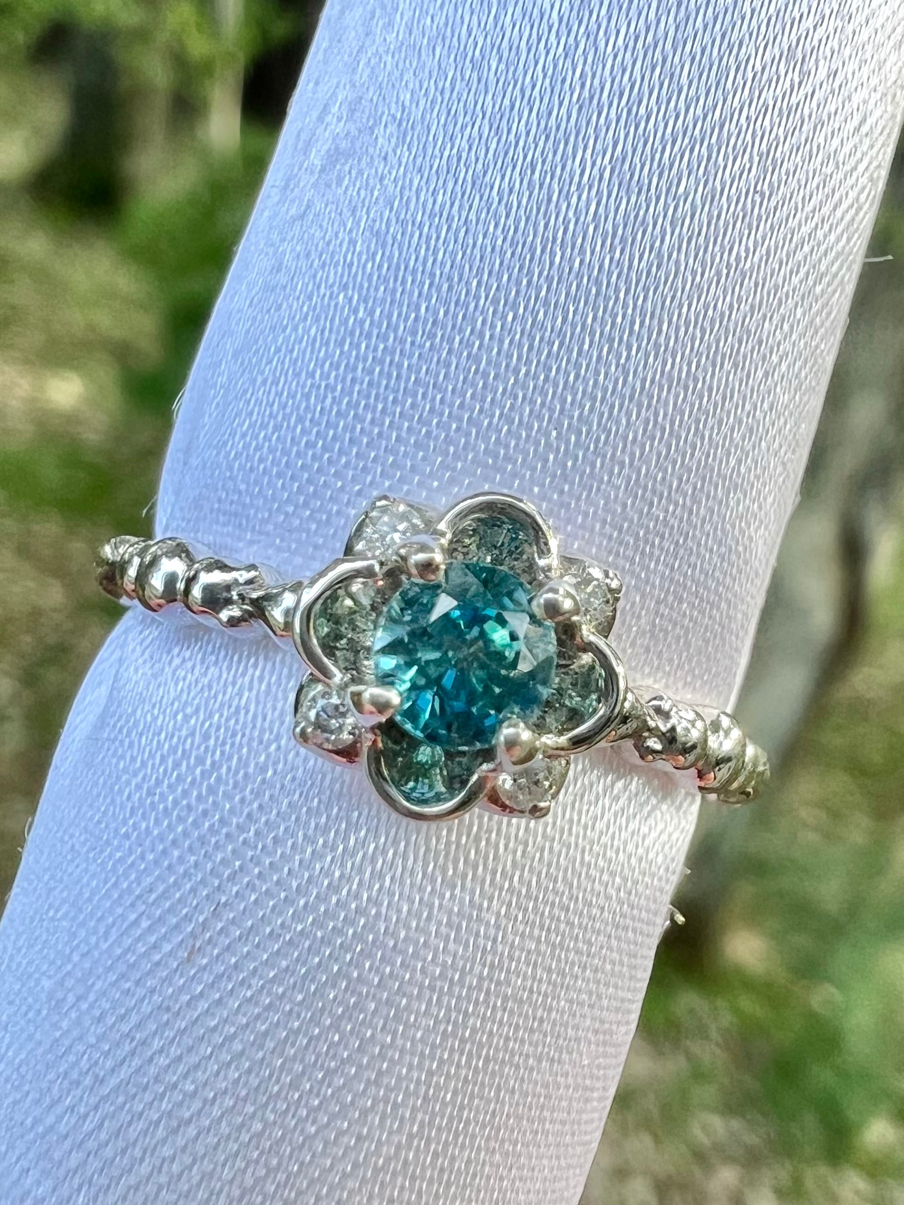 そこにブルーが反射しまるで青い石を脇石にセットしてあるかのようにブルーに反射!