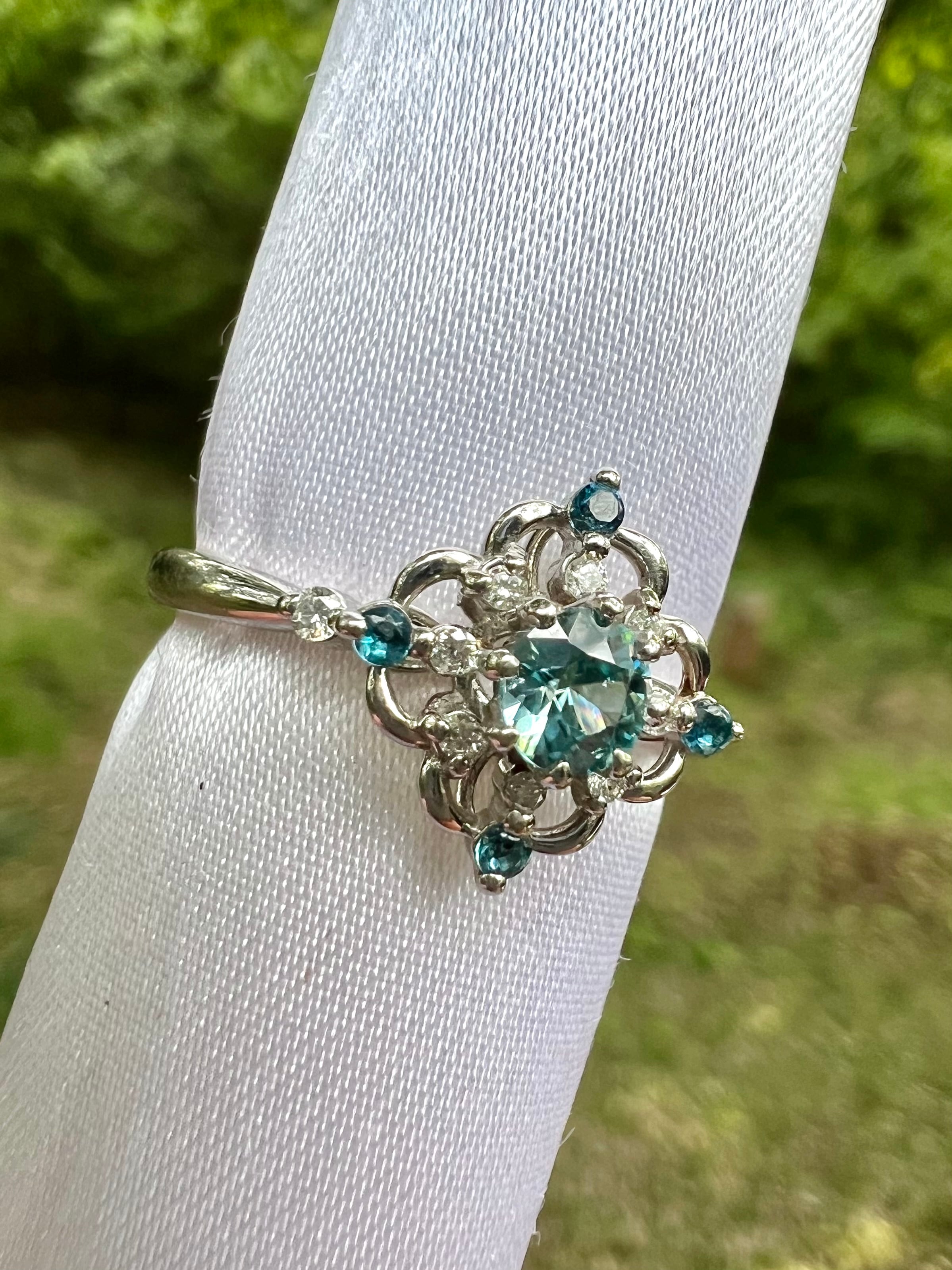Pt900 超輝!天然ブルージルコンブルートパーズダイヤモンドリング カンボジア産